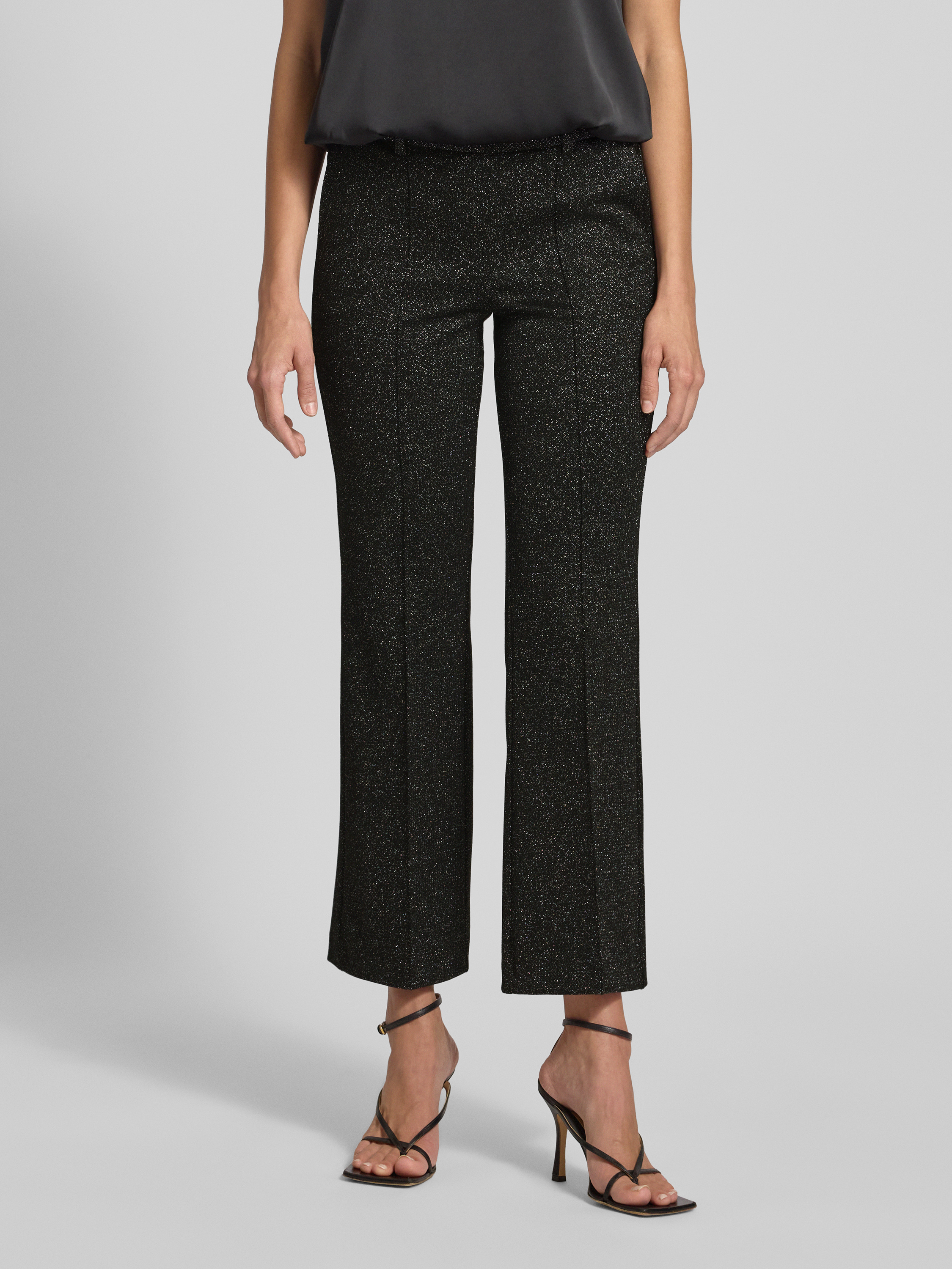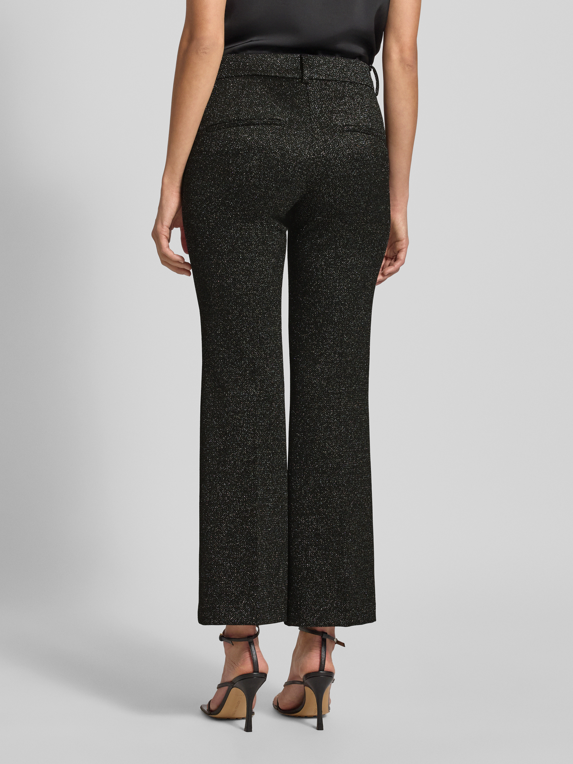 Die Damen Stoffhose von Cambio, Modell FRANCOISE, überzeugt durch ihren geraden Schnitt und die angenehm verkürzte Passform. Dank des Material-Mix mit Viskose-Anteil fühlt sie sich weich an und liegt angenehm auf der Haut. Dezenter Glitter-Effekt sowie praktische französische Eingrifftaschen runden das Design ab.
