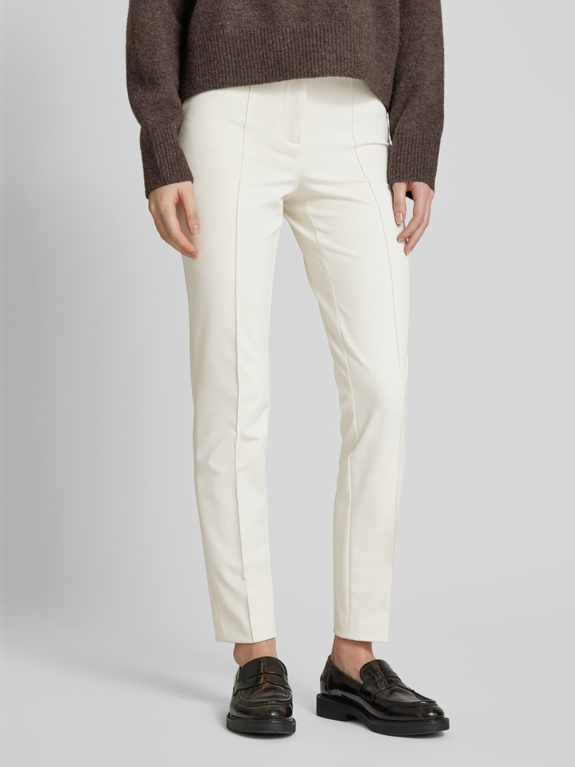 Die Stoffhose 'ROS' von Cambio kombiniert einen elastischen Material-Mix mit einer körpernahen Passform, die sich ideal für einen modernen Look eignet. Ziernähte und ein zulaufendes Bein verleihen dieser 7/8-langen Hose Raffinesse, während Eingriff- und Gesäßtaschen praktische Akzente setzen.