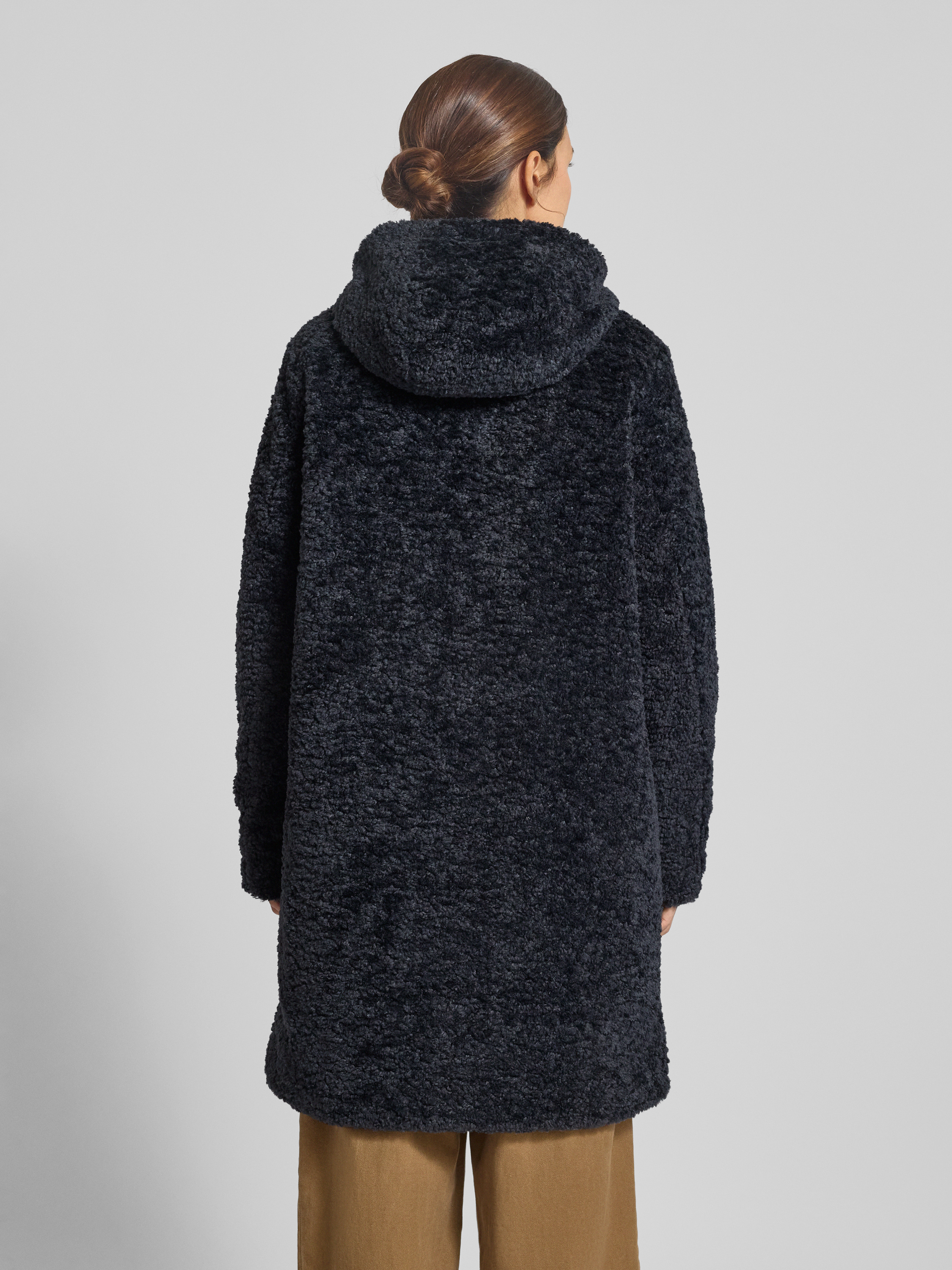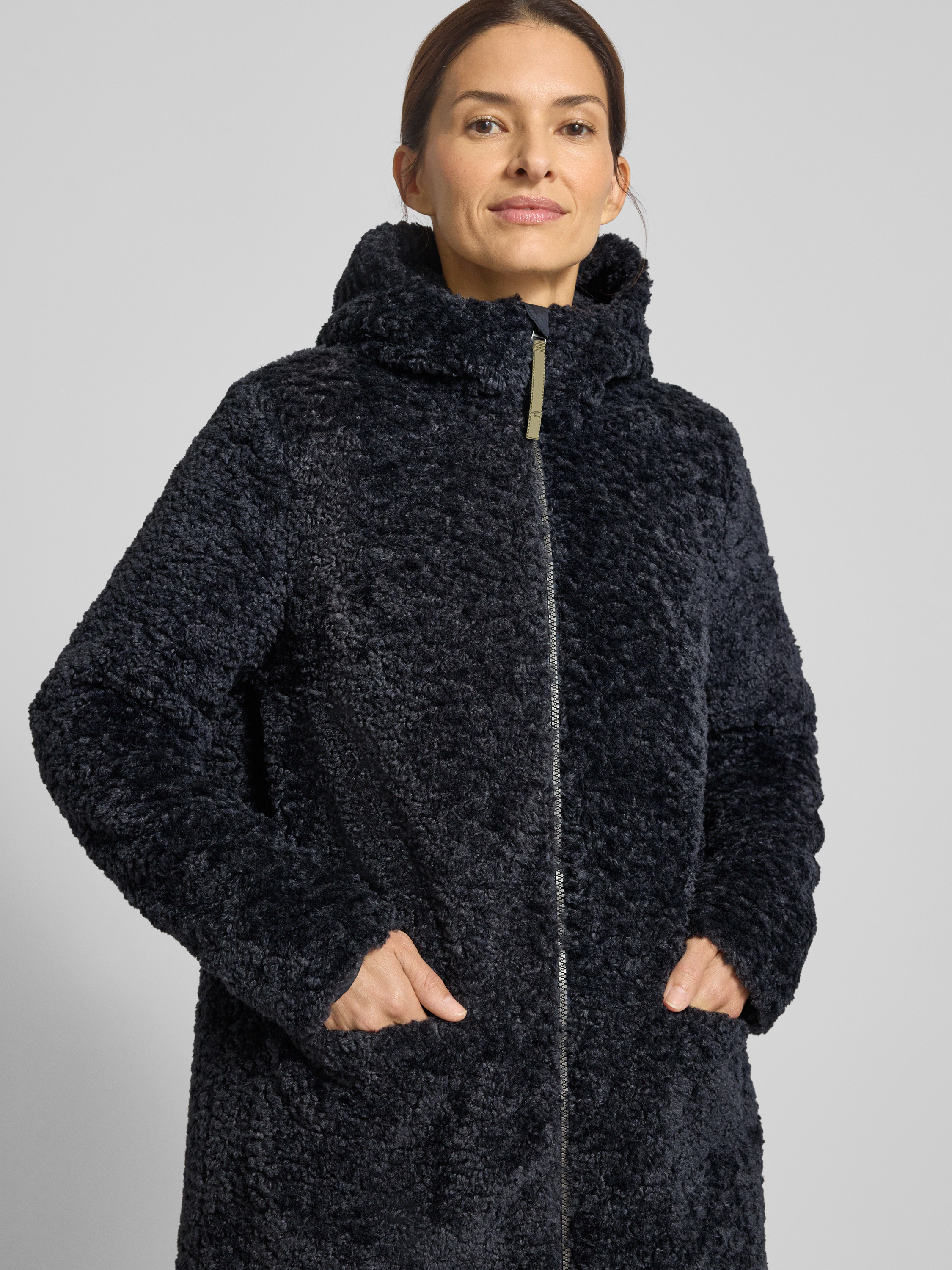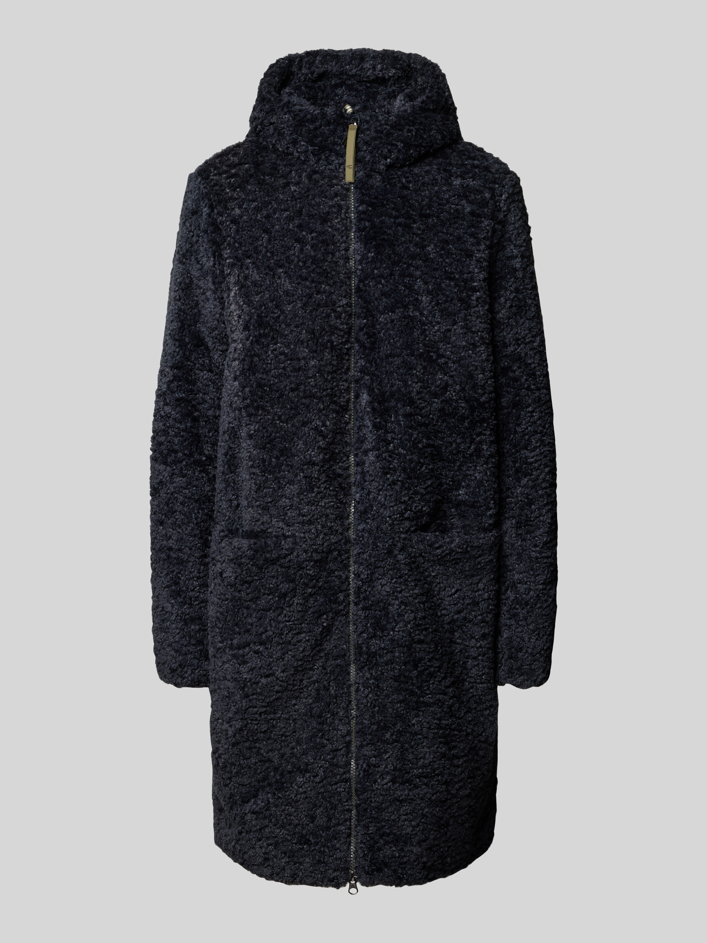 camel activeMantel aus Teddyfell mit Kapuze und Zweiwege-Reißverschluss in dunkelblau