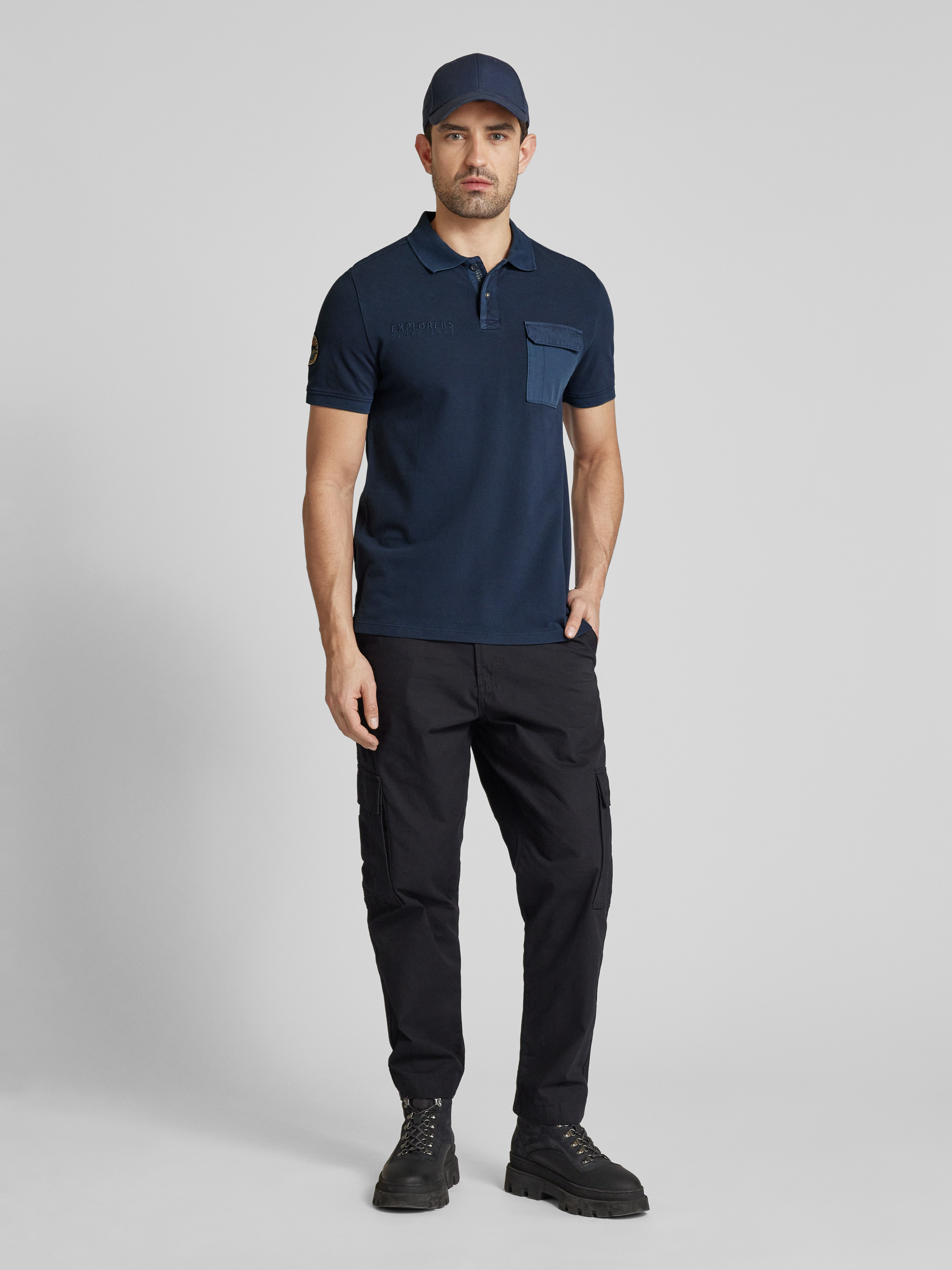 camel activePoloshirt mit Label-Stitching in marine