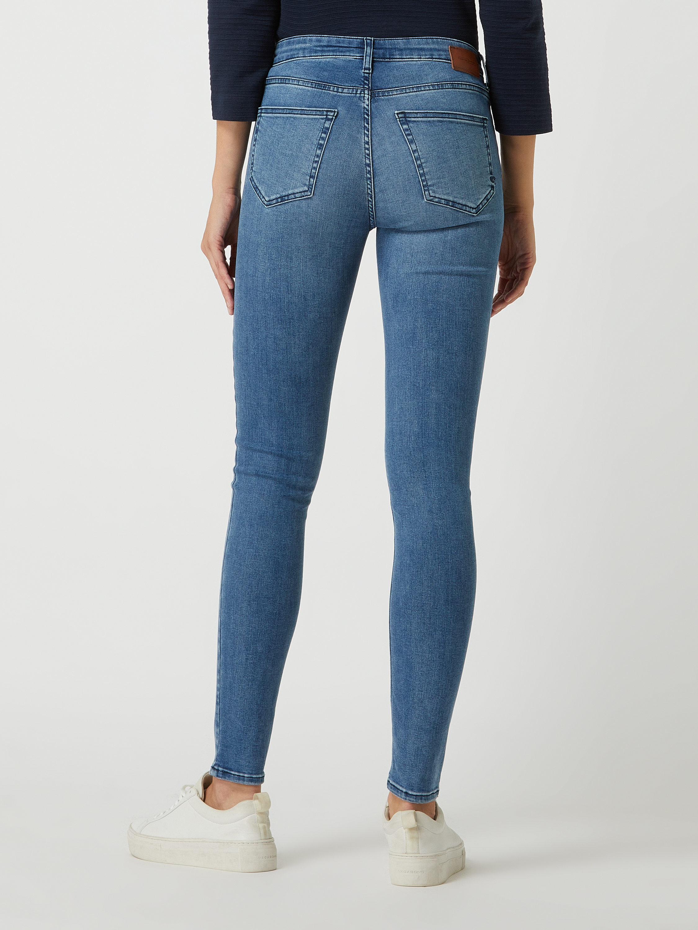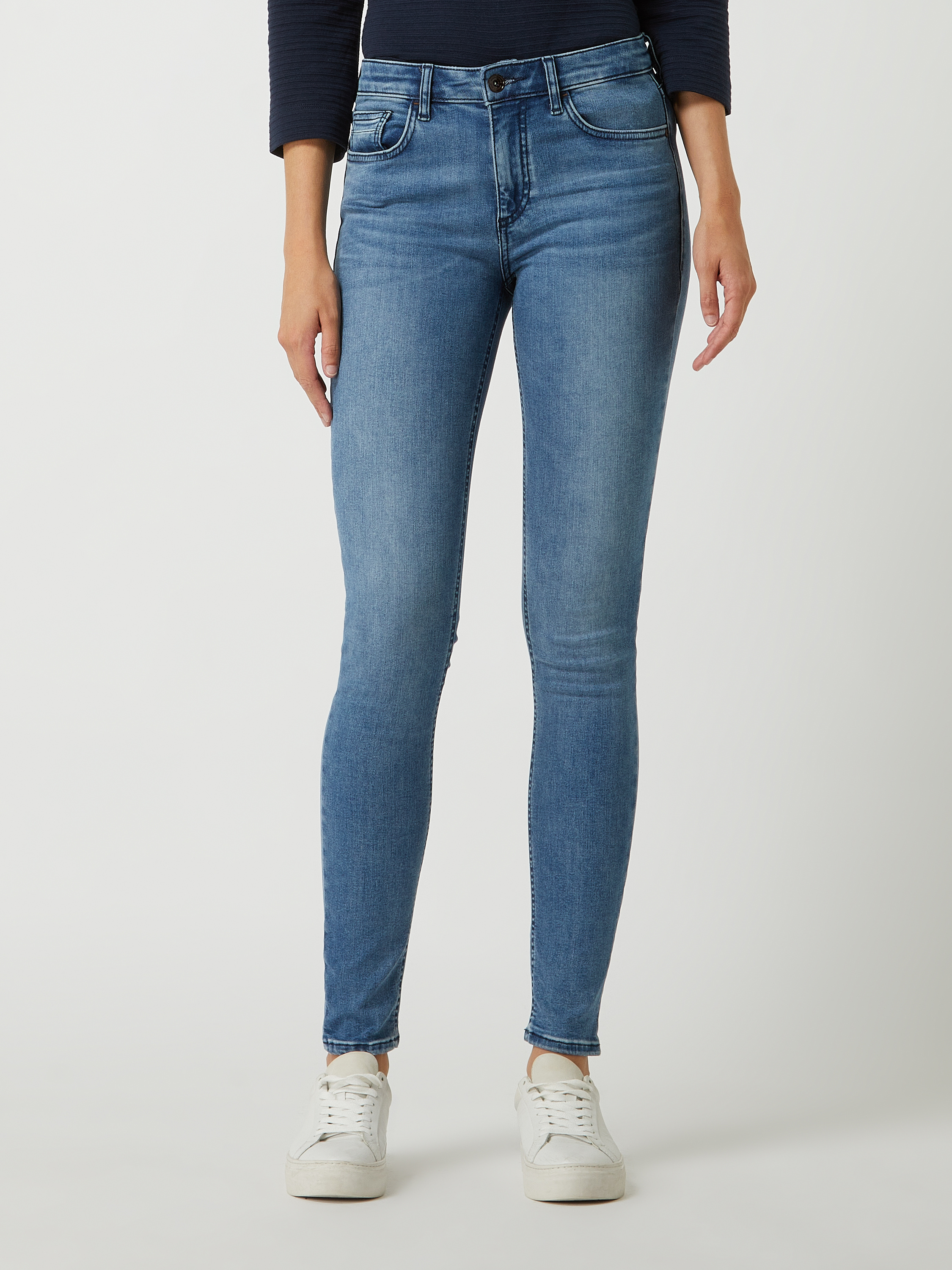 Die Skinny Fit Jeans von camel active kombiniert eine Baumwollmischung mit Stretch-Anteil für angenehme Bewegungsfreiheit und sorgt für eine bequeme Passform im Alltag. Der Mid Waist Schnitt und das klassische 5-Pocket-Design machen sie vielseitig und alltagstauglich. Ein dezenter Label-Patch rundet das Gesamtbild ab.
