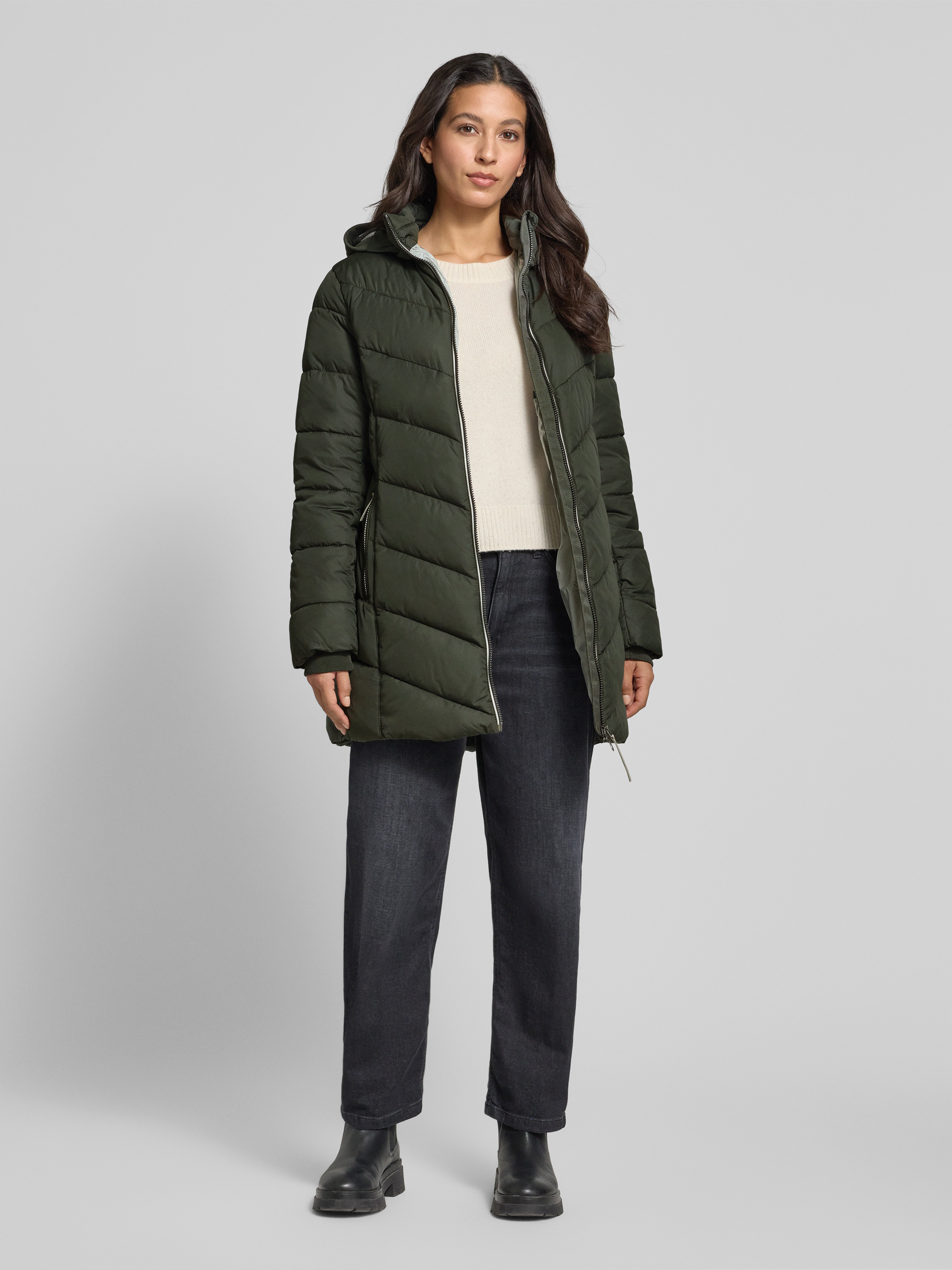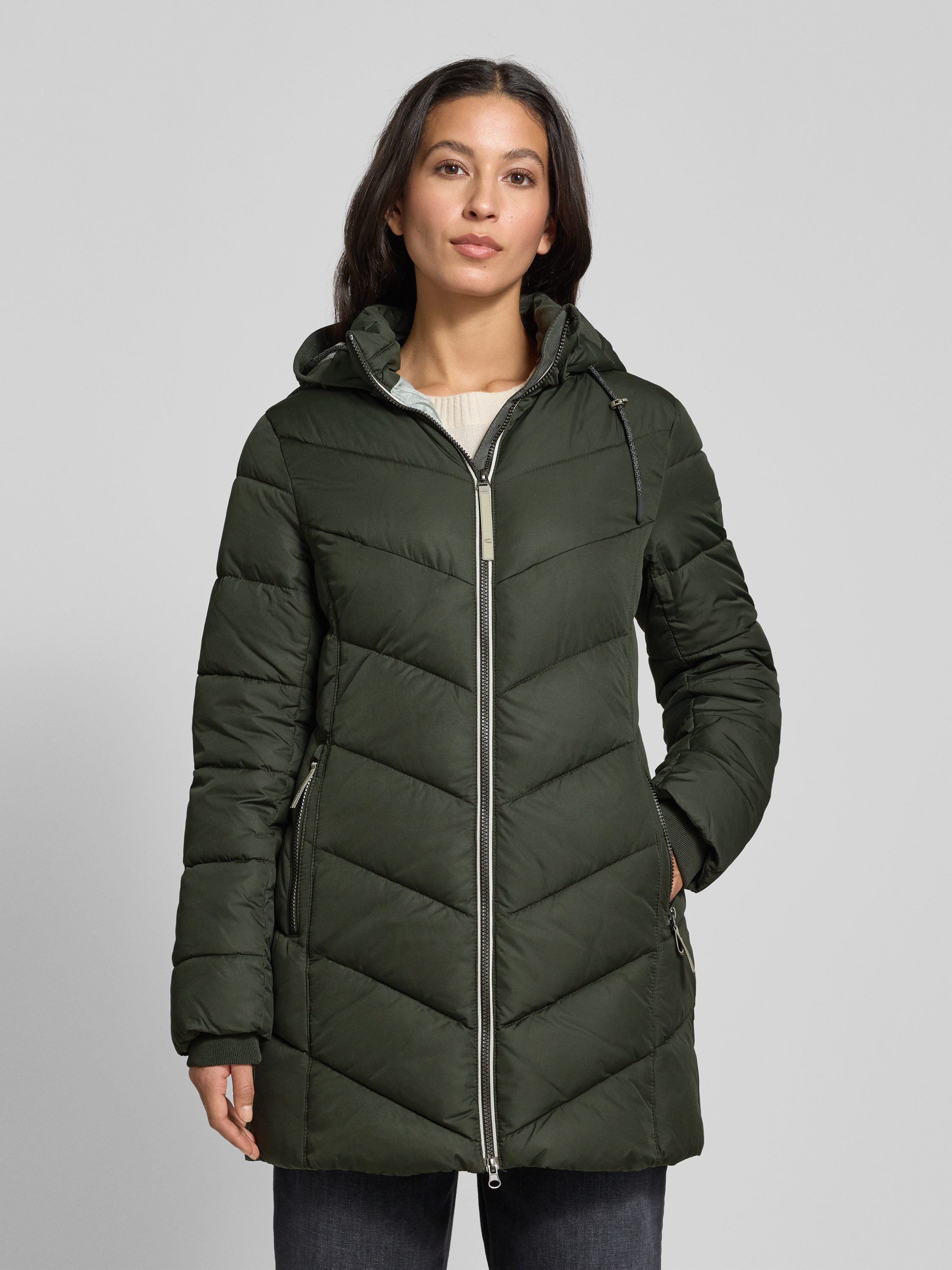 Die Damen Steppjacke von camel active zeigt sich mit geradem Schnitt, Stehkragen und Kapuze als zuverlässiger Begleiter bei wechselhaftem Wetter. Durch den Tunnelzug lässt sich die Passform unkompliziert anpassen, während Reißverschlusstaschen praktische Aufbewahrung im Alltag ermöglichen. Dank des Zweiwege-Reißverschlusses bleibt Bewegungsfreiheit stets erhalten.