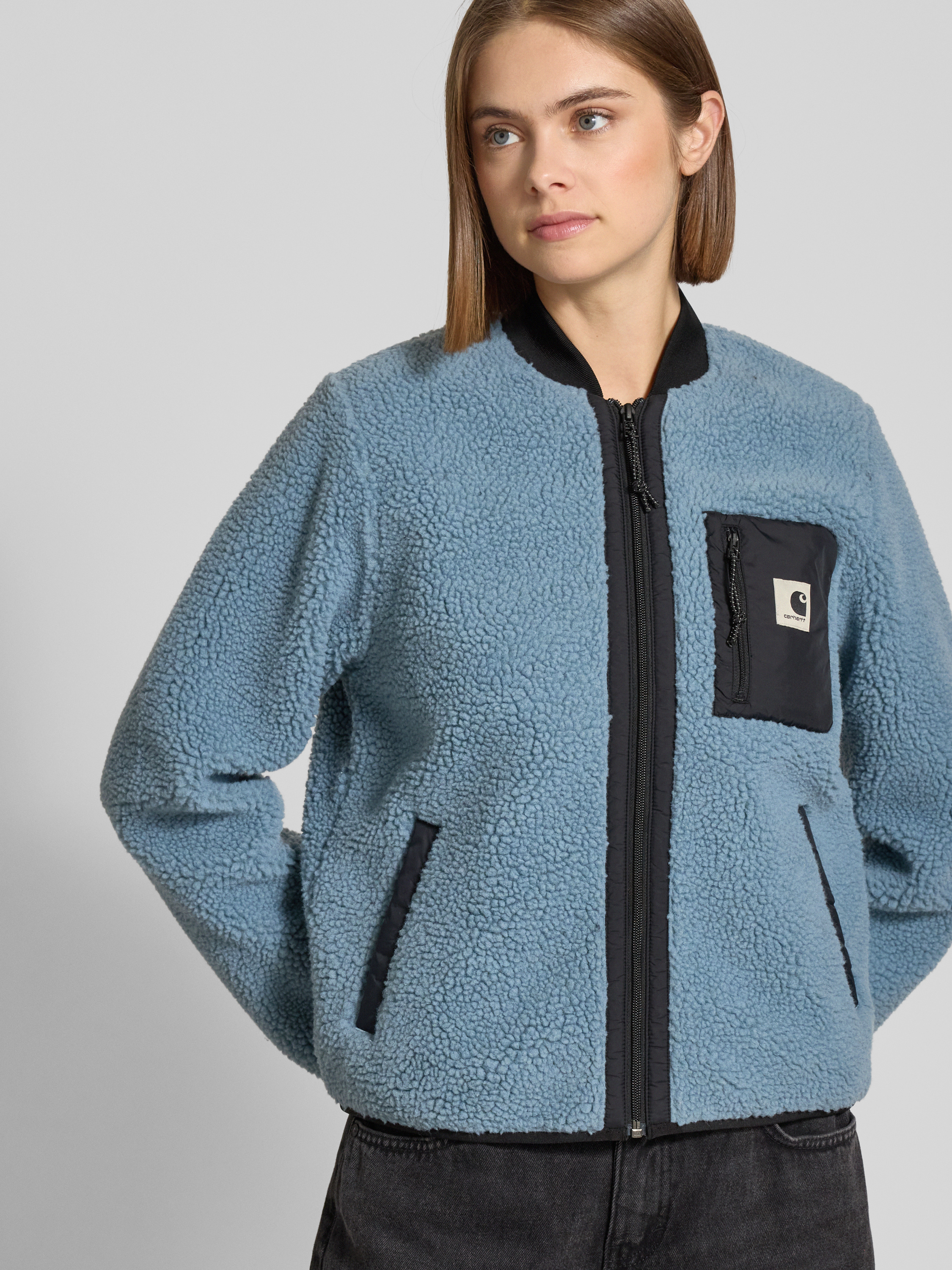 Die Damen Fleecejacke von Carhartt Work In Progress Modell 'Janet' fällt durch ihren Allover-Look und das dezente Label-Detail auf. Mit ihrem Regular Fit und dem Stehkragen eignet sie sich besonders, wenn man Wert auf Bewegungsfreiheit und angenehmen Tragekomfort legt. Die Brusttasche setzt einen praktischen Akzent und sorgt für zusätzlichen Stauraum.