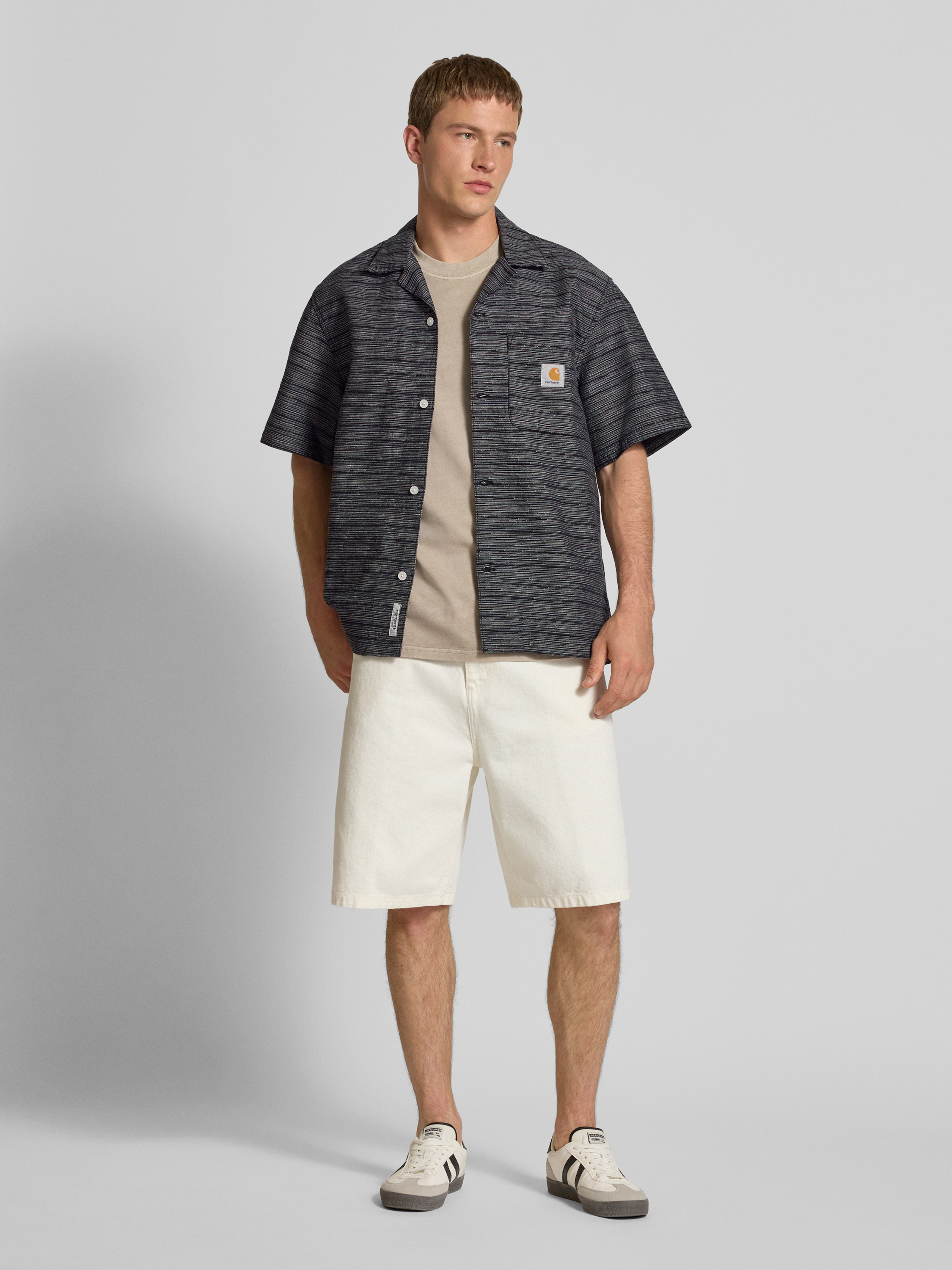 Das Herren Freizeithemd von Carhartt Work In Progress, Modell 'Gellar', präsentiert sich mit einem lockeren Schnitt und Reverskragen, wodurch ein entspanntes Tragegefühl entsteht. Reine Baumwolle sorgt dabei für angenehmen Komfort. Durch die kurze Ärmellänge eignet sich das Hemd an wärmeren Tagen besonders gut.