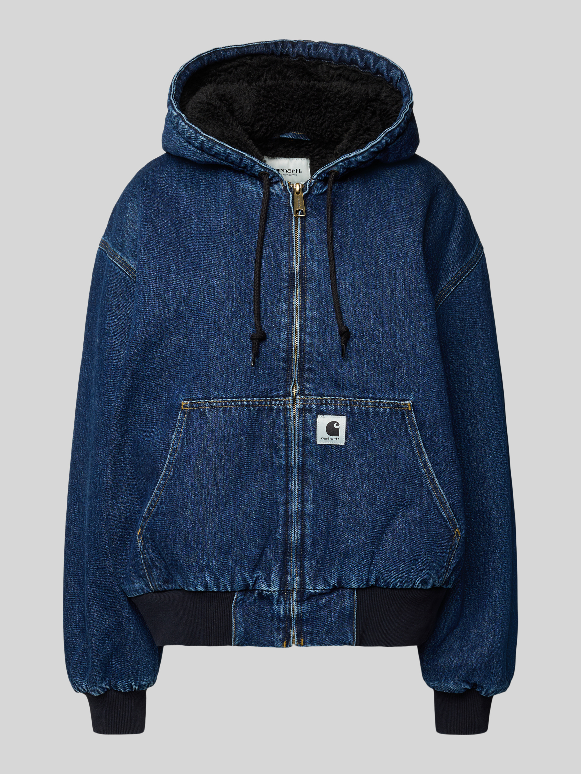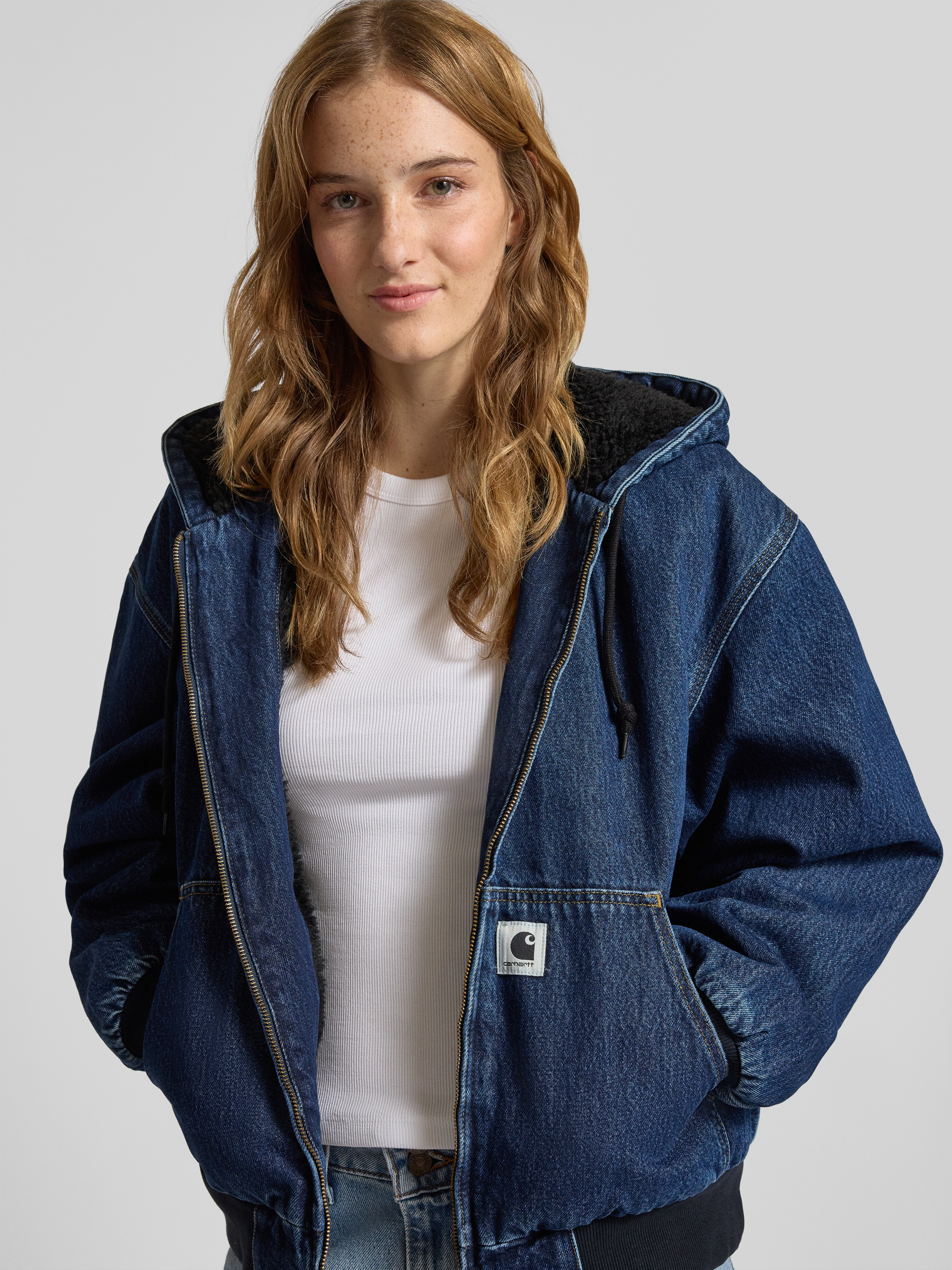 Die Damen Jeansjacke von Carhartt Work In Progress aus reiner Baumwolle kombiniert eine lockere Passform mit sportlichem Charakter. Durch die großzügige Känguru-Tasche und die Kapuze mit Tunnelzug entsteht ein lässiger Look, der sich unkompliziert in den Alltag einfügt. Dezentes Label-Stitching rundet das Gesamtbild stimmig ab.