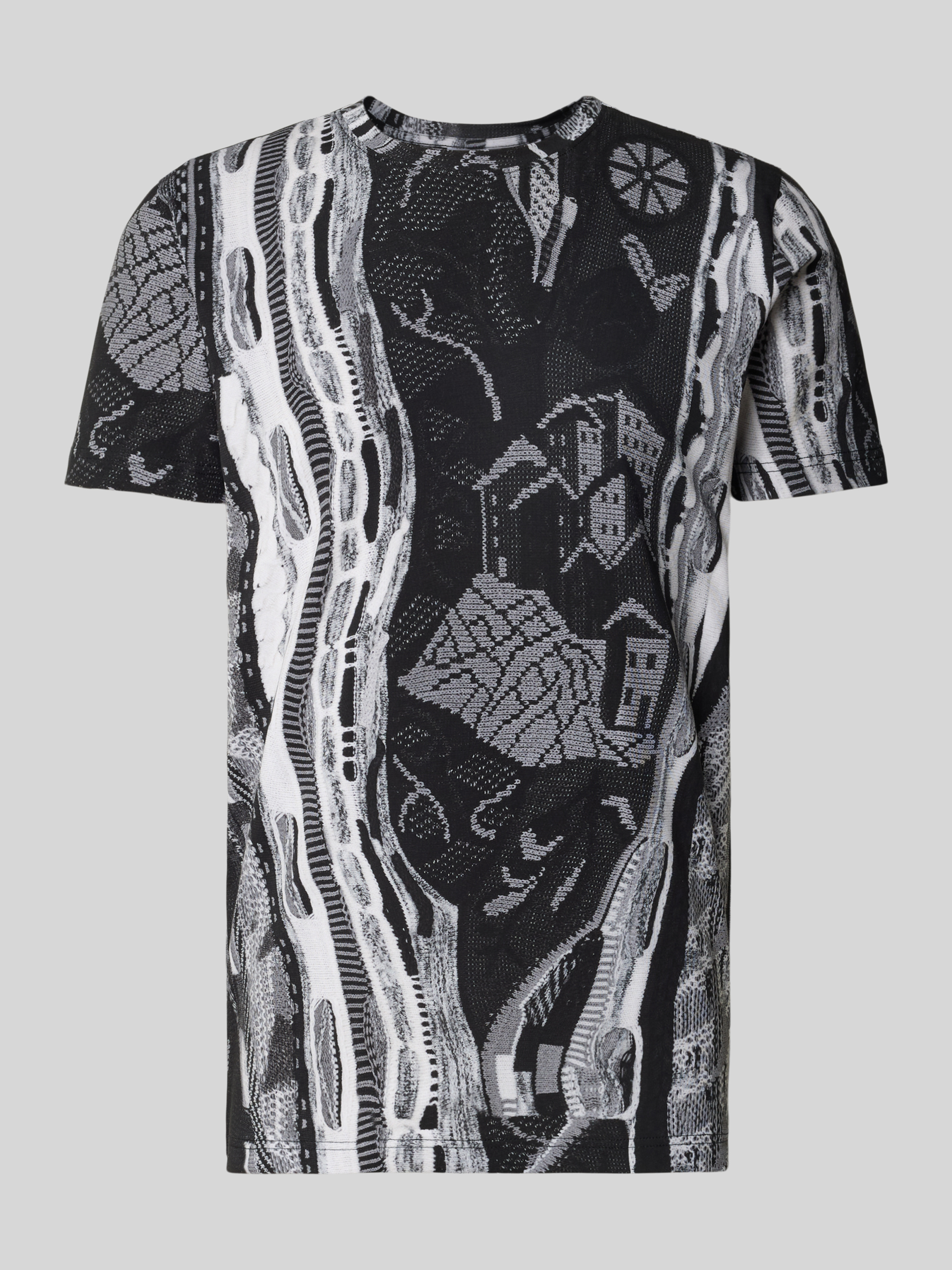 CARLO COLUCCIT-Shirt mit geripptem Rundhalsausschnitt in anthrazit melange