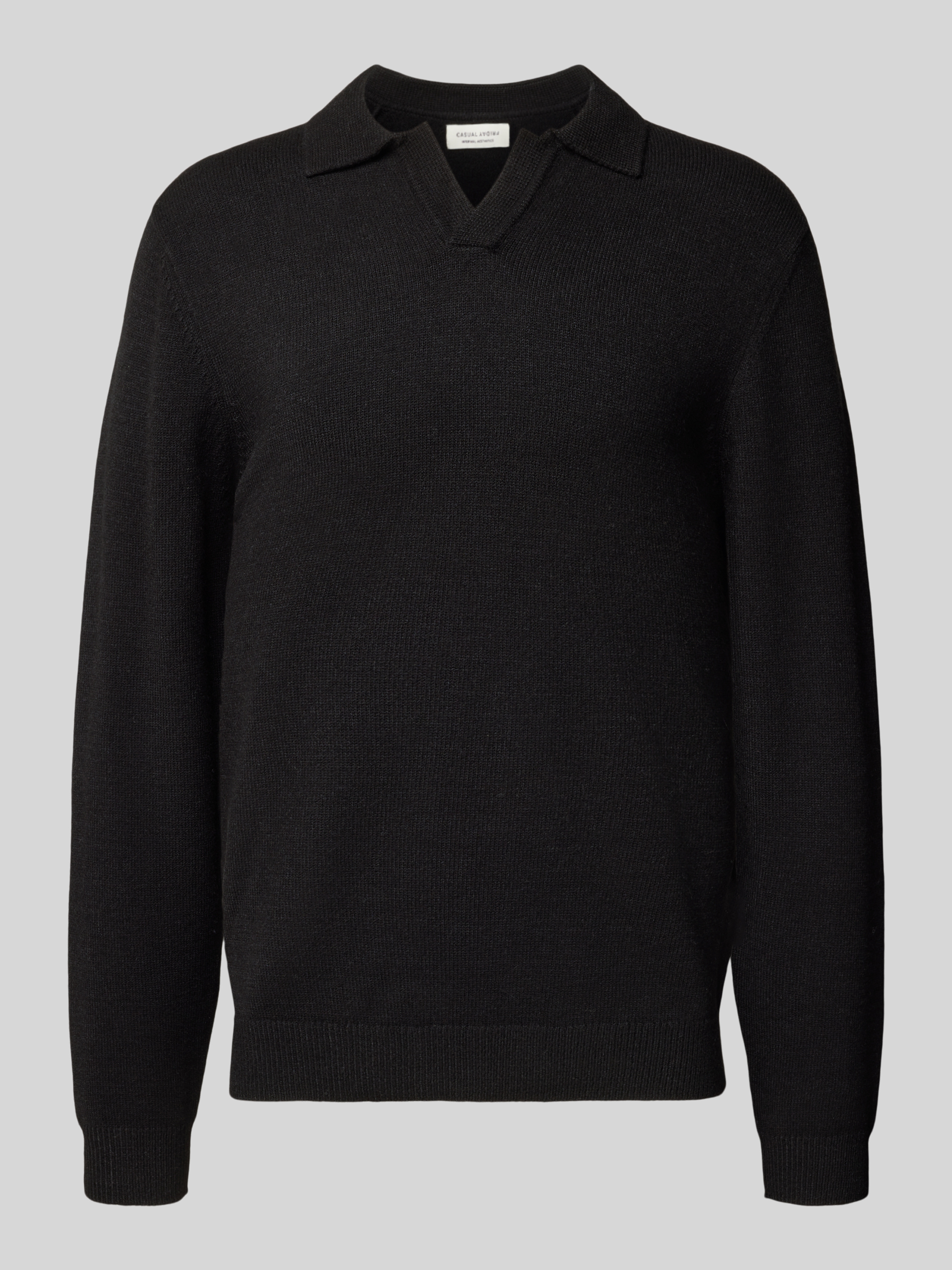 Casual FridayRegular Fit Longsleeve mit Polokragen Modell 'Karl' in black