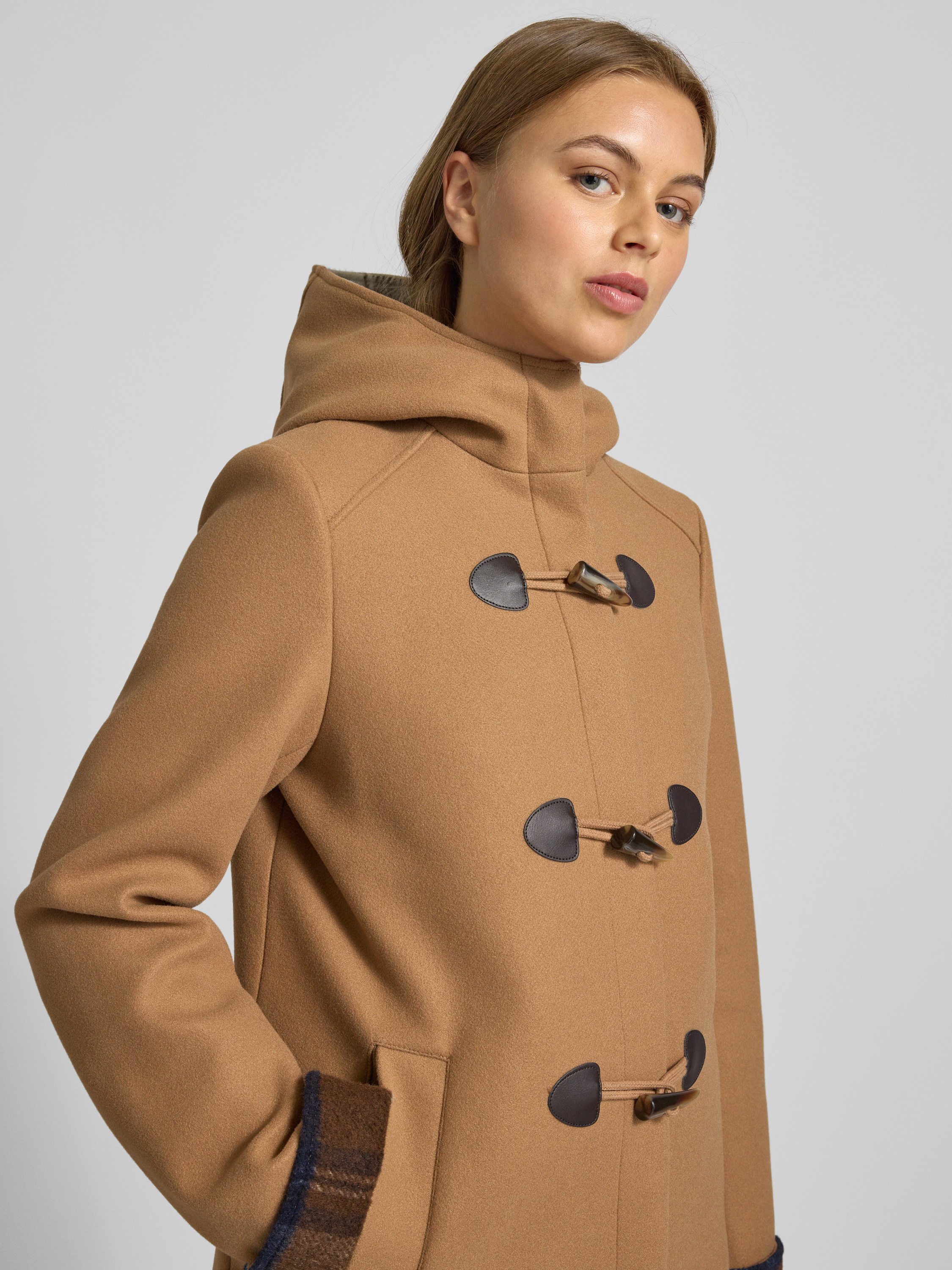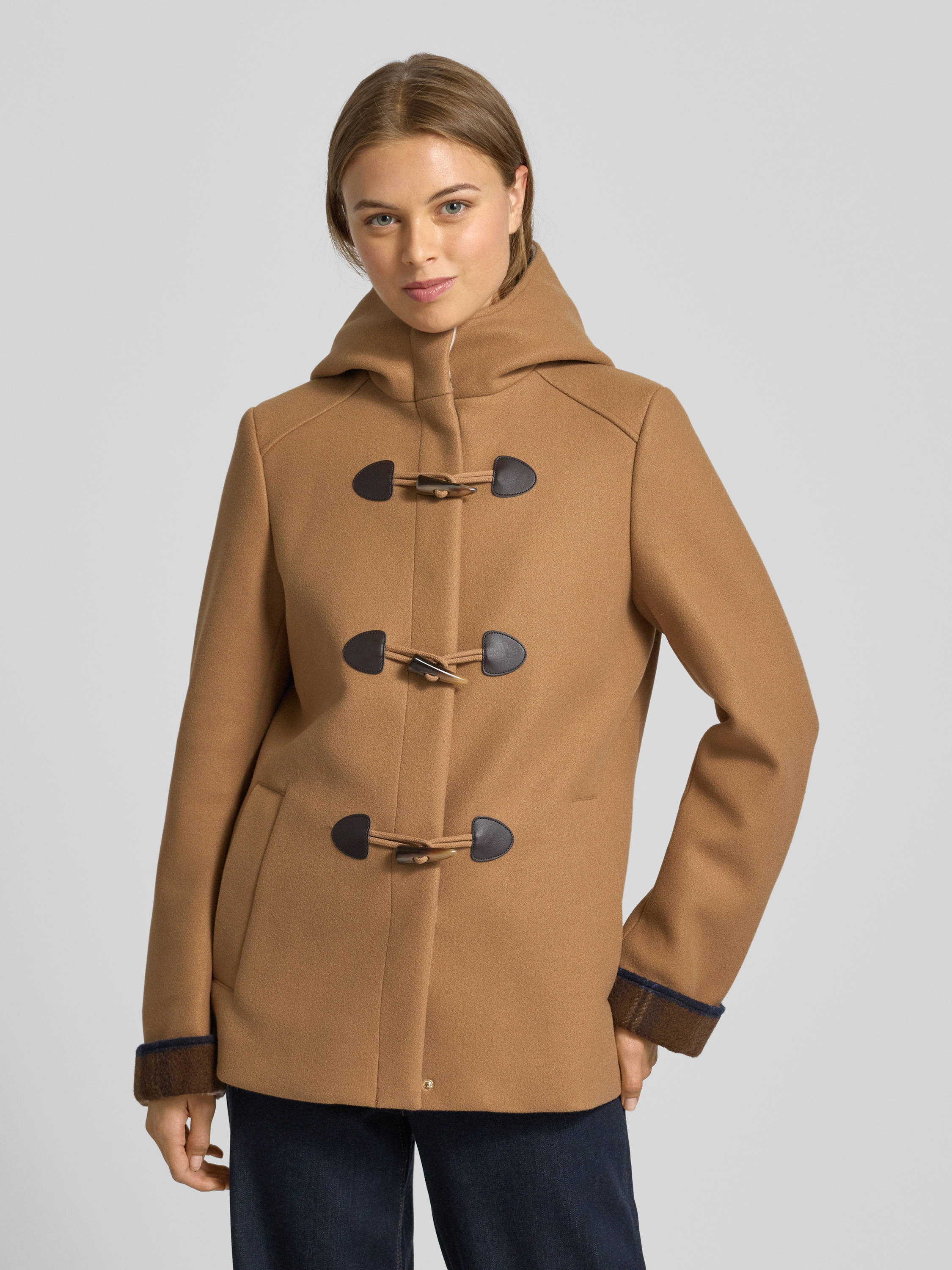 Der Dufflecoat von Christian Berg Woman Selection zeichnet sich durch seinen lockeren Schnitt aus, der Bewegungsfreiheit im Alltag ermöglicht. Die Kapuze schützt zuverlässig vor Wind und leichtem Regen, während der Hakenverschluss für ein unkompliziertes Schließen sorgt. So lässt sich der Mantel vielseitig kombinieren und angenehm tragen.