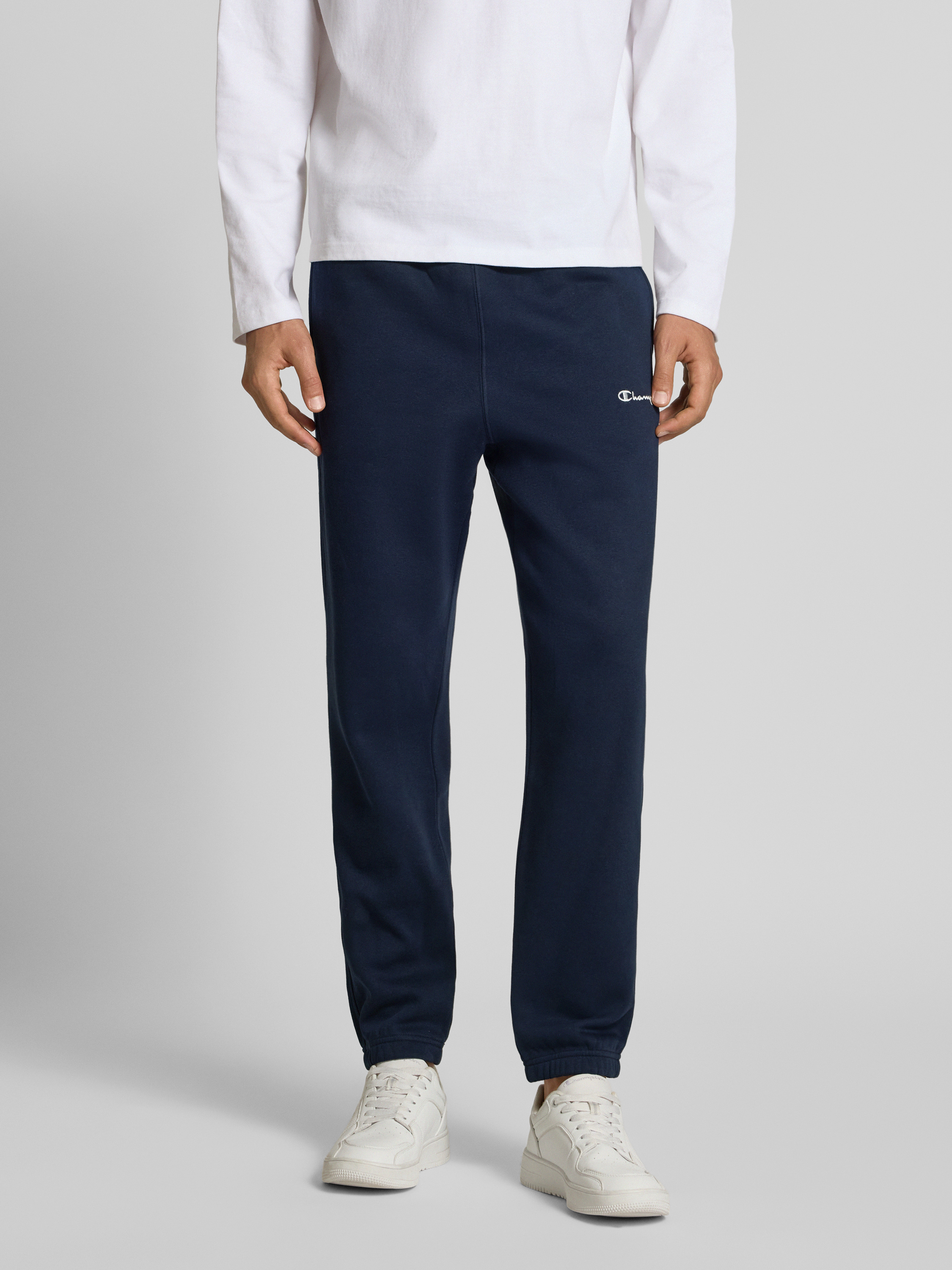Die Herrenhose Regular Fit Sweatpants von CHAMPION verbindet einen angenehm lockeren Schnitt mit einem soften Baumwoll-Mix, der sich auch bei längeren Tragezeiten komfortabel anfühlt. Durch den elastischen Bund sitzt sie entspannt, während das dezente Label-Stitching sportive Akzente setzt. So eignet sich das Modell für entspannte Stunden ebenso wie für den Alltag.