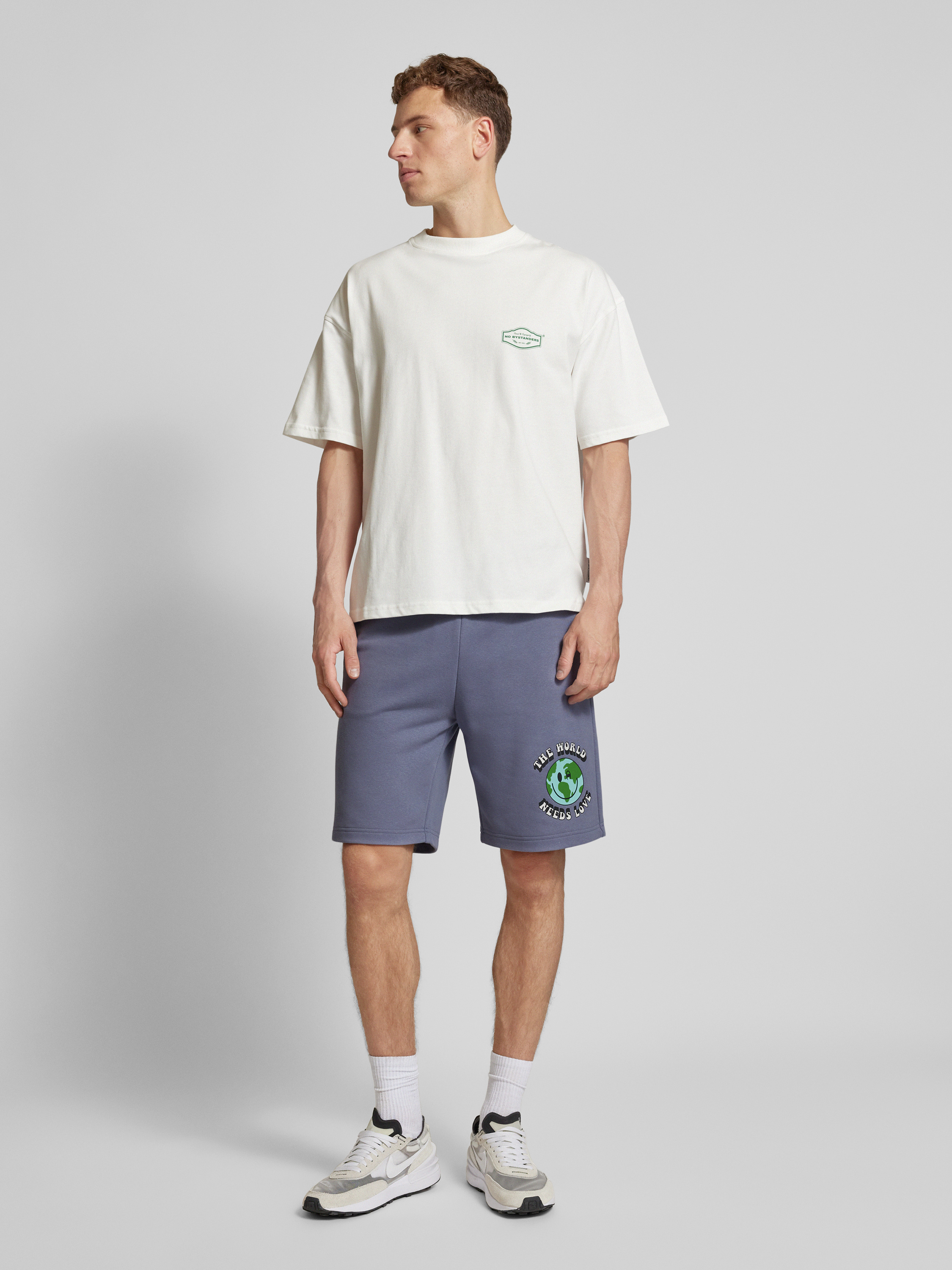 Die Herren Sweatshorts von Champion, Modell 'ECO FUTUR CIROLAR', bieten durch ihren Regular Fit und den Baumwoll-Mix einen angenehmen Tragekomfort. Der elastische Bund mit Tunnelzug sorgt für eine individuelle Passform. Ein auffälliger Motiv-Print verleiht den Shorts einen lässigen Look.