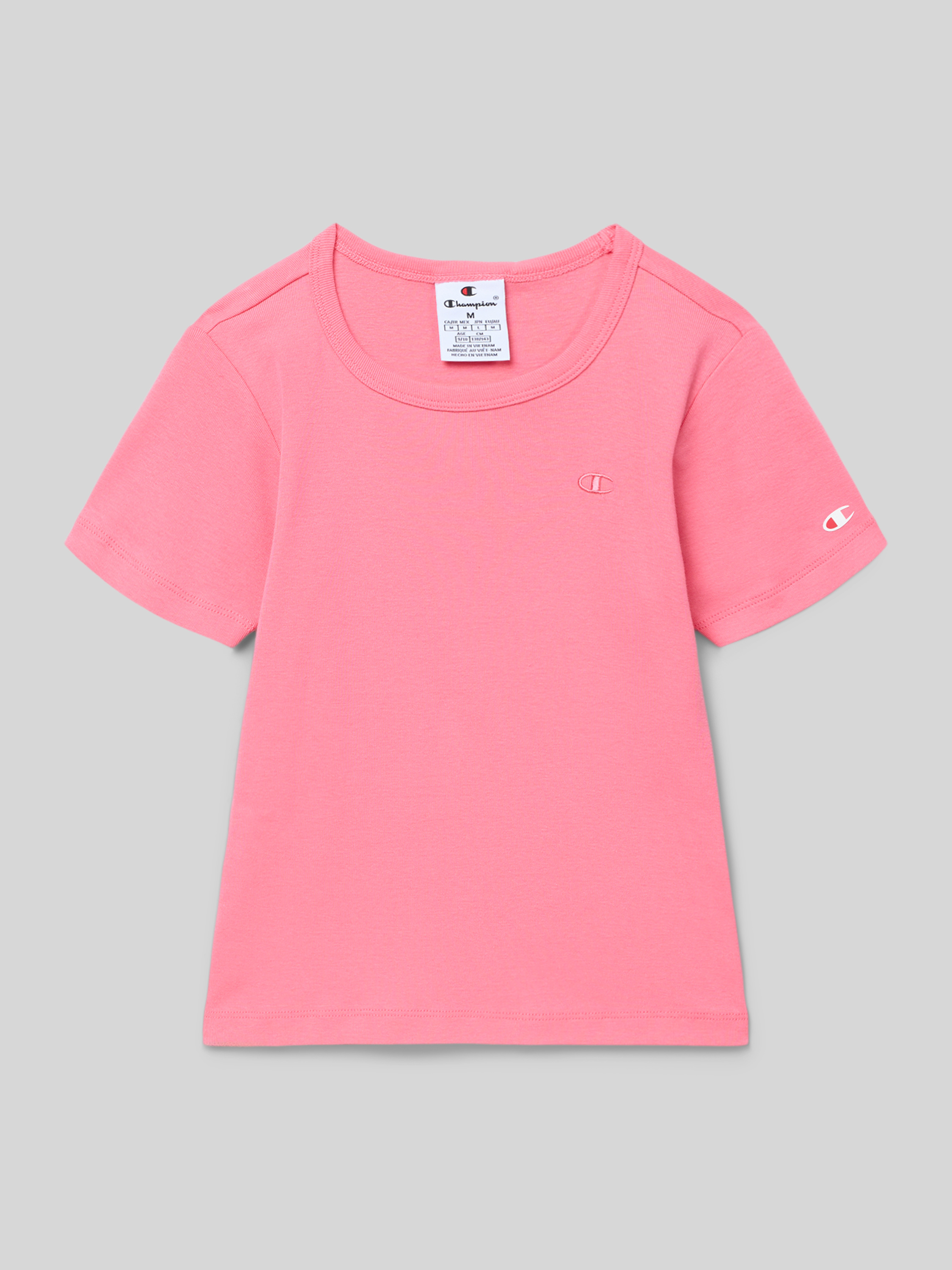 Das T-Shirt von CHAMPION aus reiner Baumwolle fühlt sich angenehm auf der Haut an und sorgt durch den klassischen Regular Fit für Bewegungsfreiheit im Alltag. Dezentes Label-Stitching setzt einen sportiven Akzent, während der gerippte Rundhalsausschnitt einen bequemen Sitz ermöglicht. So bleibt das T-Shirt vielseitig kombinierbar.