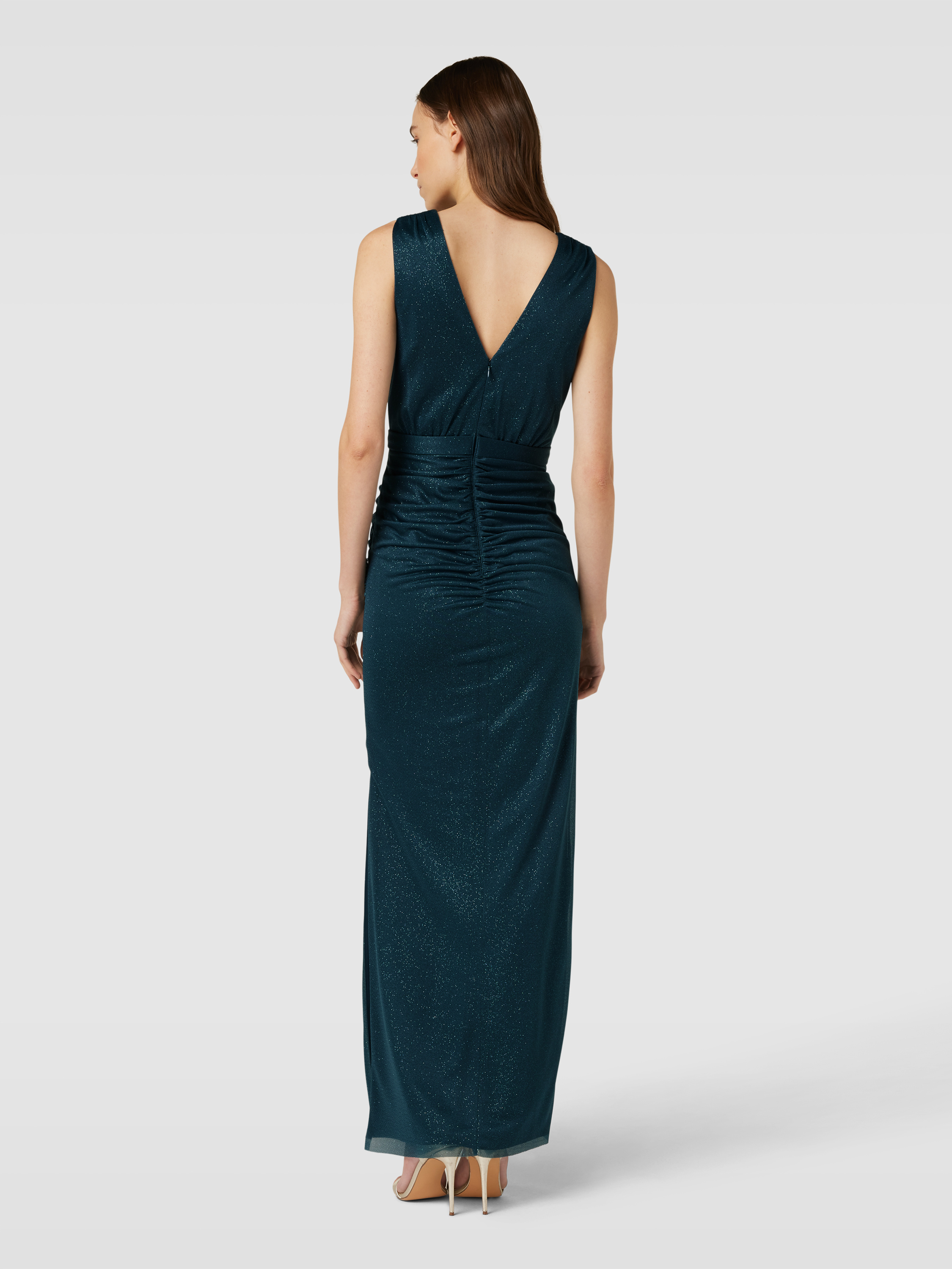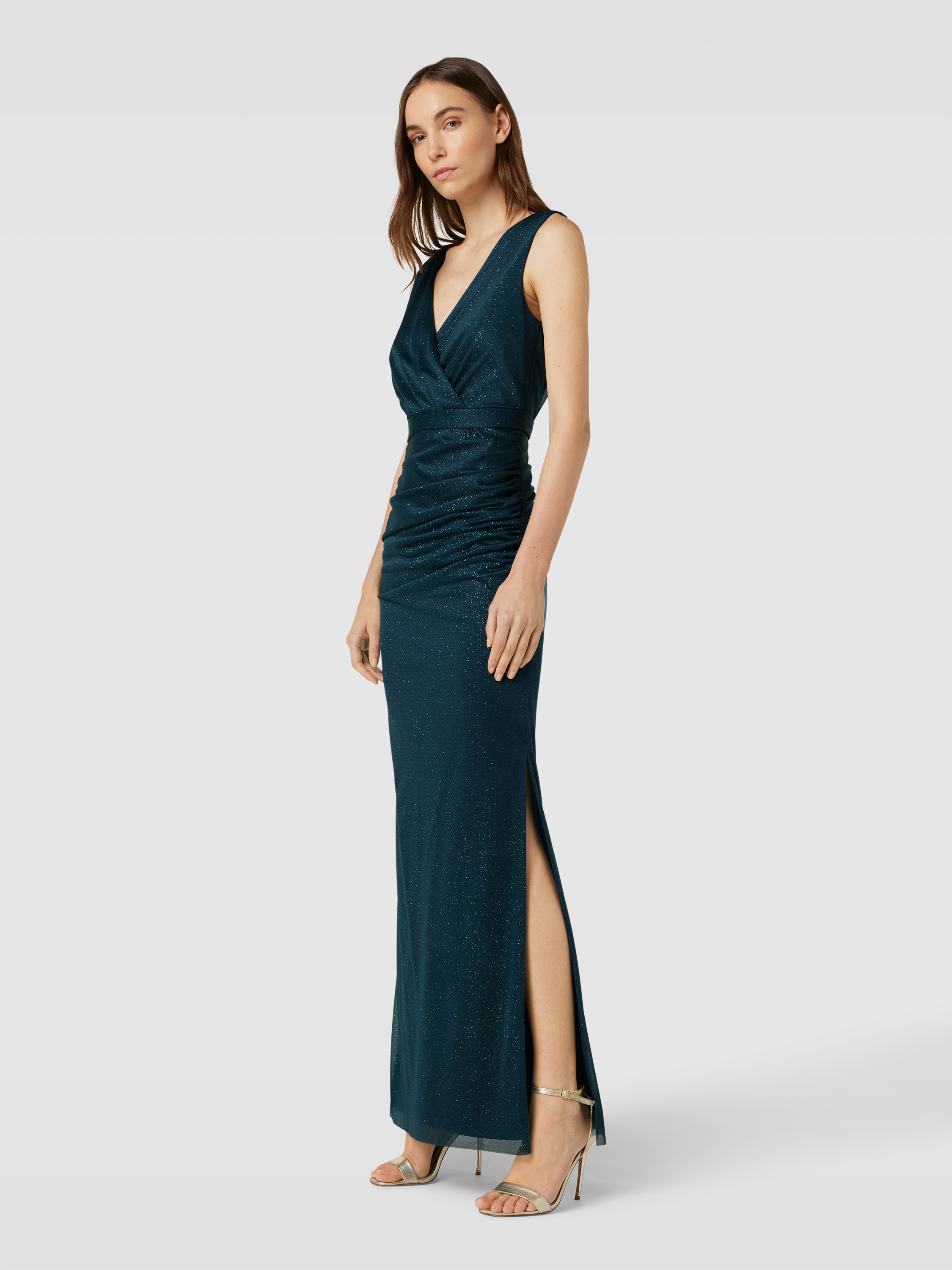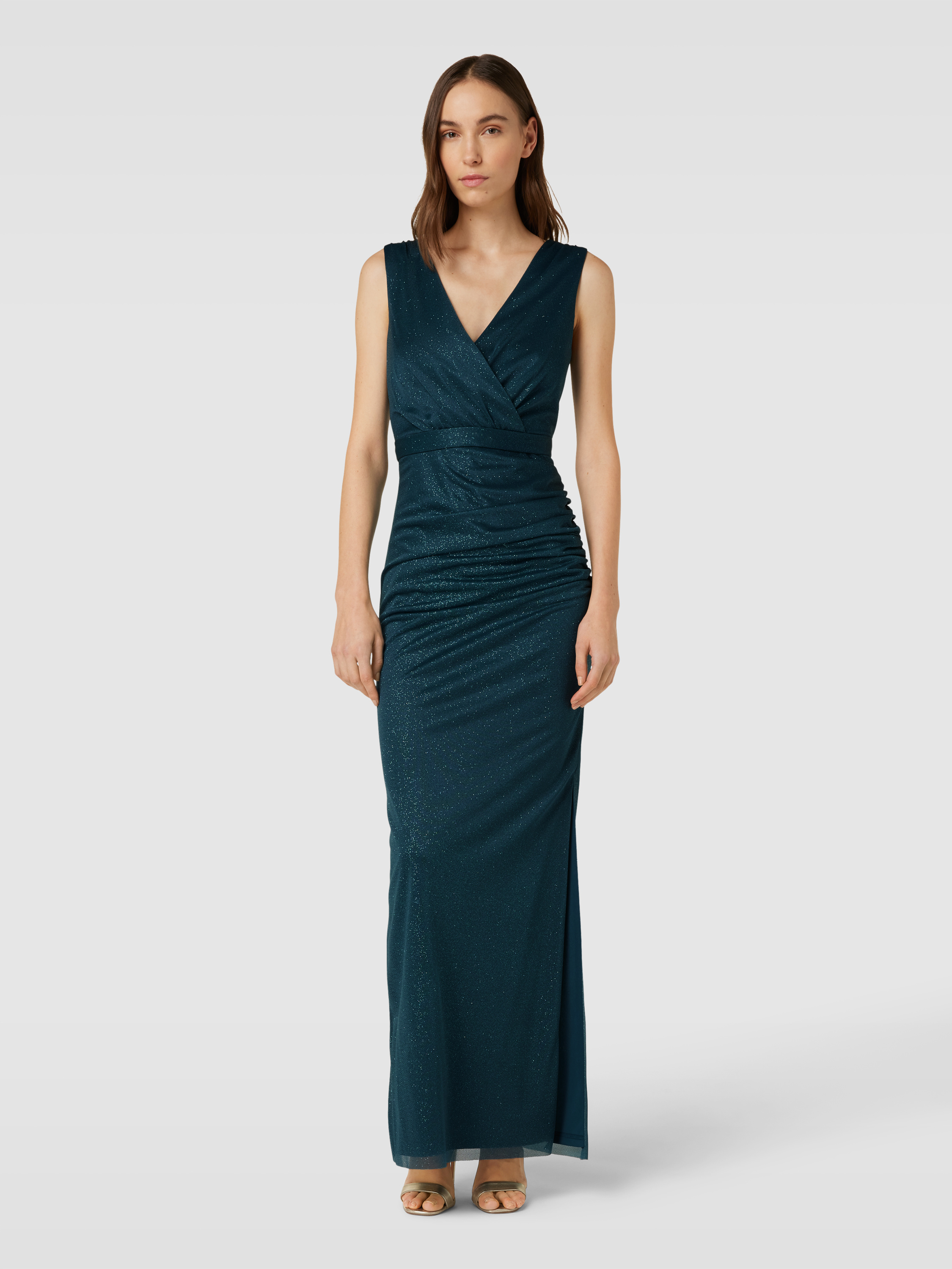 Das Abendkleid in Wickel-Optik von Christian Berg Cocktail schmiegt sich durch die körpernahe Silhouette angenehm an und unterstreicht mit dem fließenden Glitzermesh einen festlichen Stil. Die breite Trägerführung sowie der V-Ausschnitt sorgen für sicheren Halt und betonen die Schulterpartie. Durch das unifarbene Design lässt sich das Maxikleid vielseitig kombinieren.