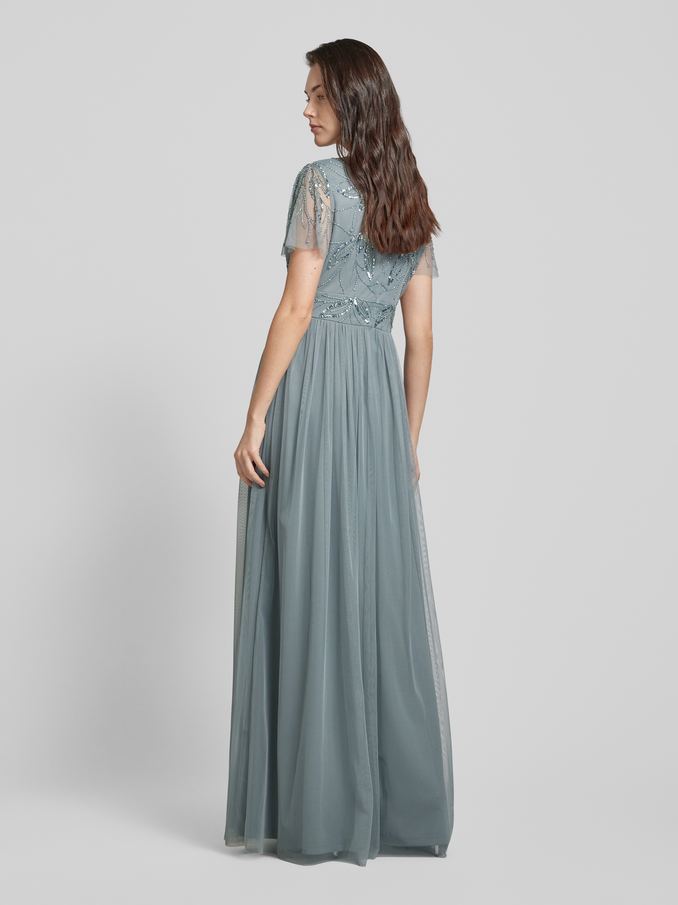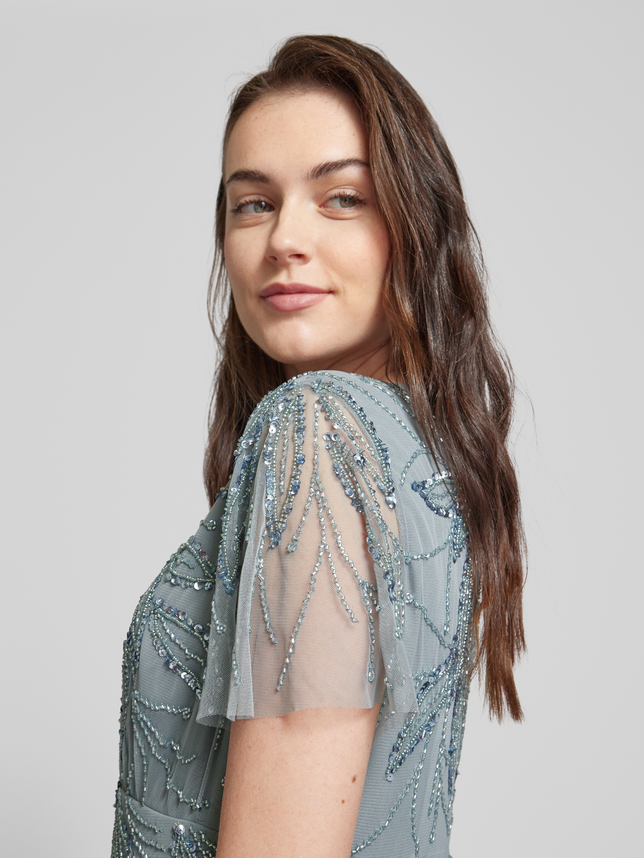 Christian Berg CocktailAbendkleid mit Paillettenbesatz in ocean