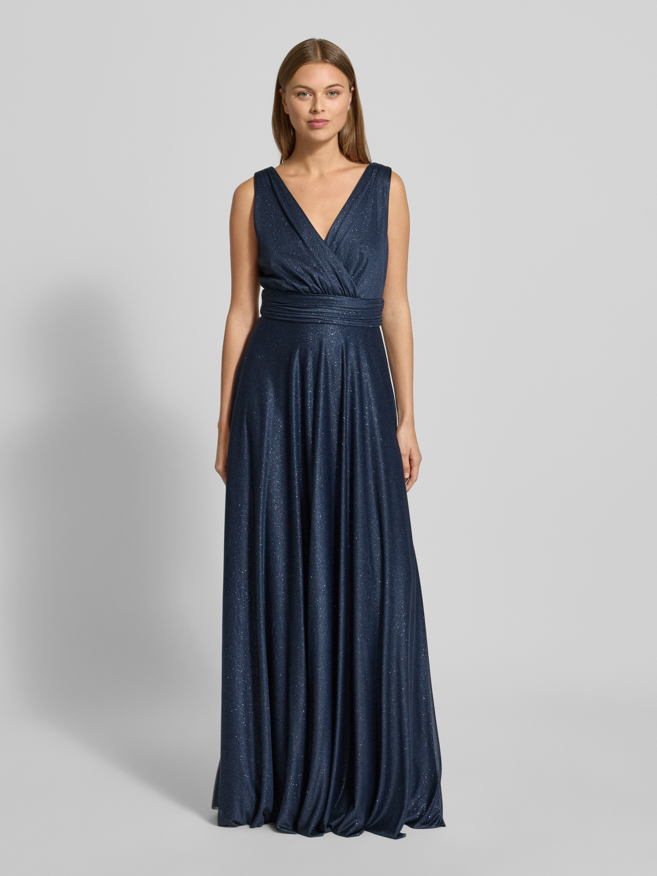 Christian Berg CocktailAbendkleid mit V-Ausschnitt und Taillenband in marine melange