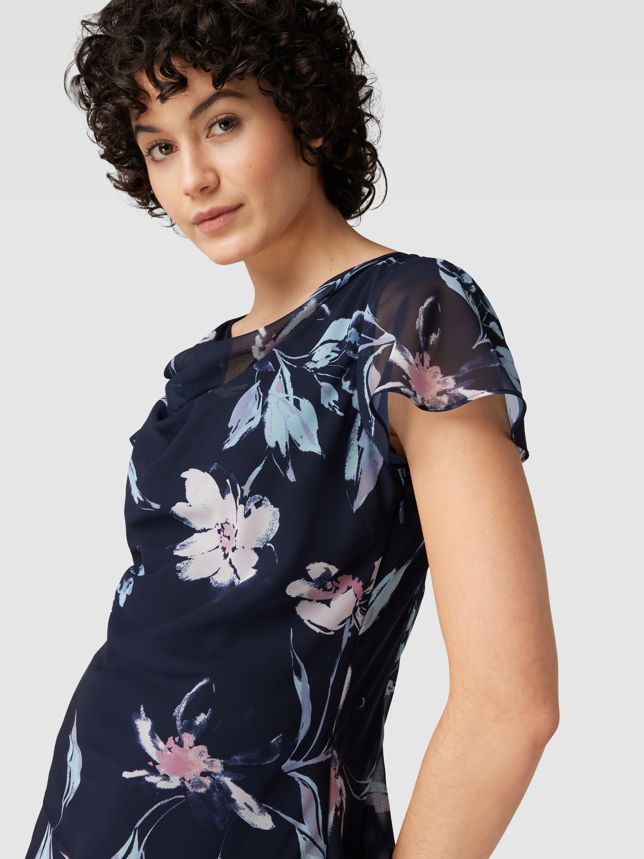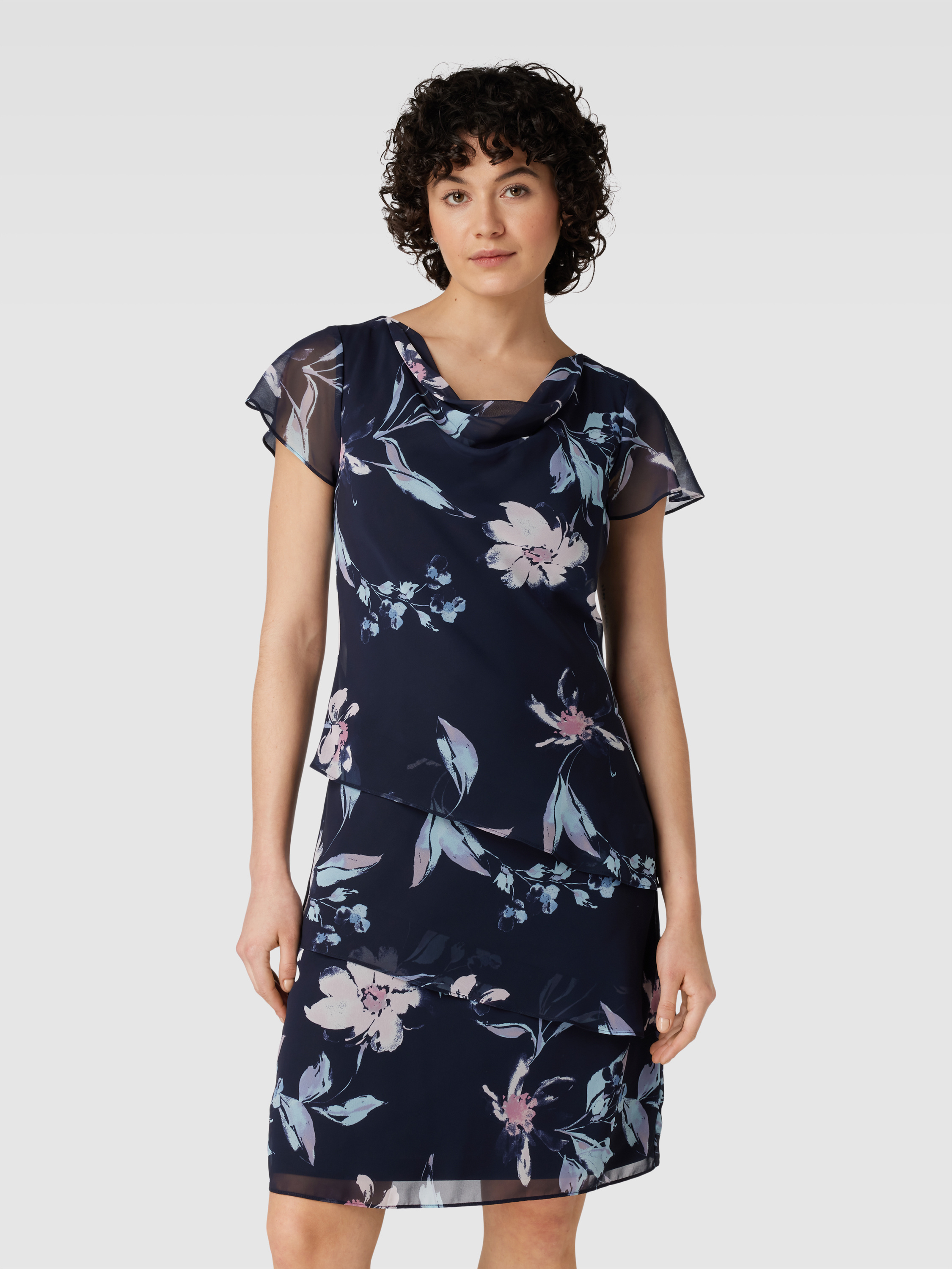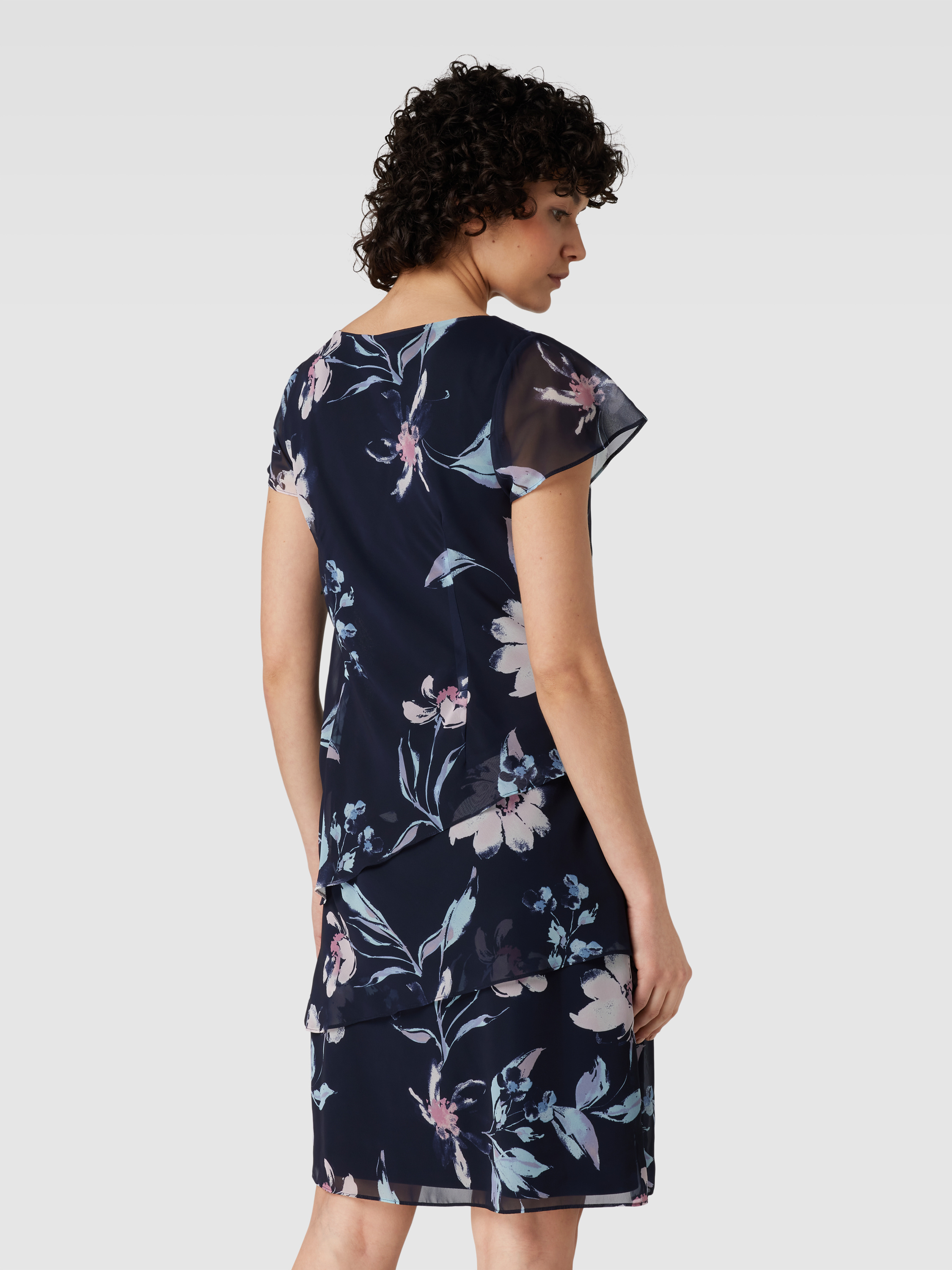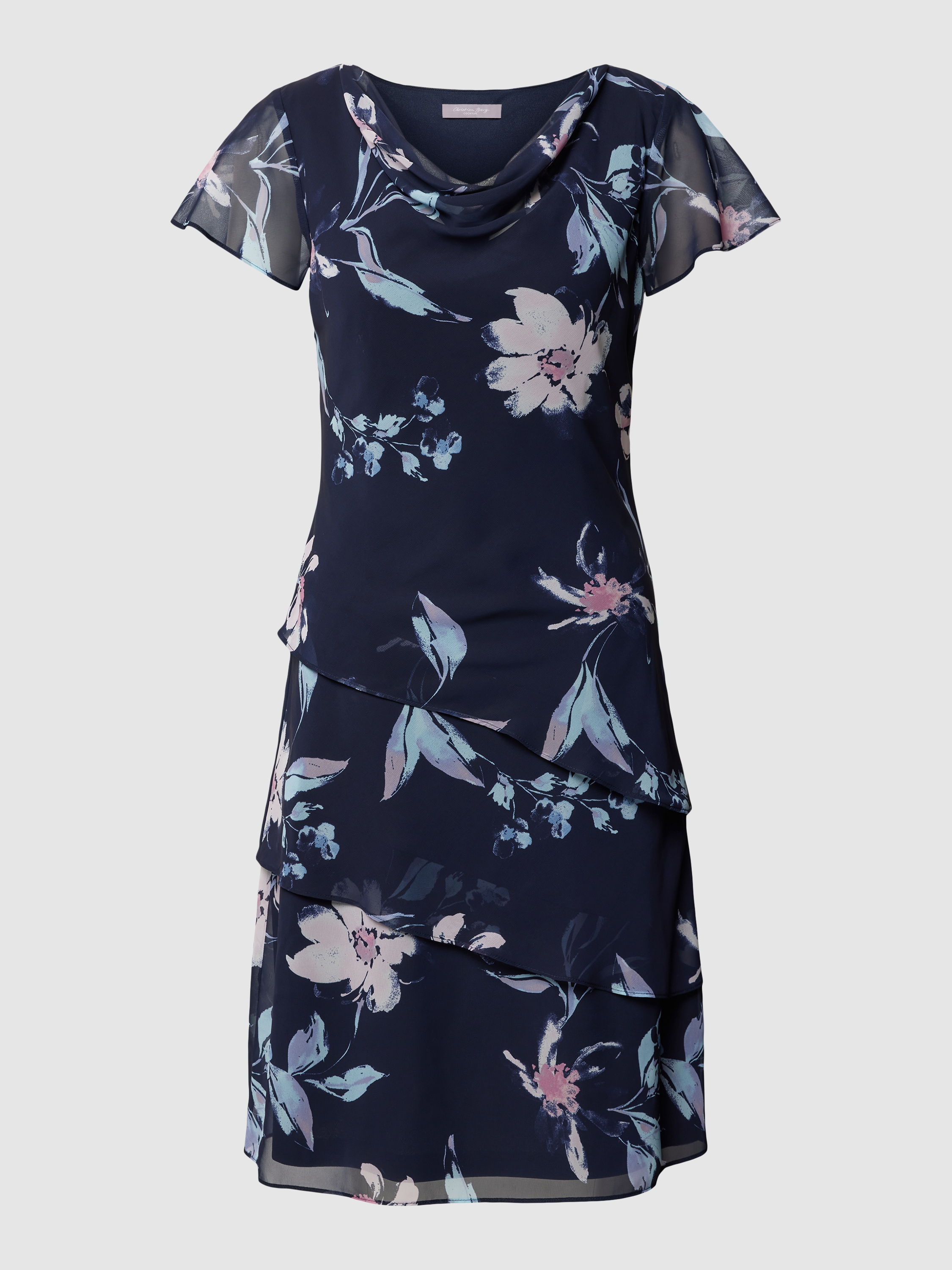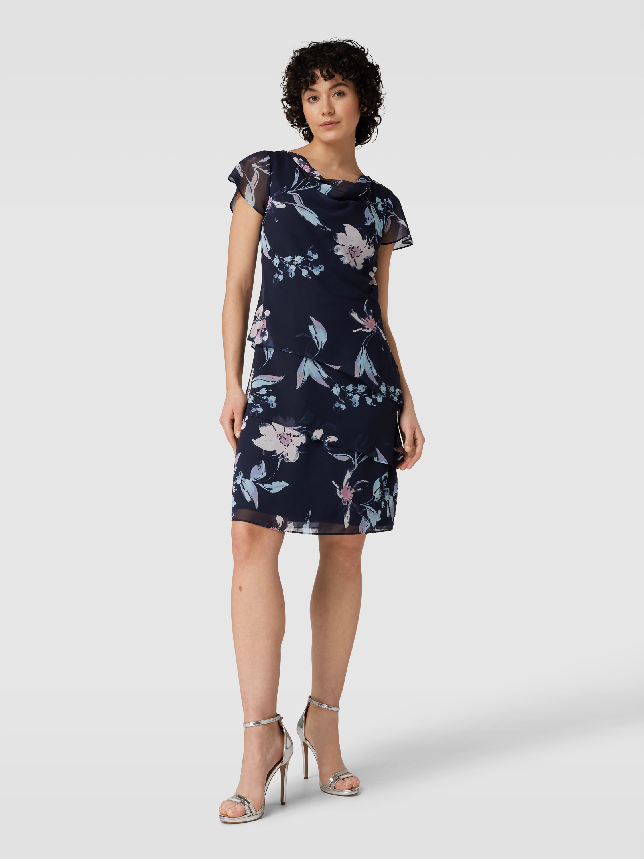 Christian Berg CocktailKnielanges Cocktailkleid mit floralem Muster in marine melange