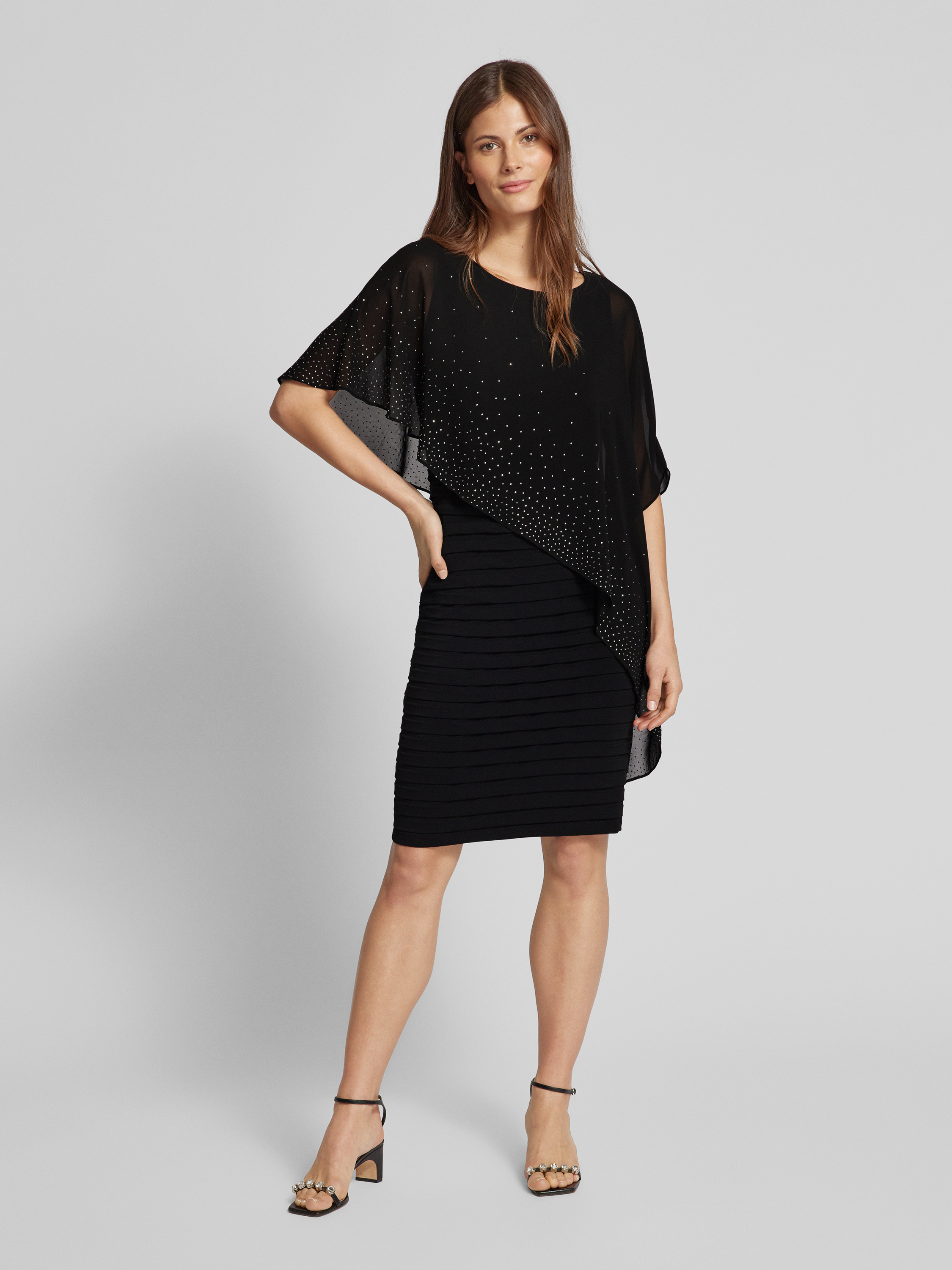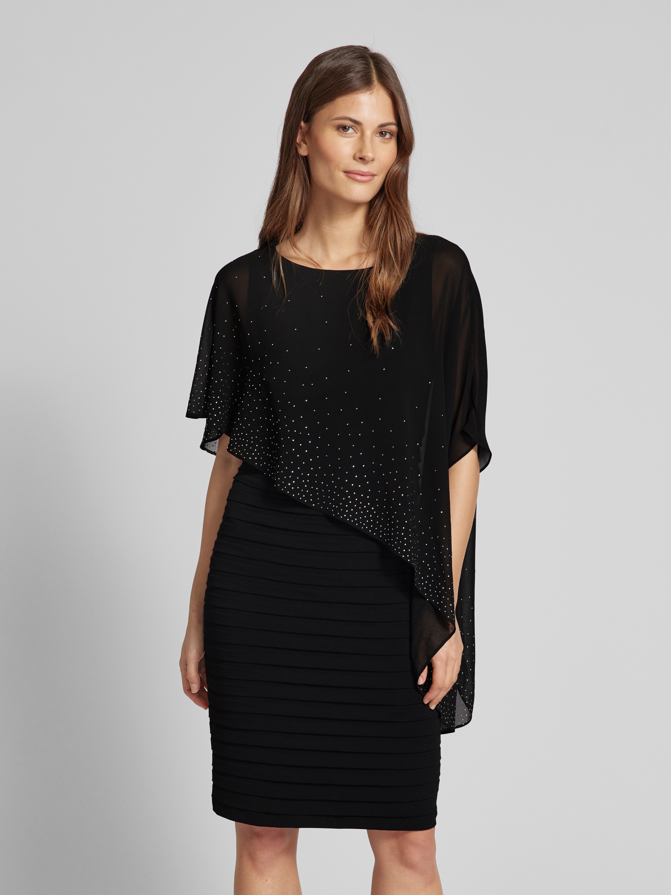 Das knielange Cocktailkleid von Christian Berg Cocktail vereint Eleganz und Komfort durch seinen taillierten Schnitt und den edlen Ziersteinbesatz. Der Rundhalsausschnitt verleiht dem Kleid eine zeitlose Note, während es sich hervorragend für besondere Anlässe eignet. Mit seiner raffinierten Gestaltung bietet es eine ansprechende Wahl für stilbewusste Trägerinnen.
