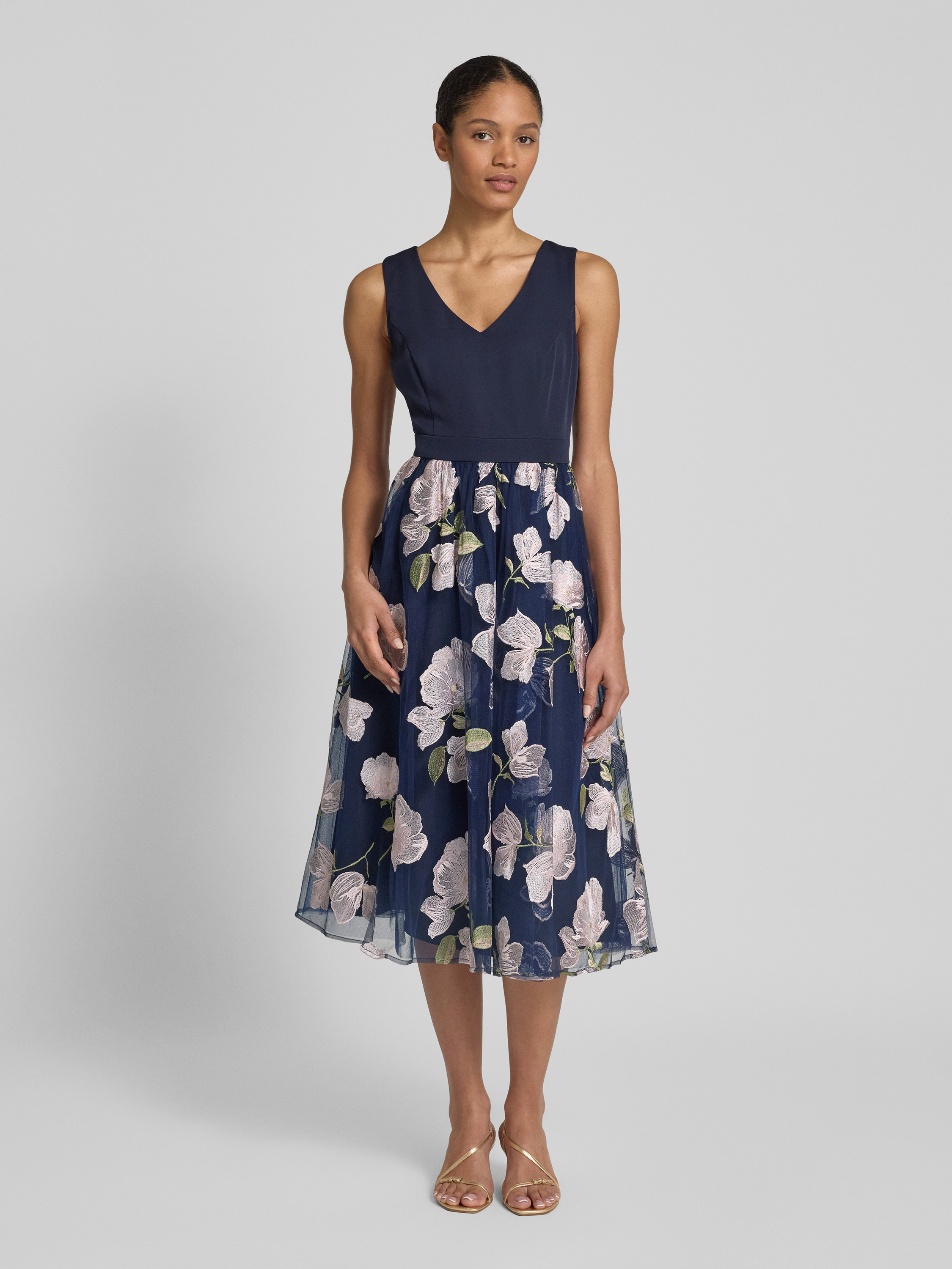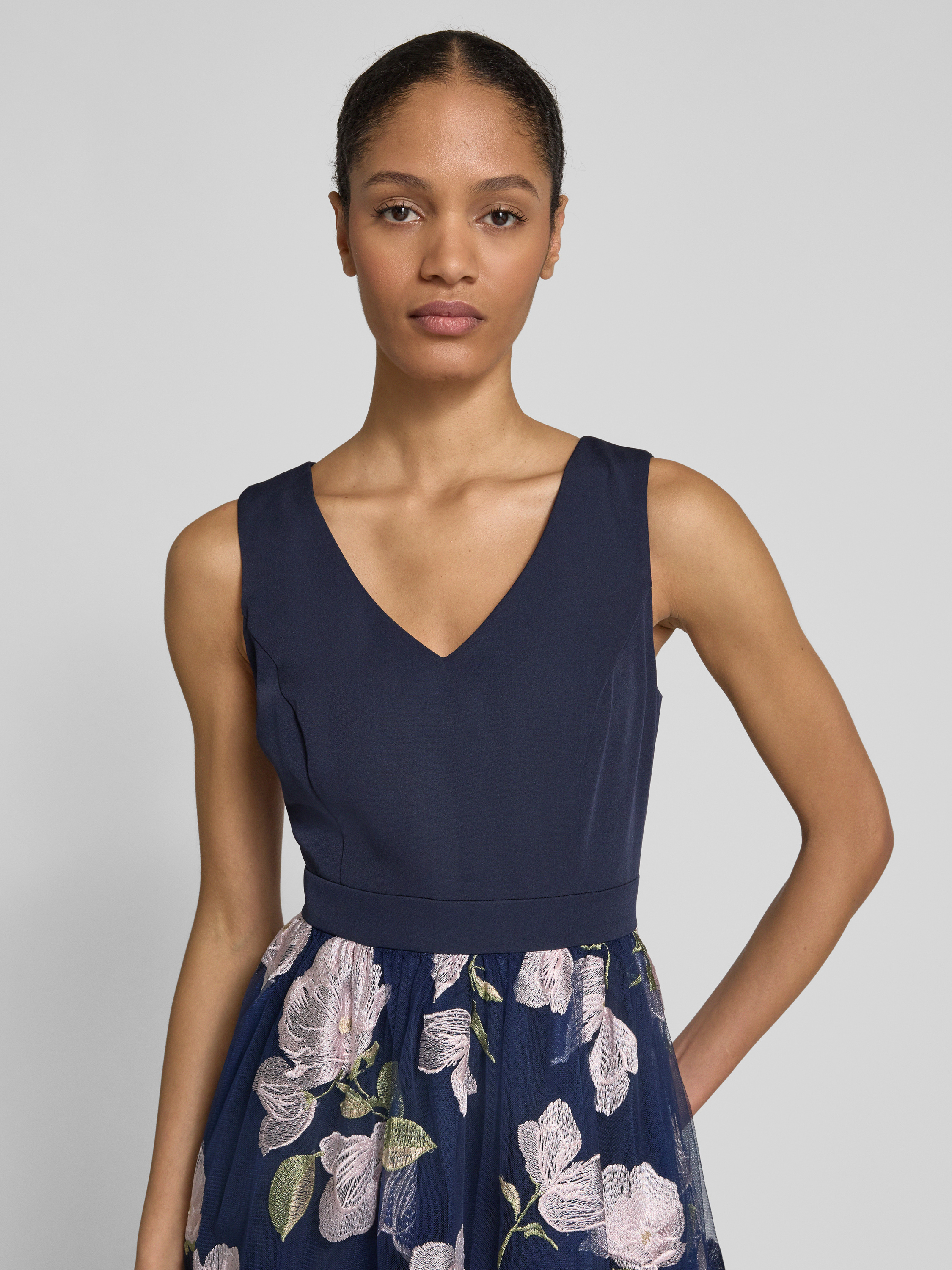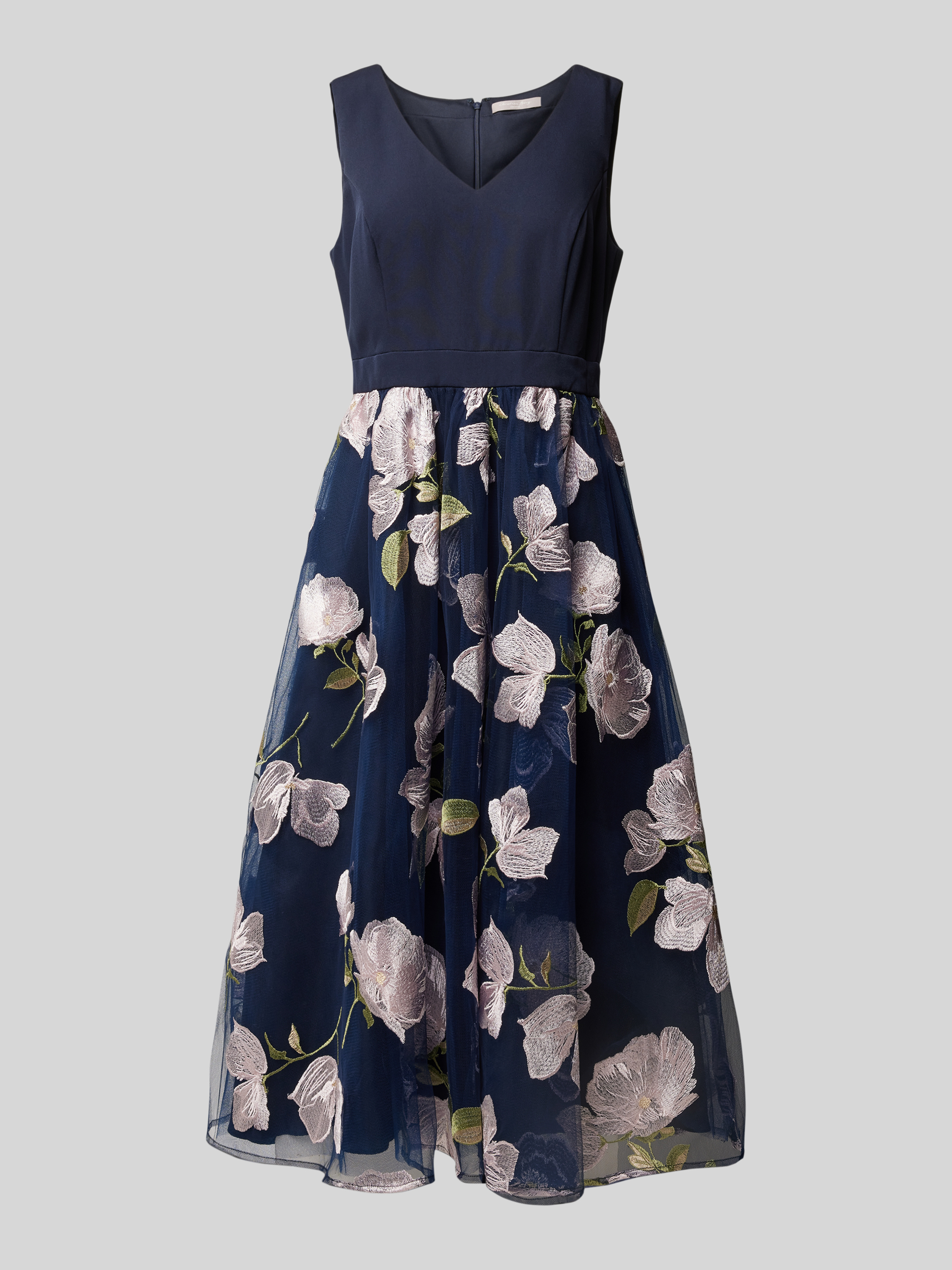 Christian Berg CocktailKnielanges Cocktailkleid mit V-Ausschnitt in marine melange