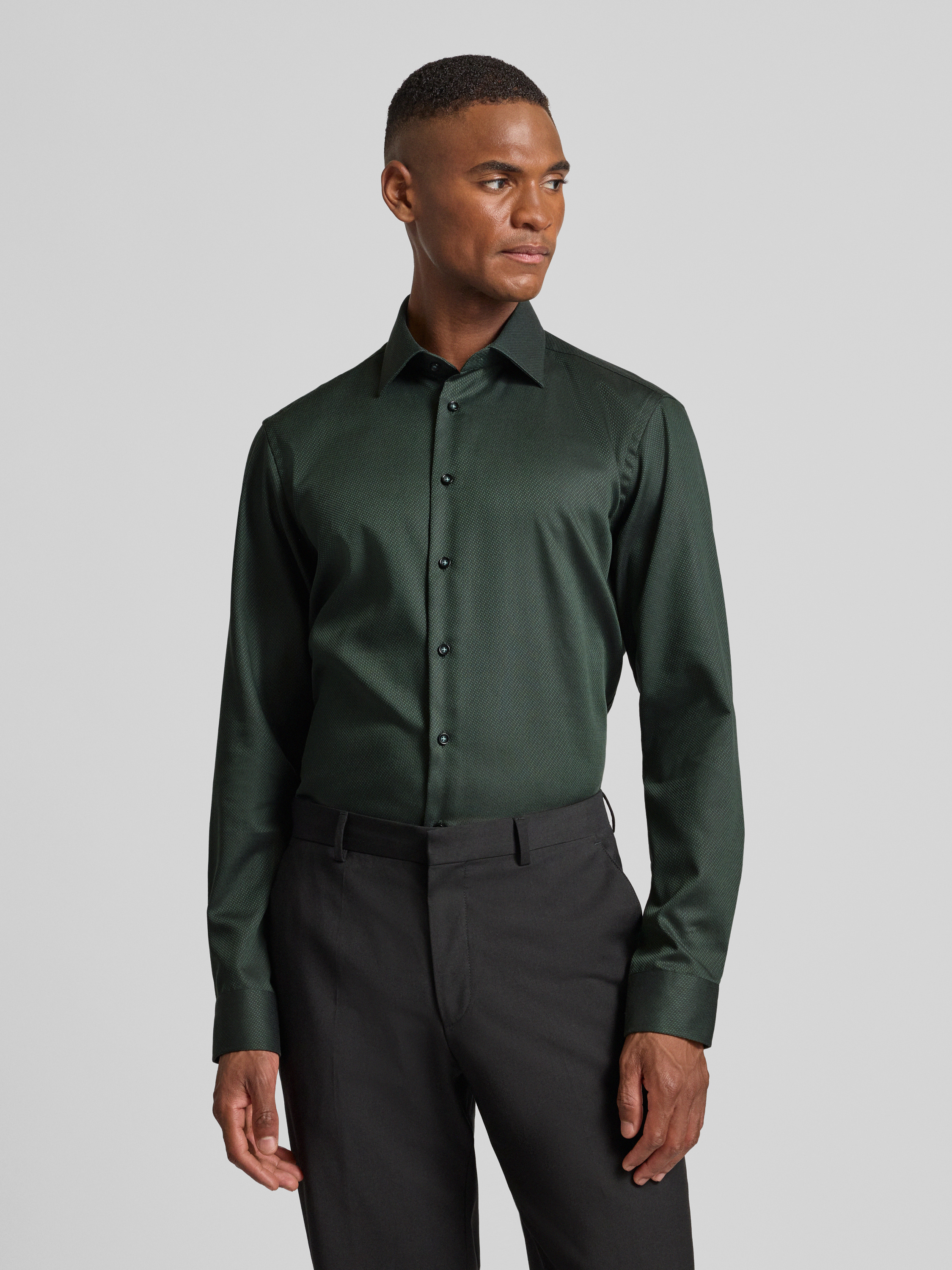 Christian Berg MenRegular Fit Business-Hemd aus reiner Baumwolle mit Kentkragen in bottle