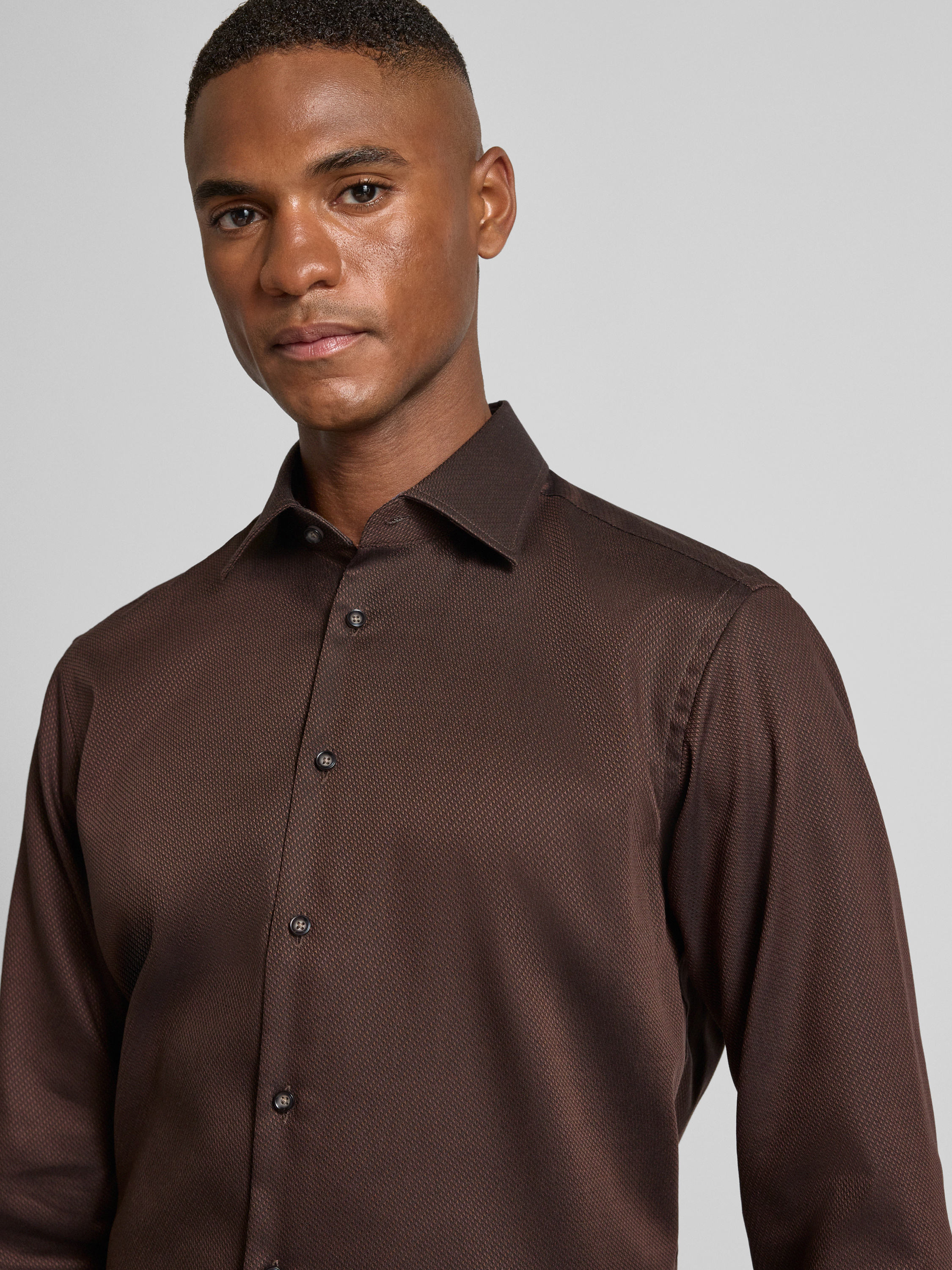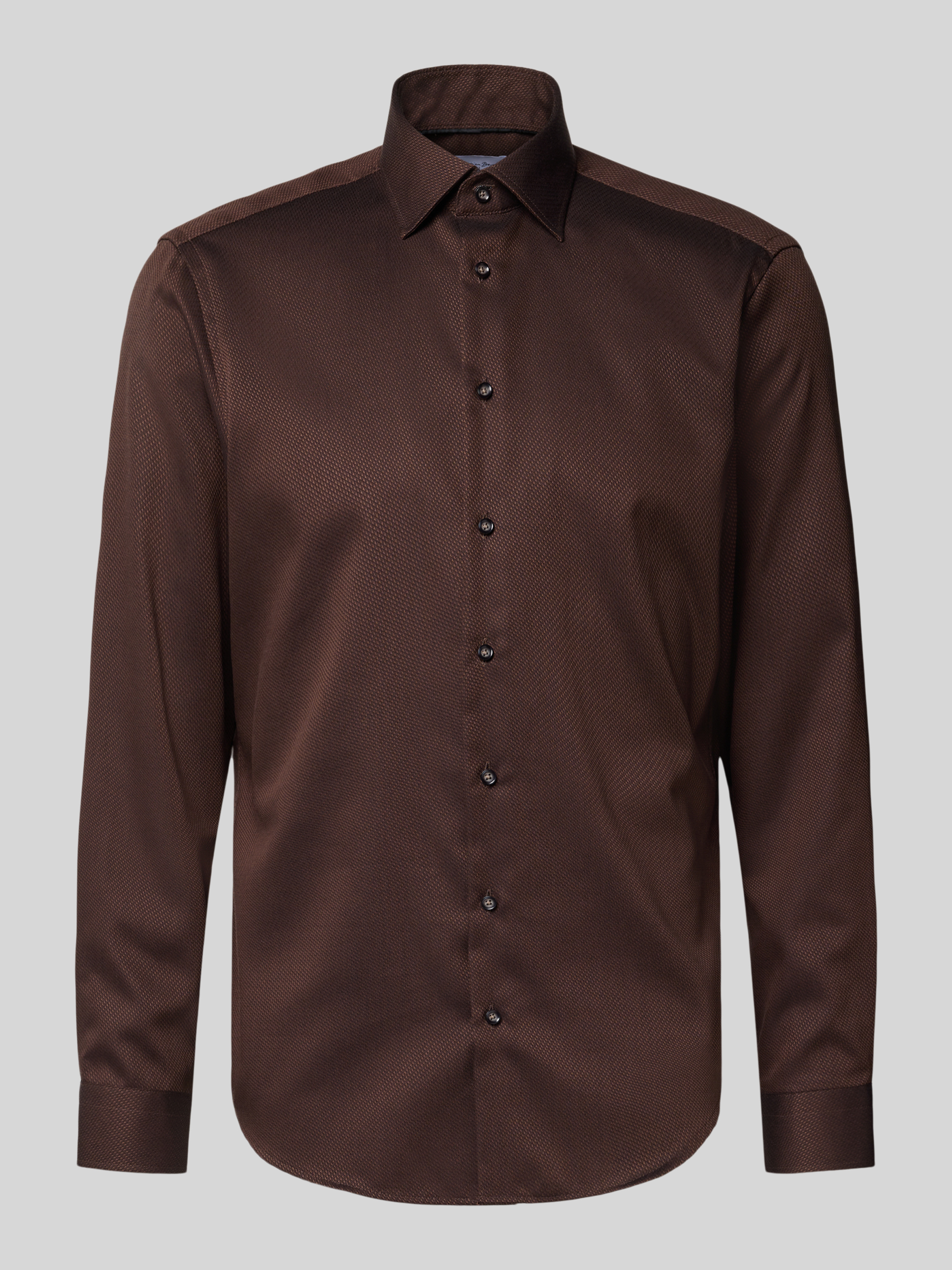 Christian Berg MenRegular Fit Business-Hemd aus reiner Baumwolle mit Kentkragen in mittelbraun