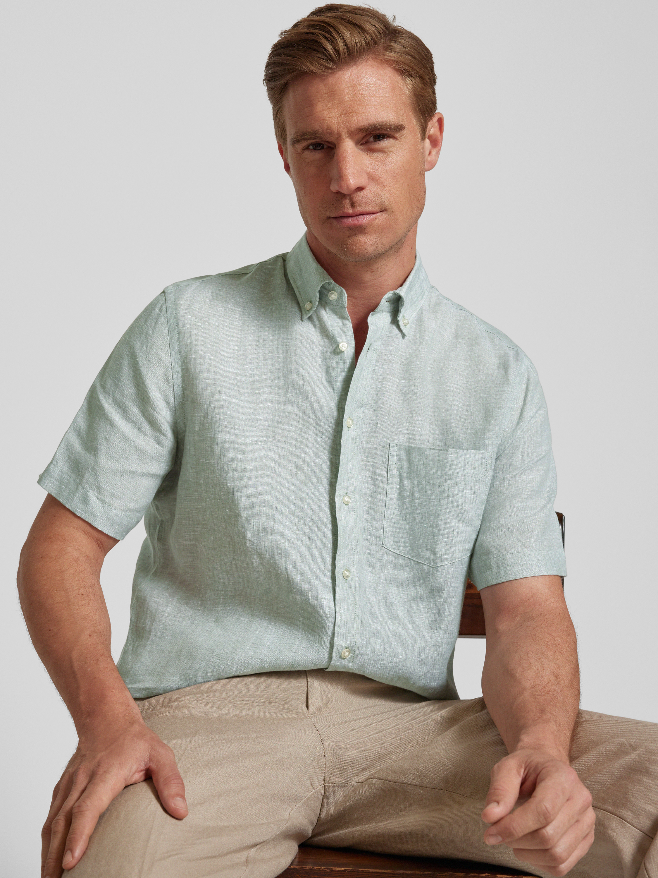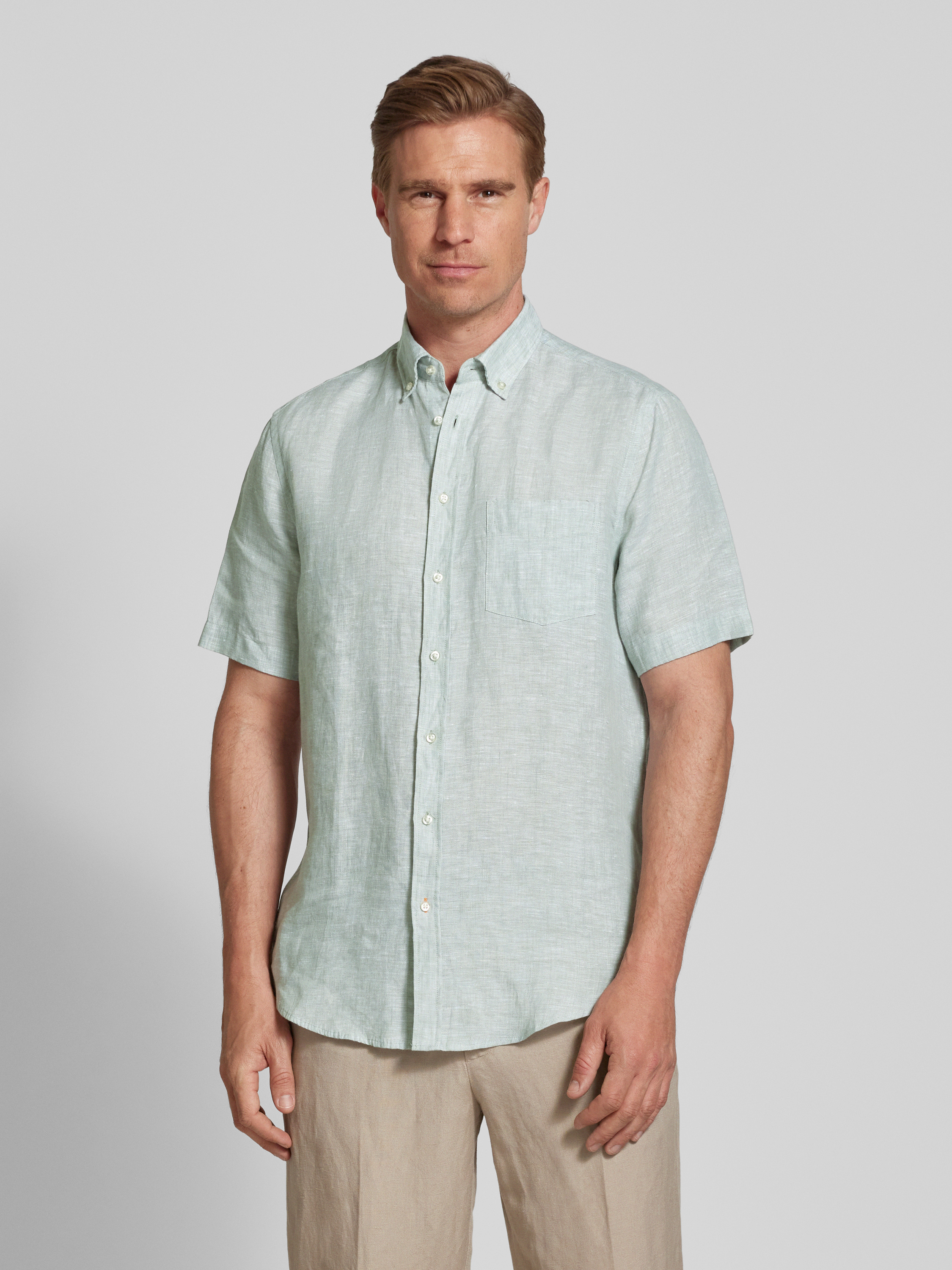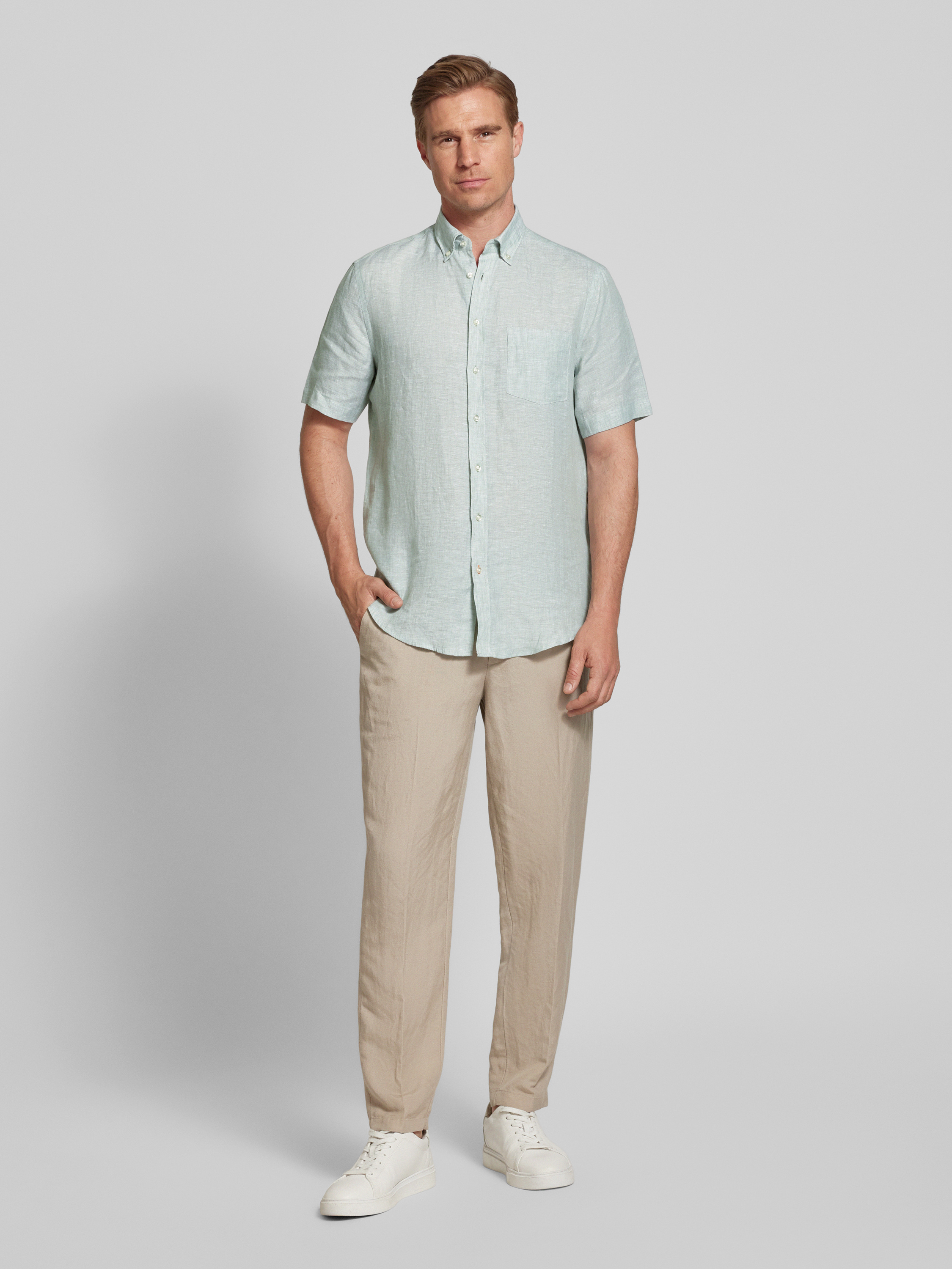 Christian Berg MenRegular Fit Freizeithemd aus reinem Leinen in oliv