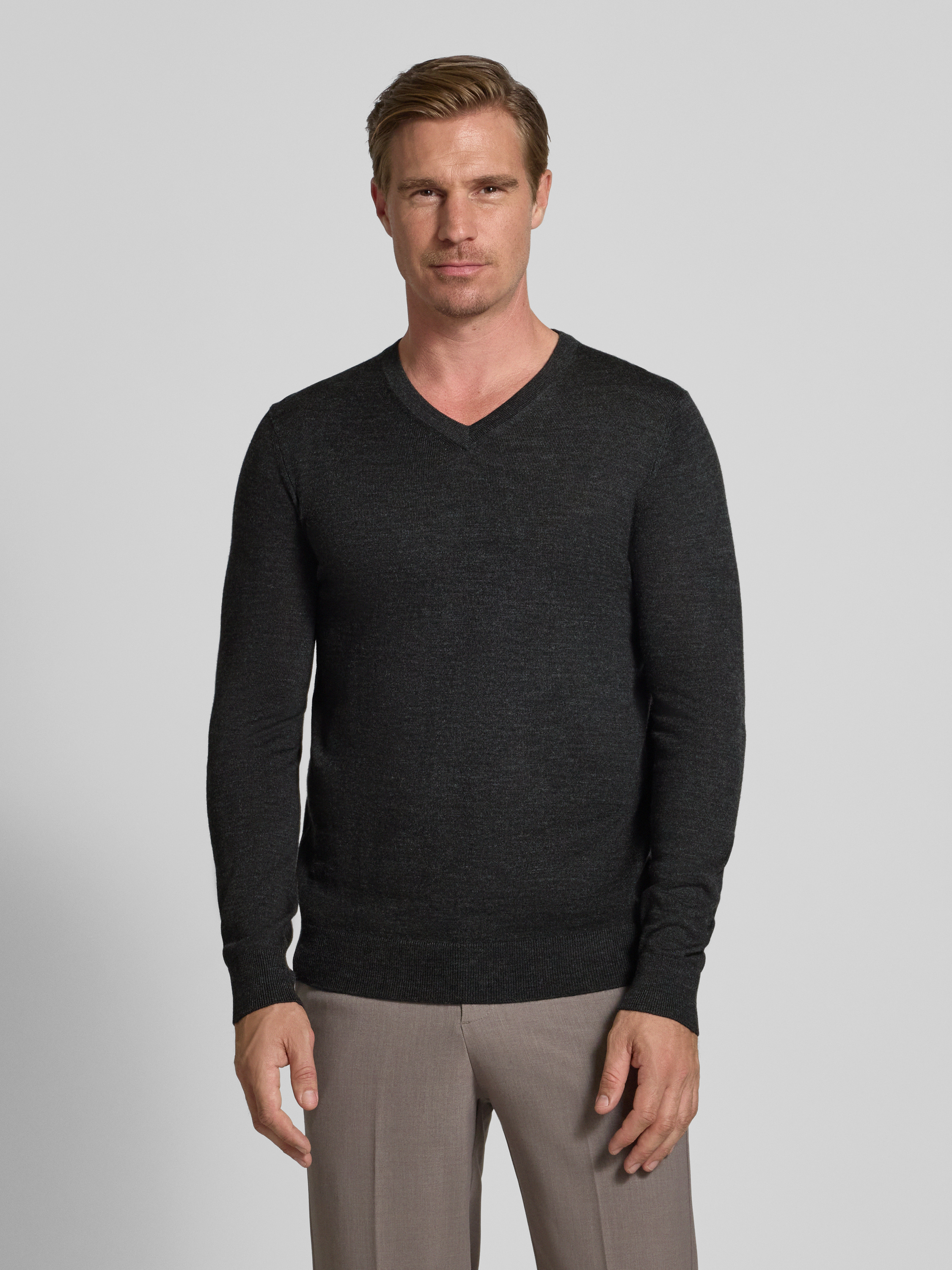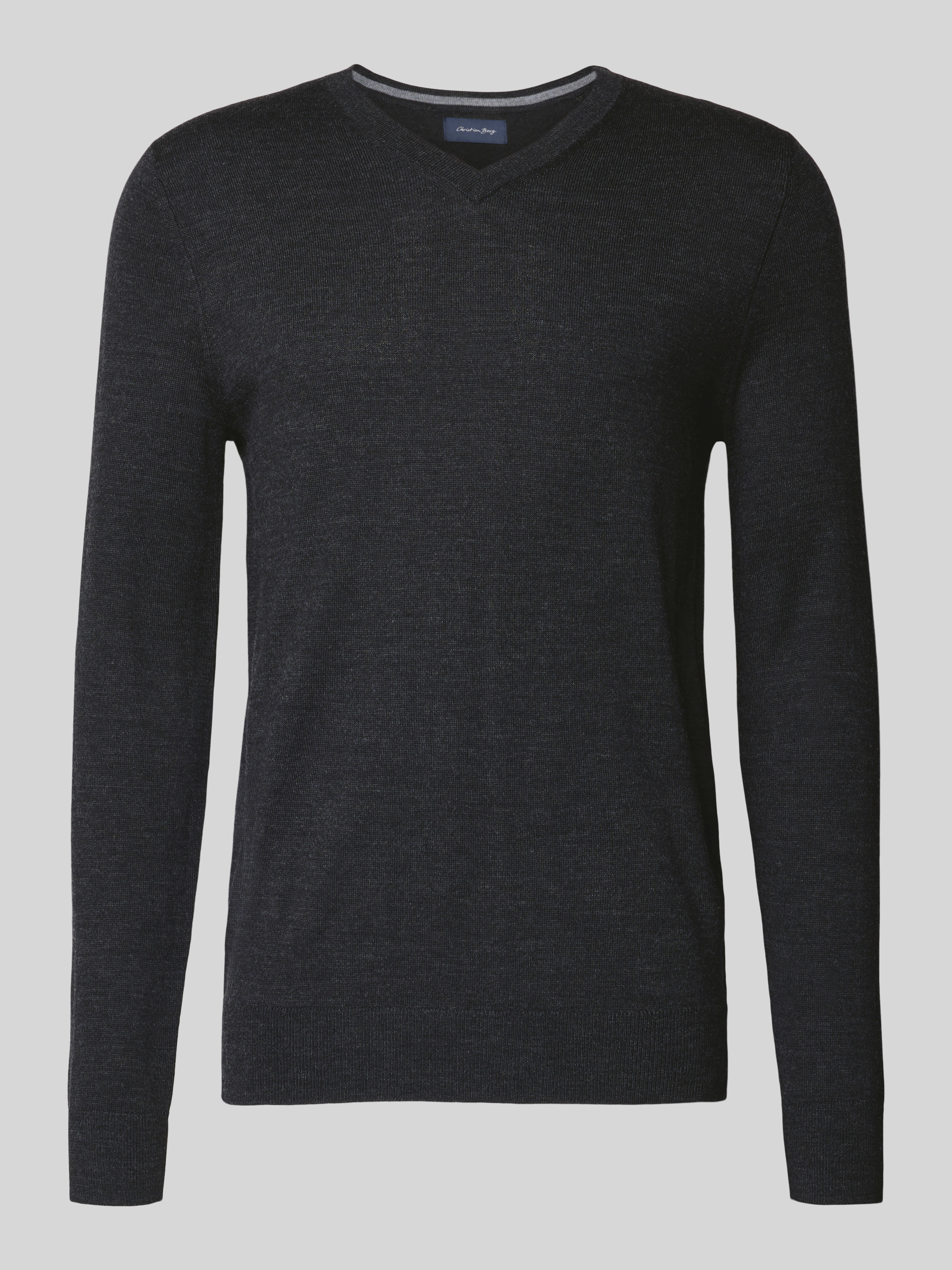 Christian Berg MenStrickpullover aus Merino-Mix mit V-Ausschnitt in anthrazit melange