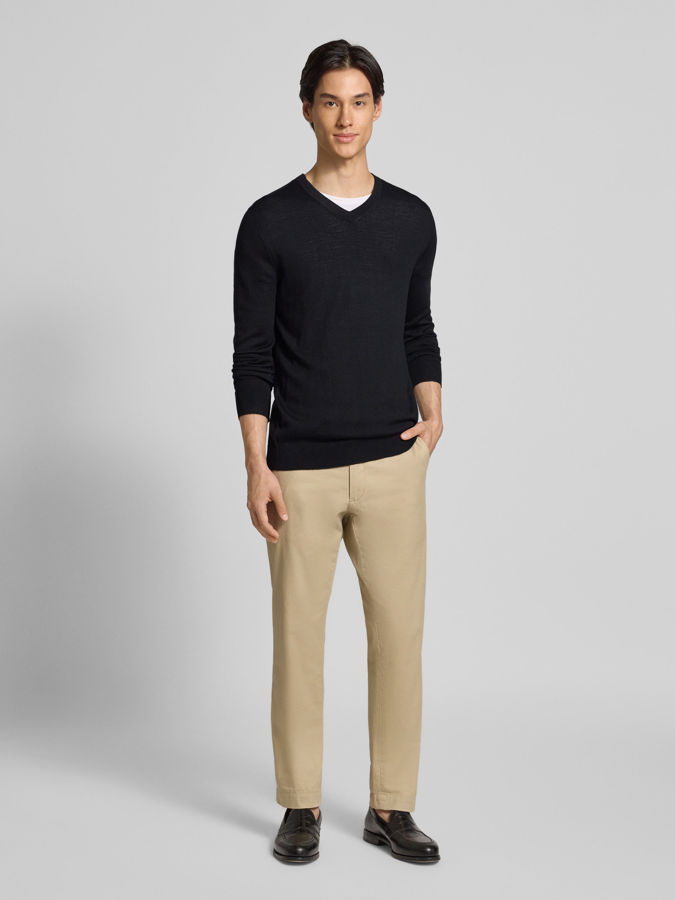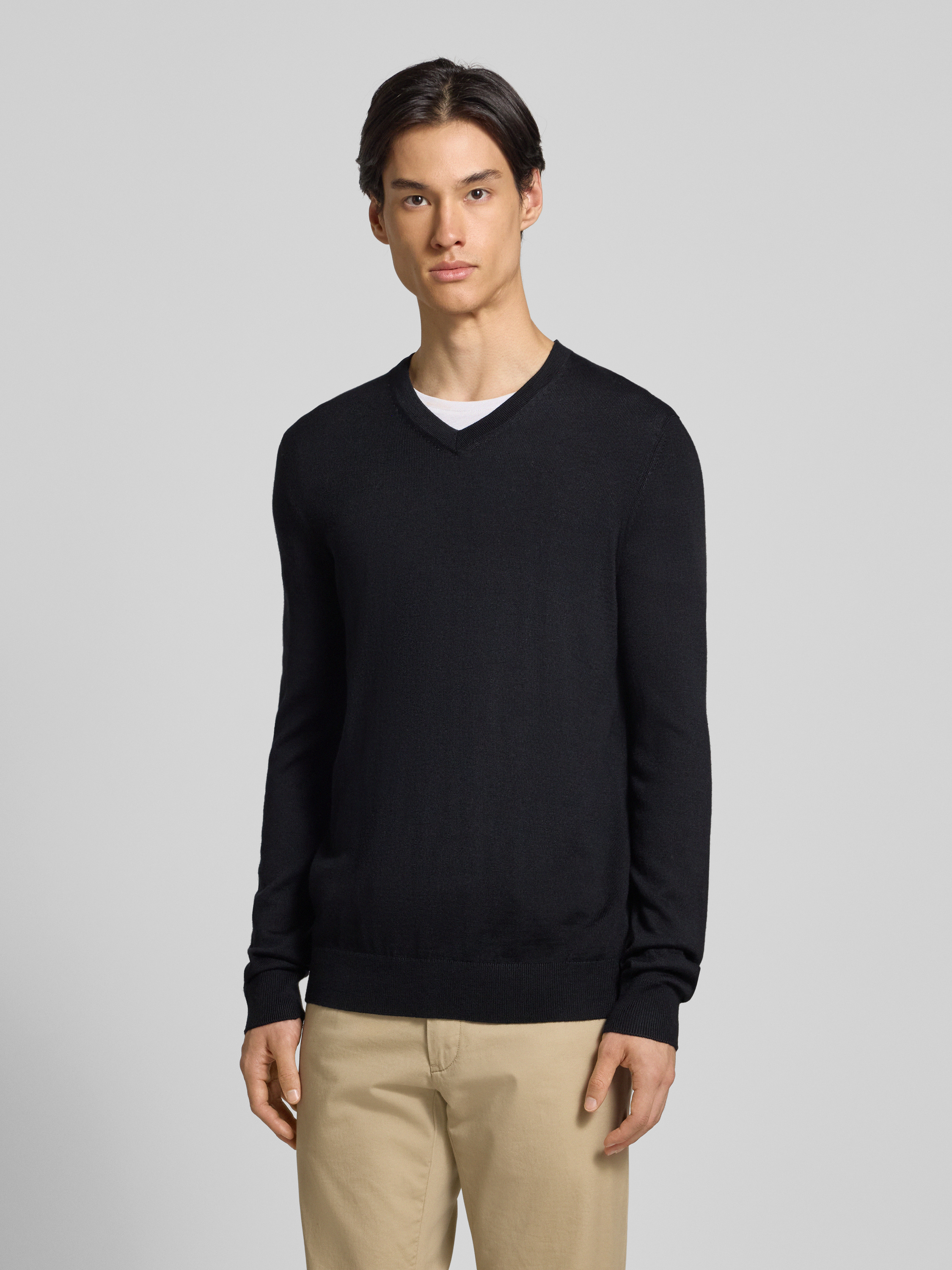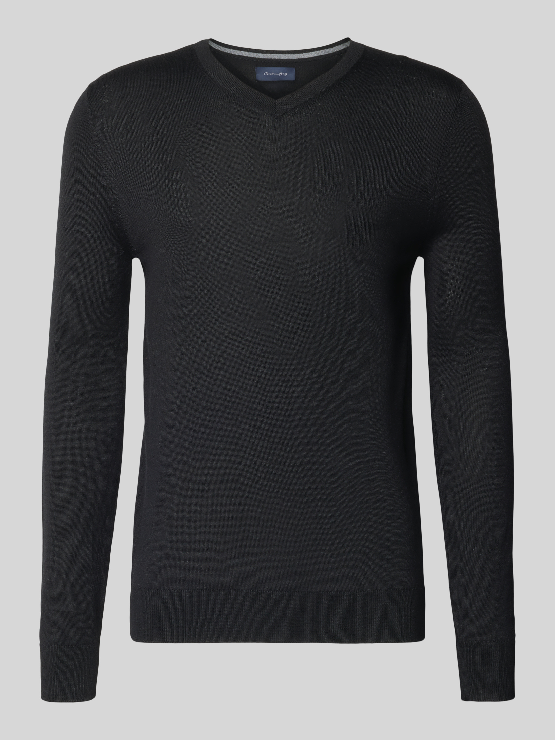 Christian Berg MenStrickpullover aus Merino-Mix mit V-Ausschnitt in black
