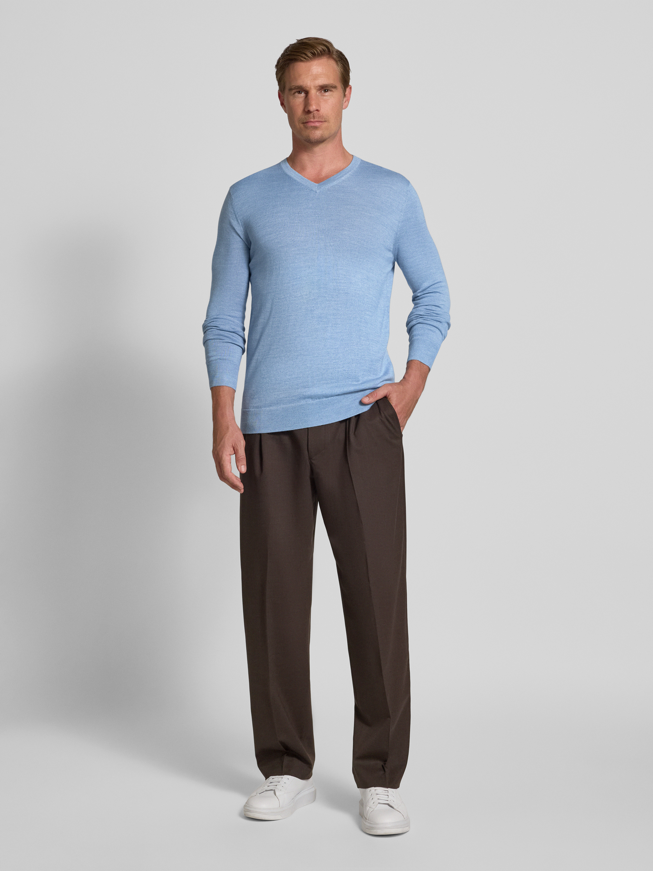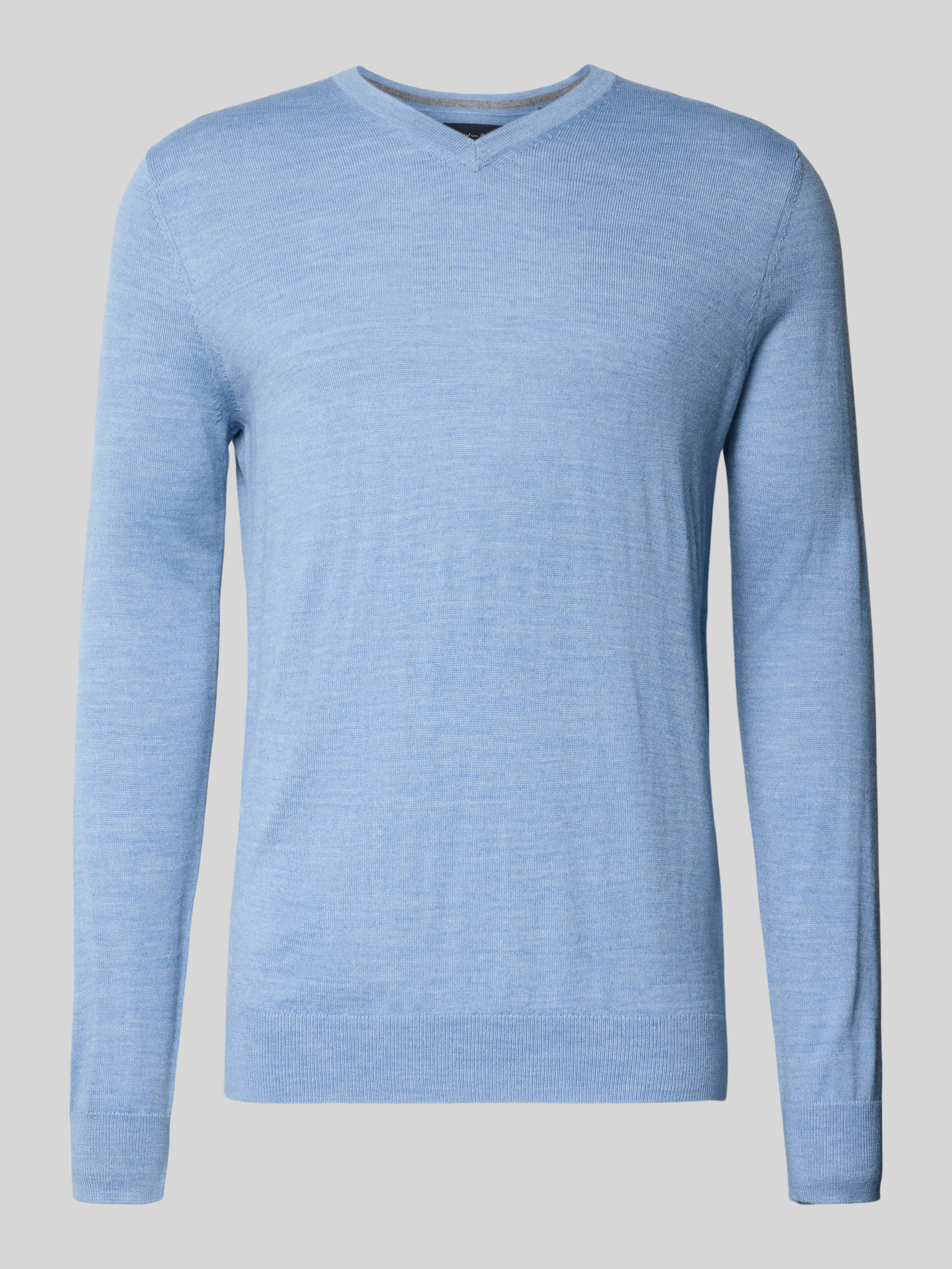 Christian Berg MenStrickpullover aus Merino-Mix mit V-Ausschnitt in hellblau melange