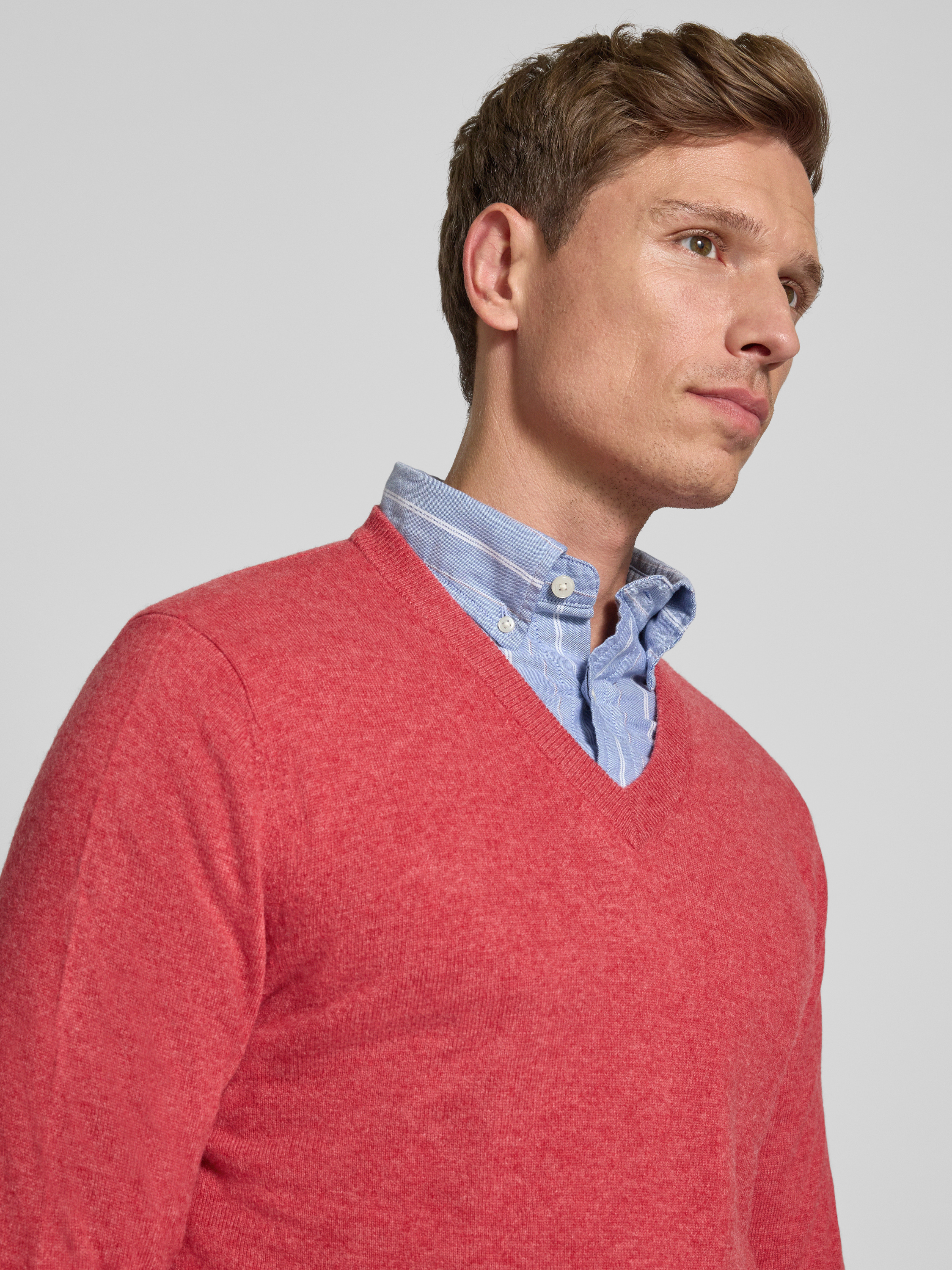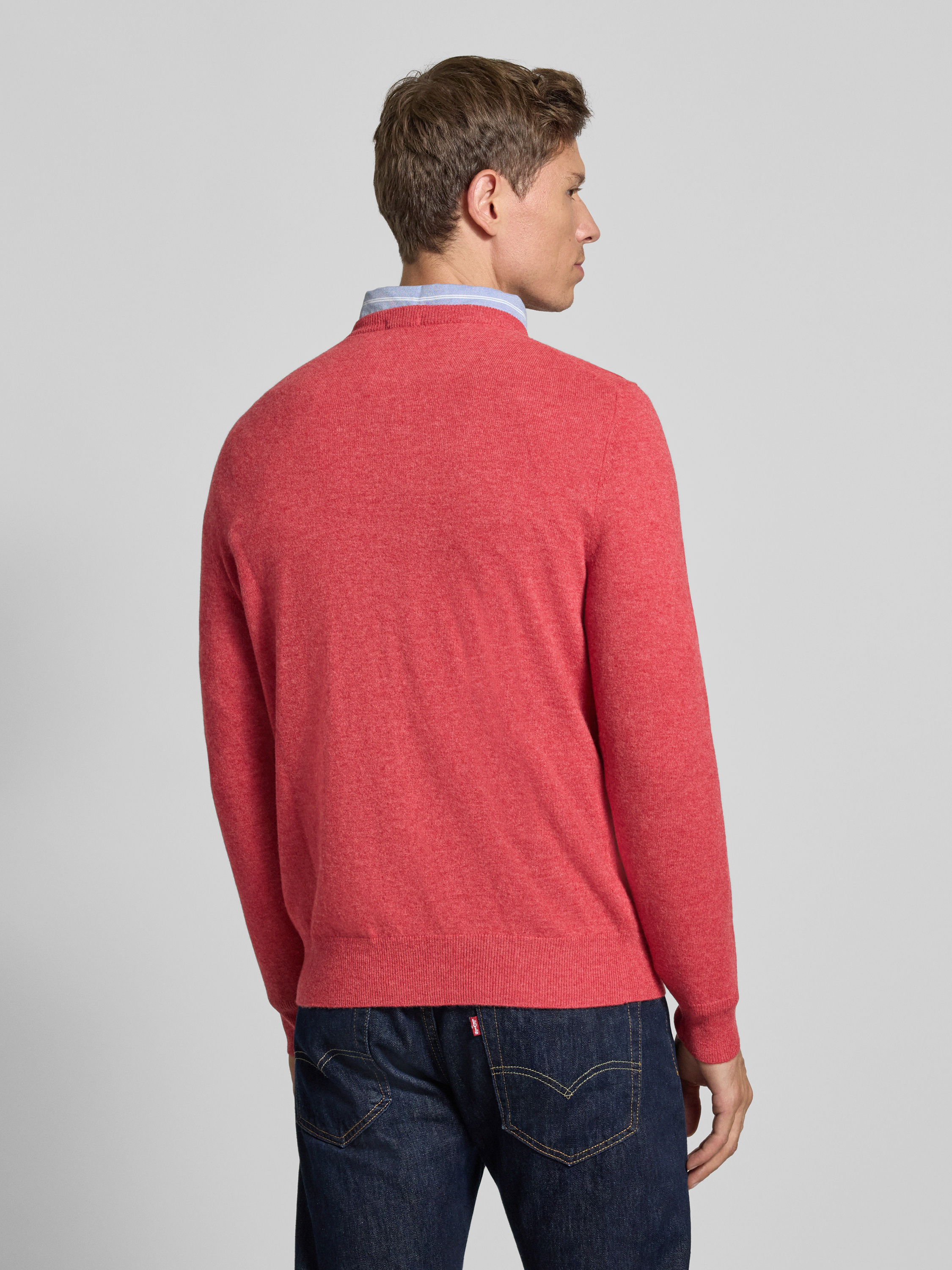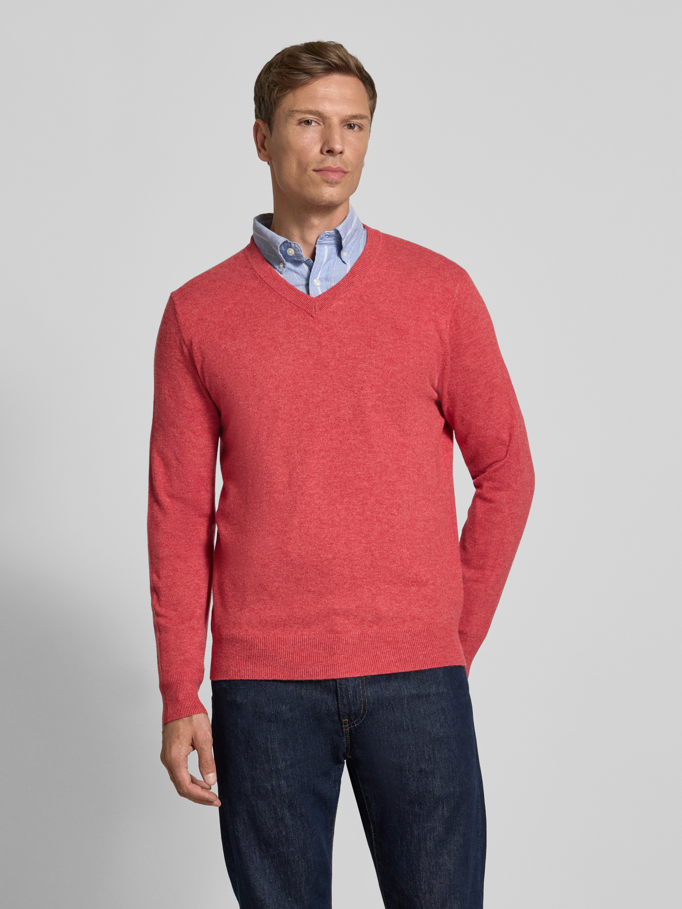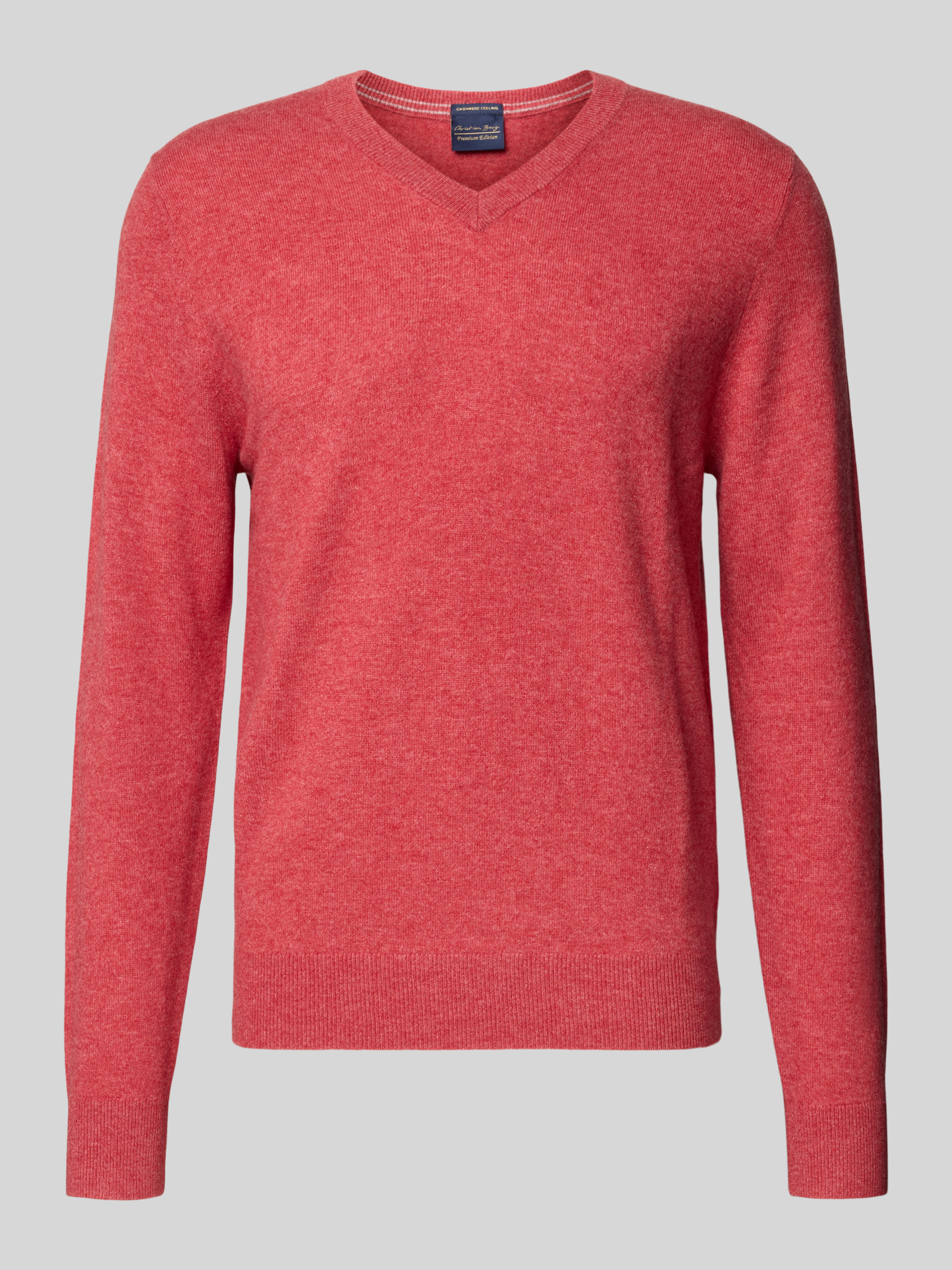 Christian Berg MenStrickpullover aus Wolle-Kaschmir-Mix mit V-Ausschnitt in metallic rosa melange