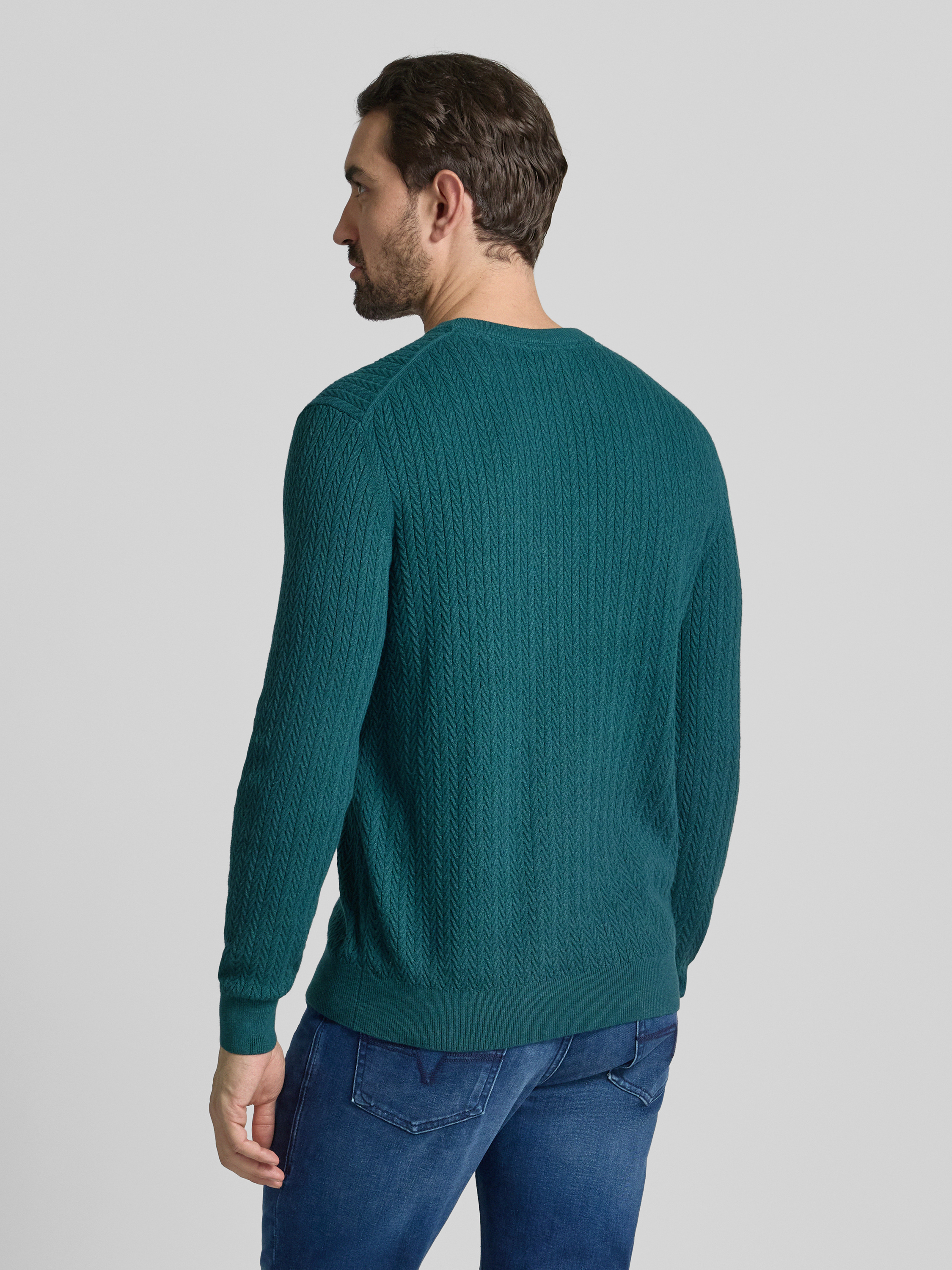 Christian Berg MenStrickpullover mit gerippten Abschlüssen in metallic gruen melange