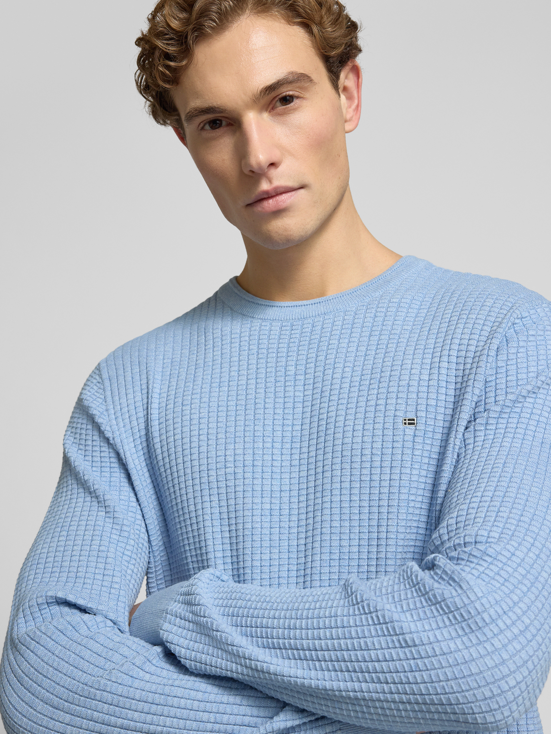 Christian Berg MenStrickpullover mit Label-Detail in hellblau melange