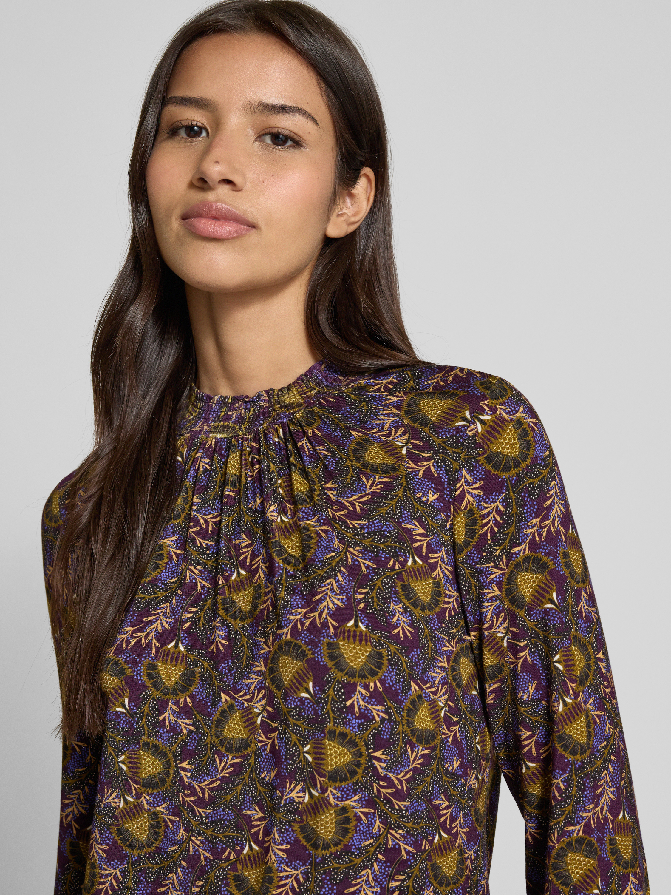 Die Damen Bluse von Christian Berg Woman präsentiert sich mit einer entspannten Passform, die Bewegungsfreiheit ermöglicht und sich angenehm trägt. Durch den Stehkragen erhält das langärmelige Modell eine moderne Note, während der Viskose-Elasthan-Mix für einen geschmeidigen Fall sorgt. So lässt sich das Kleidungsstück vielseitig kombinieren.