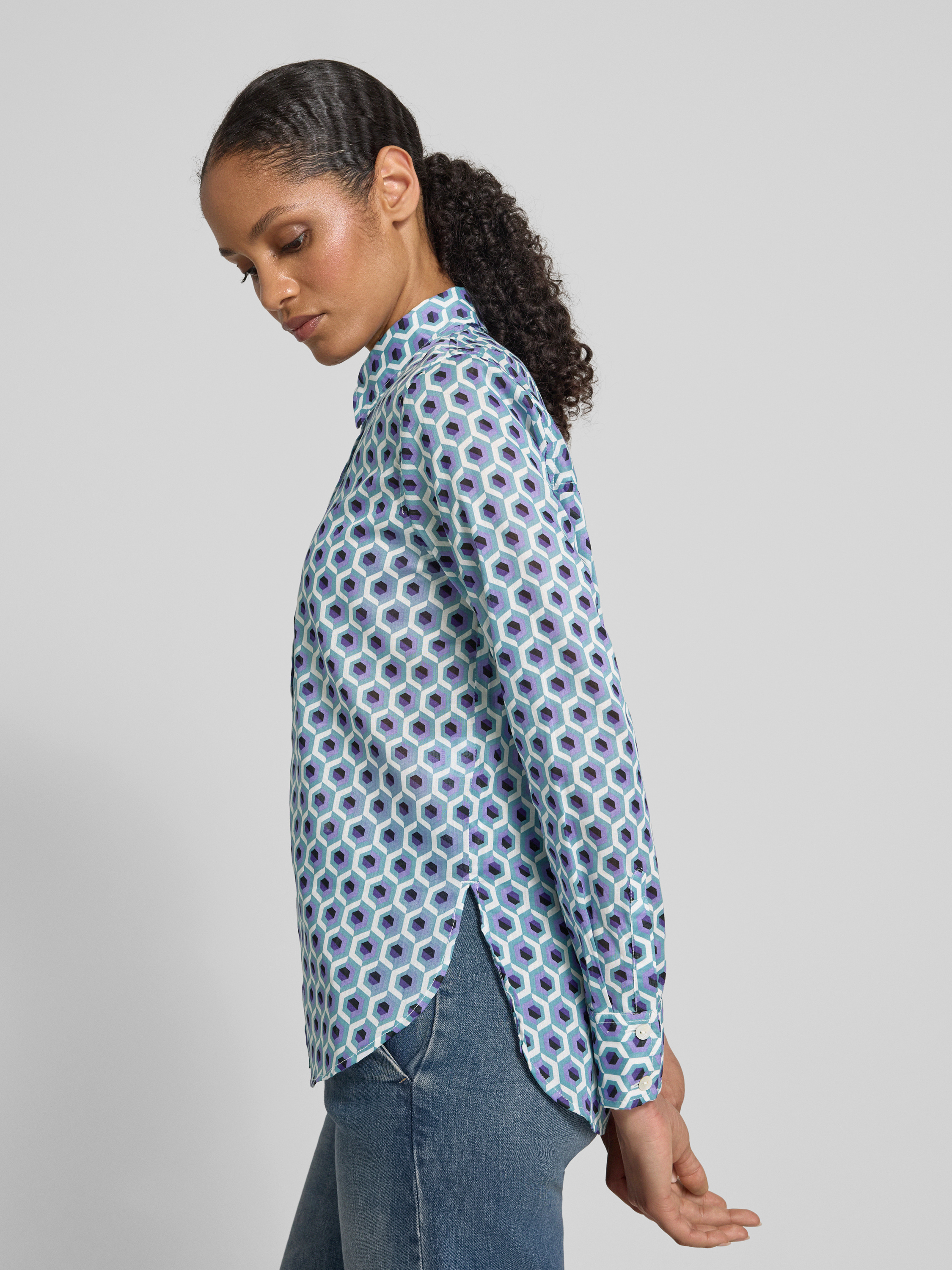 Die Hemdbluse von Christian Berg Woman aus reiner Baumwolle besticht durch ihren lockeren Schnitt und den klassischen Hemdblusenkragen. Der angenehme Tragekomfort eignet sich ideal für entspannte Tage und bietet durch die hochwertige Verarbeitung eine langlebige Begleitung im Alltag. Die Knopfleiste rundet das dezente Design ab.