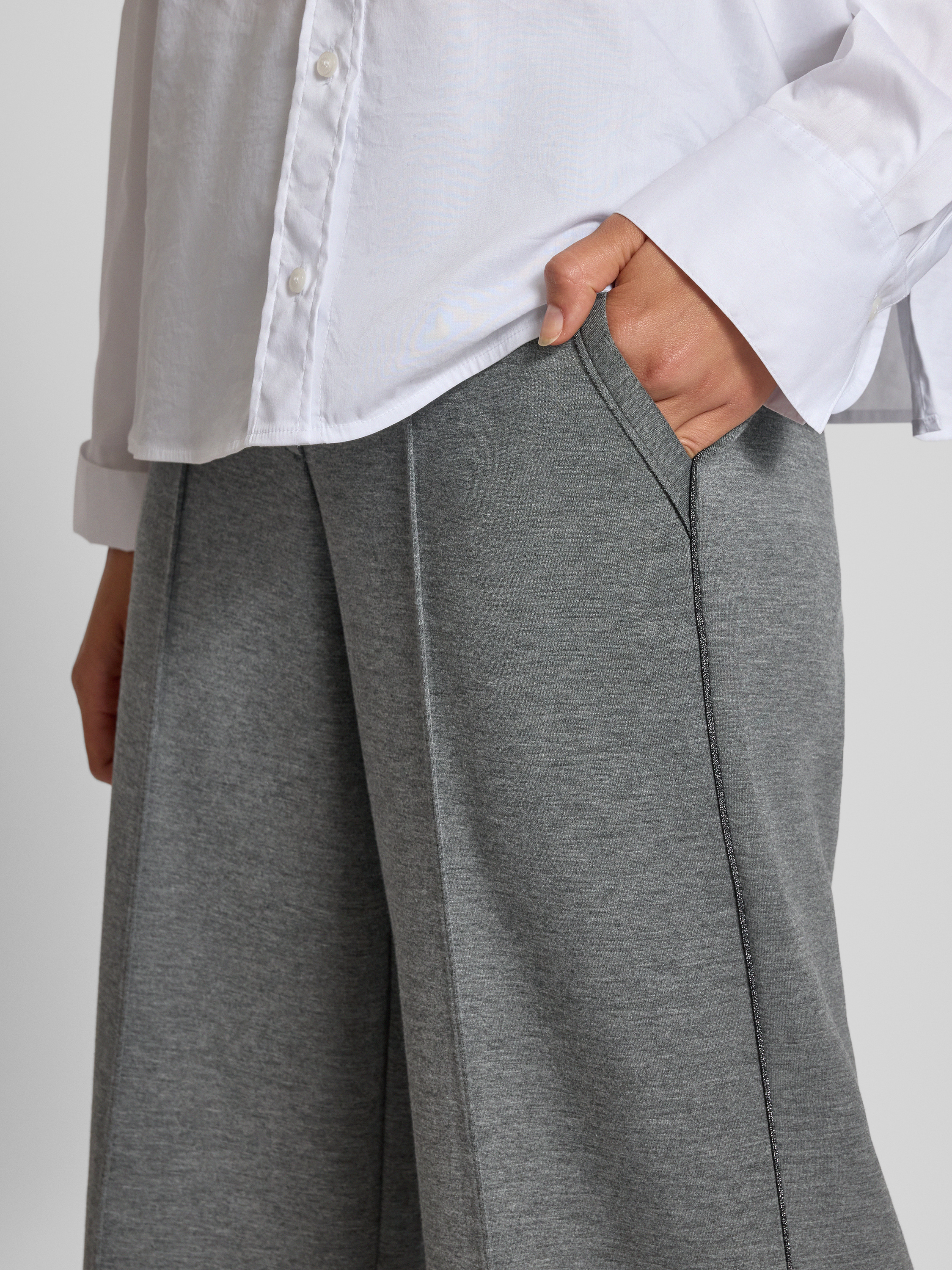 Christian Berg WomanHose mit weitem Bein und Längsnähten in anthrazit melange