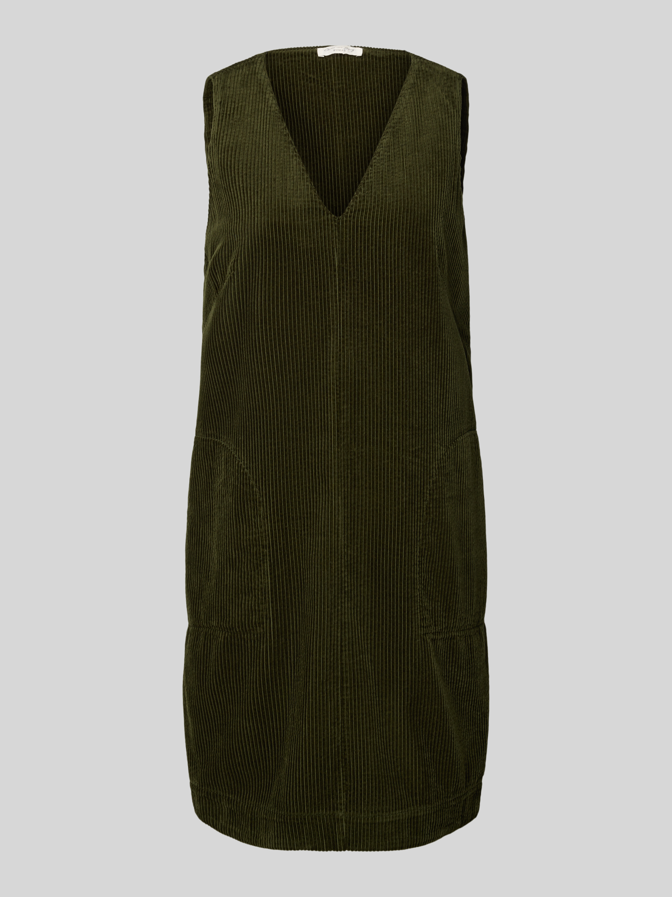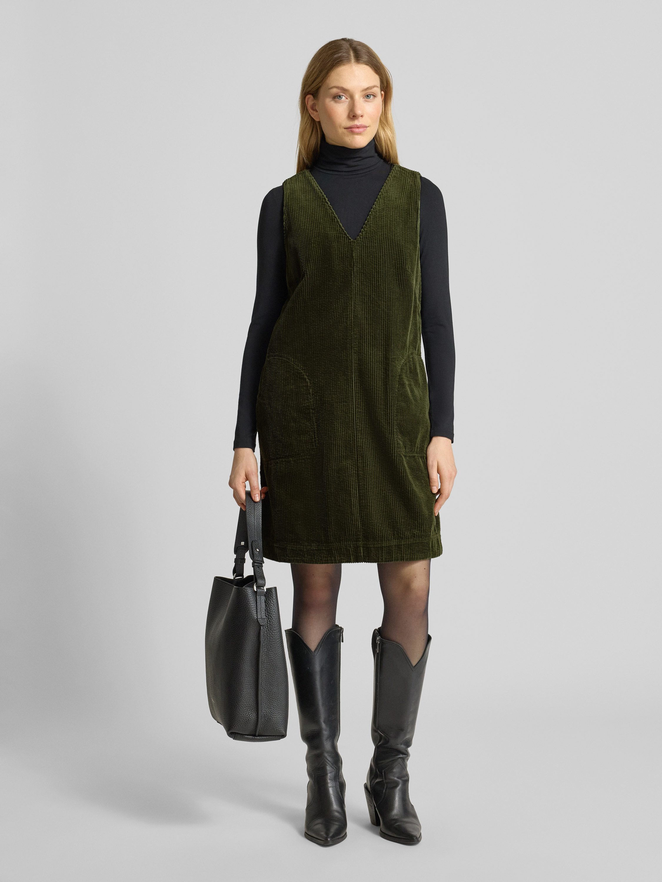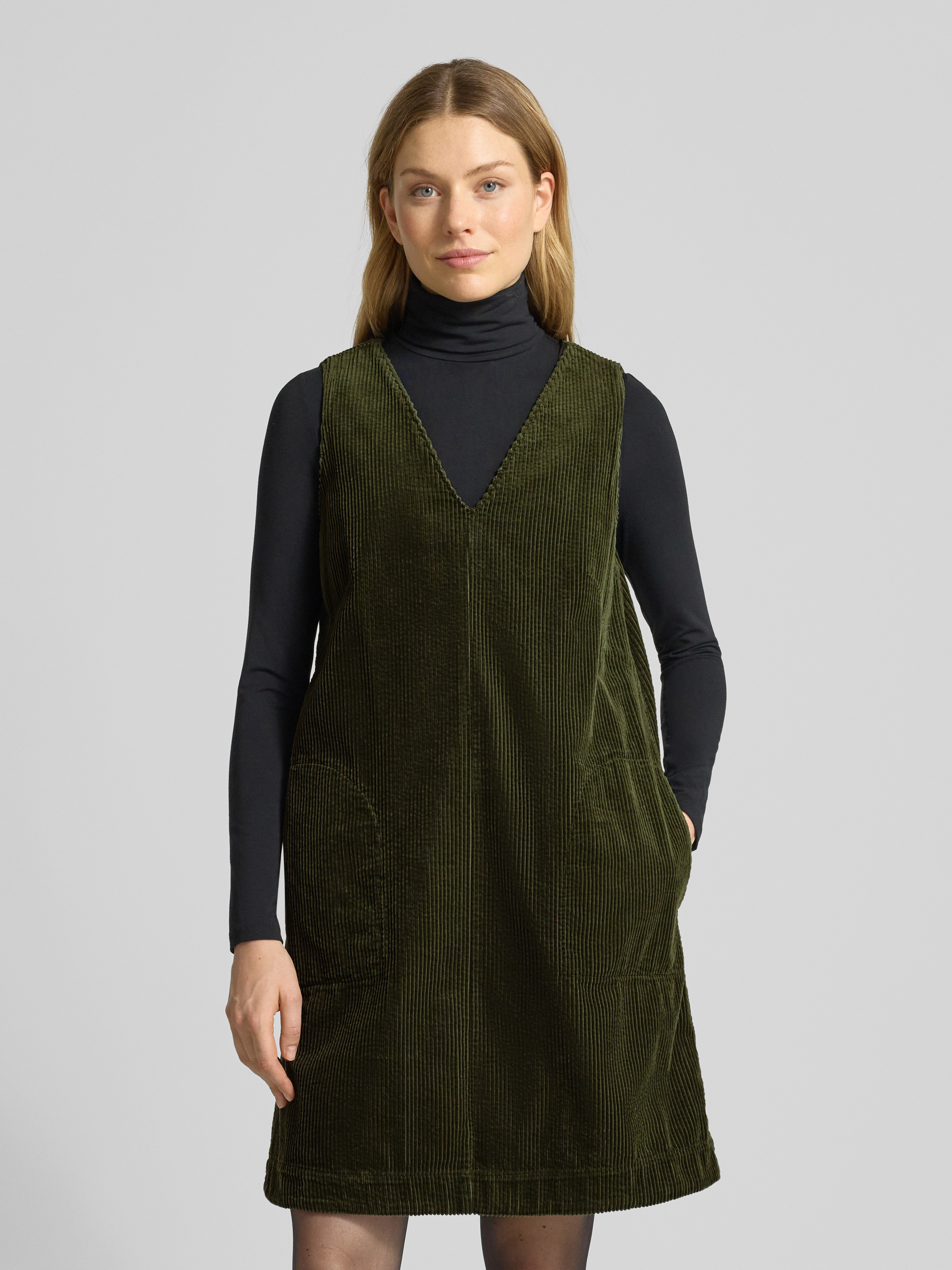 Christian Berg WomanKnielanges Kleid aus Cord mit V-Ausschnitt in dunkelgruen