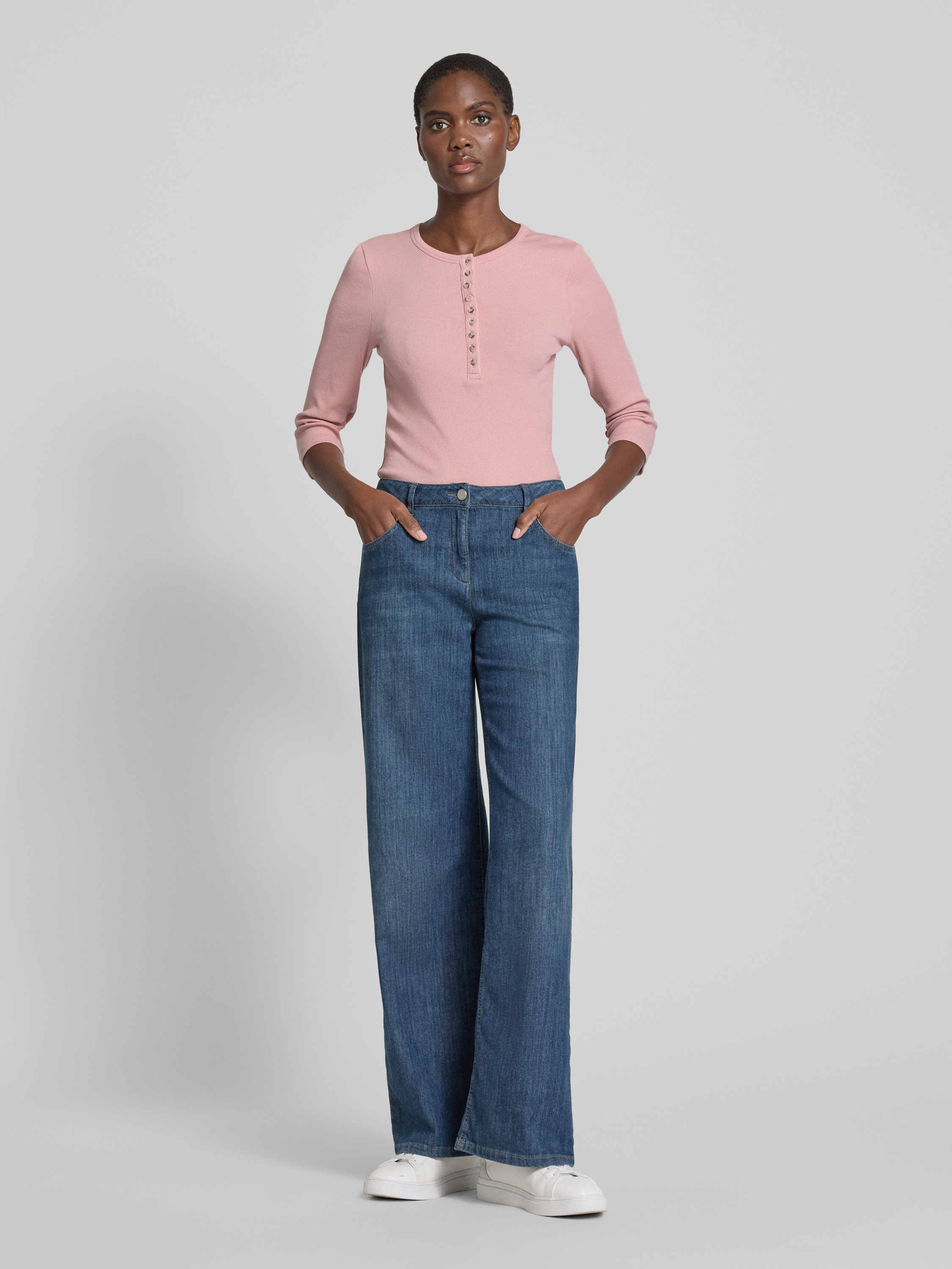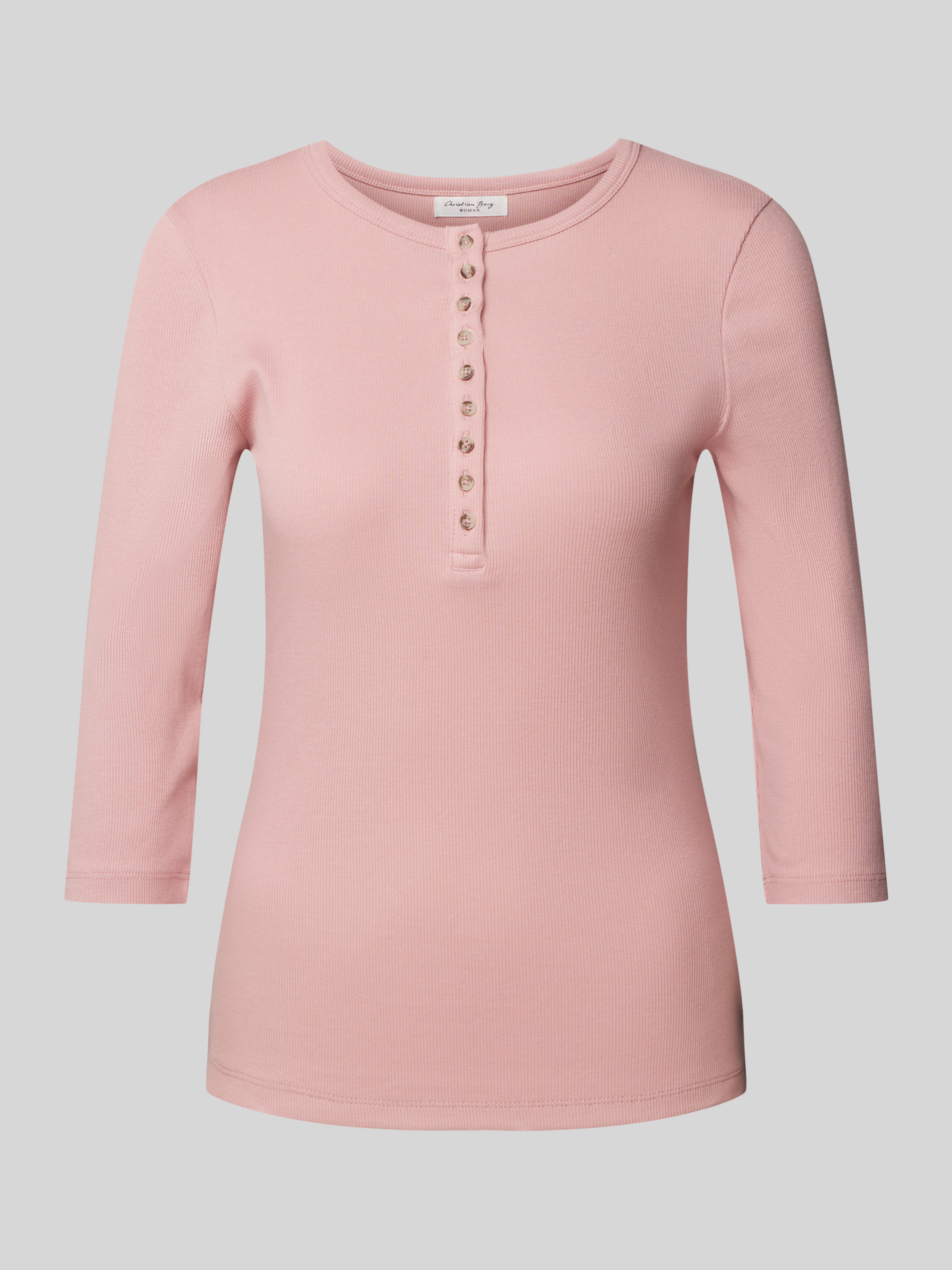Das Damen Longsleeve von Christian Berg Woman kombiniert einen Baumwoll-Elasthan-Mix mit einem gerippten Rundhalsausschnitt für einen bequemen Tragekomfort. Dank des Regular Fit und der 3/4-Ärmel eignet es sich ideal für vielseitige Looks. Die kurze Knopfleiste rundet das Design stilvoll ab.