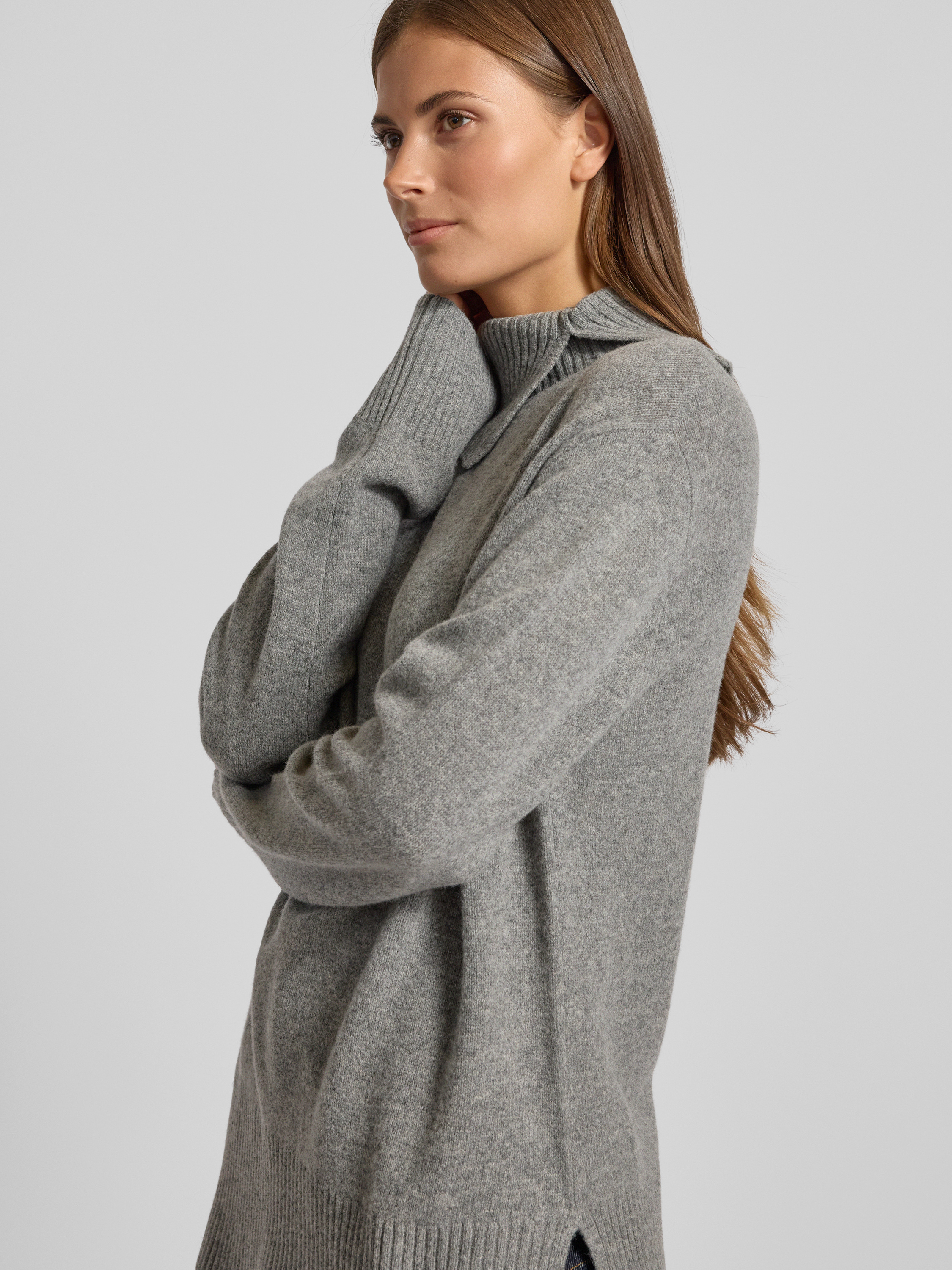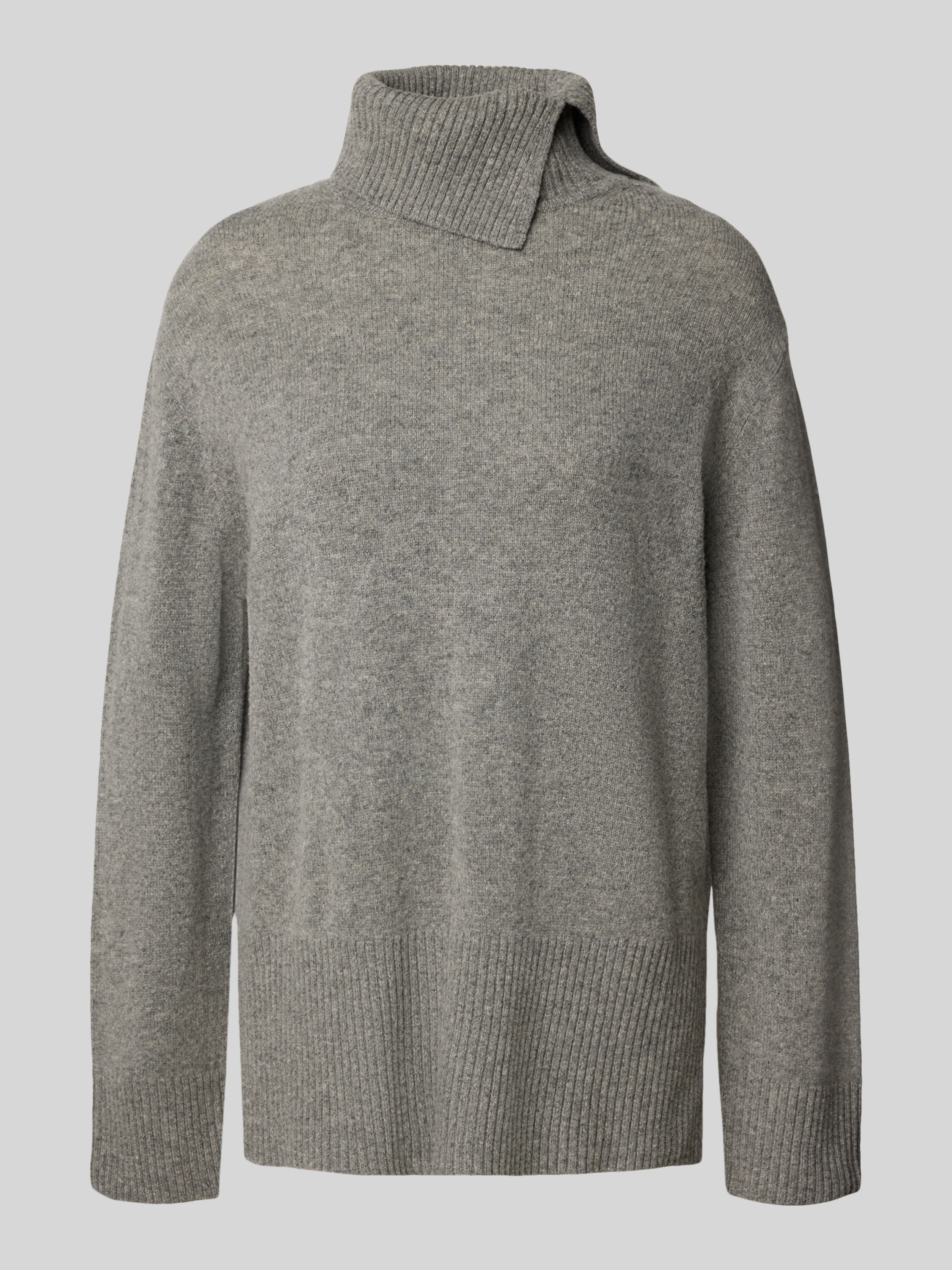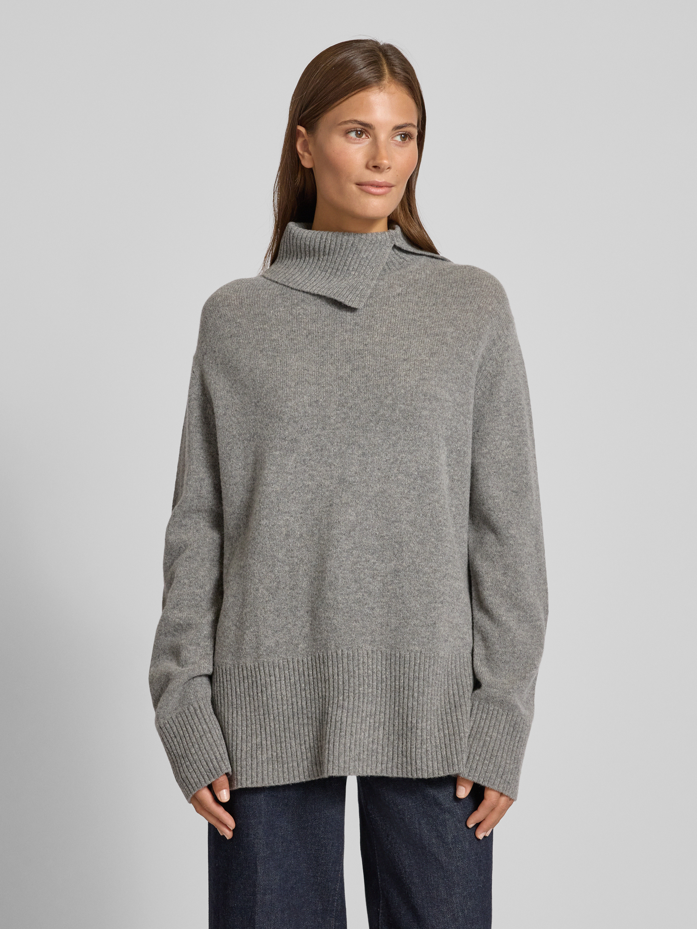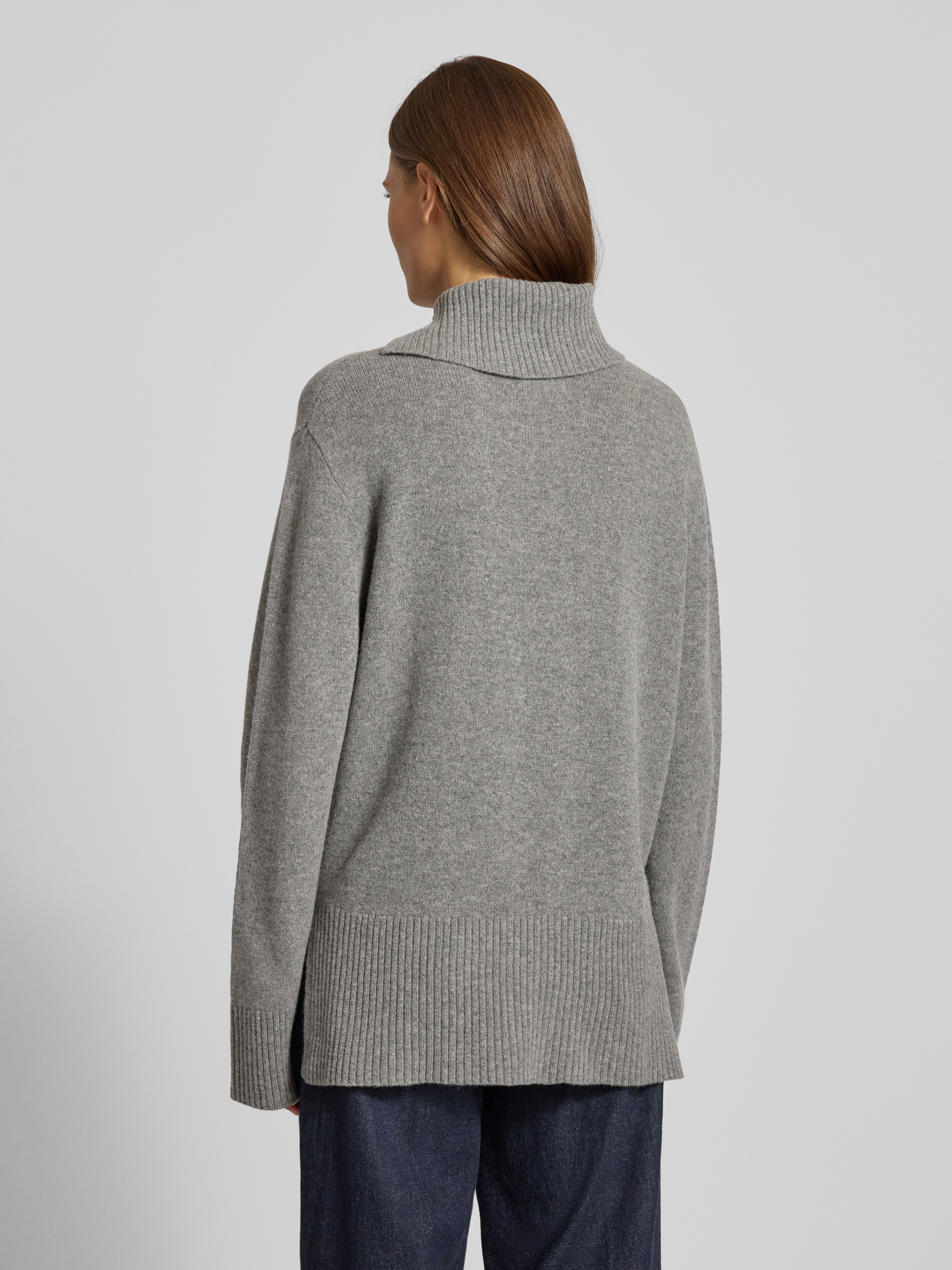 Christian Berg WomanStrickpullover aus Lanawolle mit Rollkragen und Seitenschlitzen in mittelgrau melange