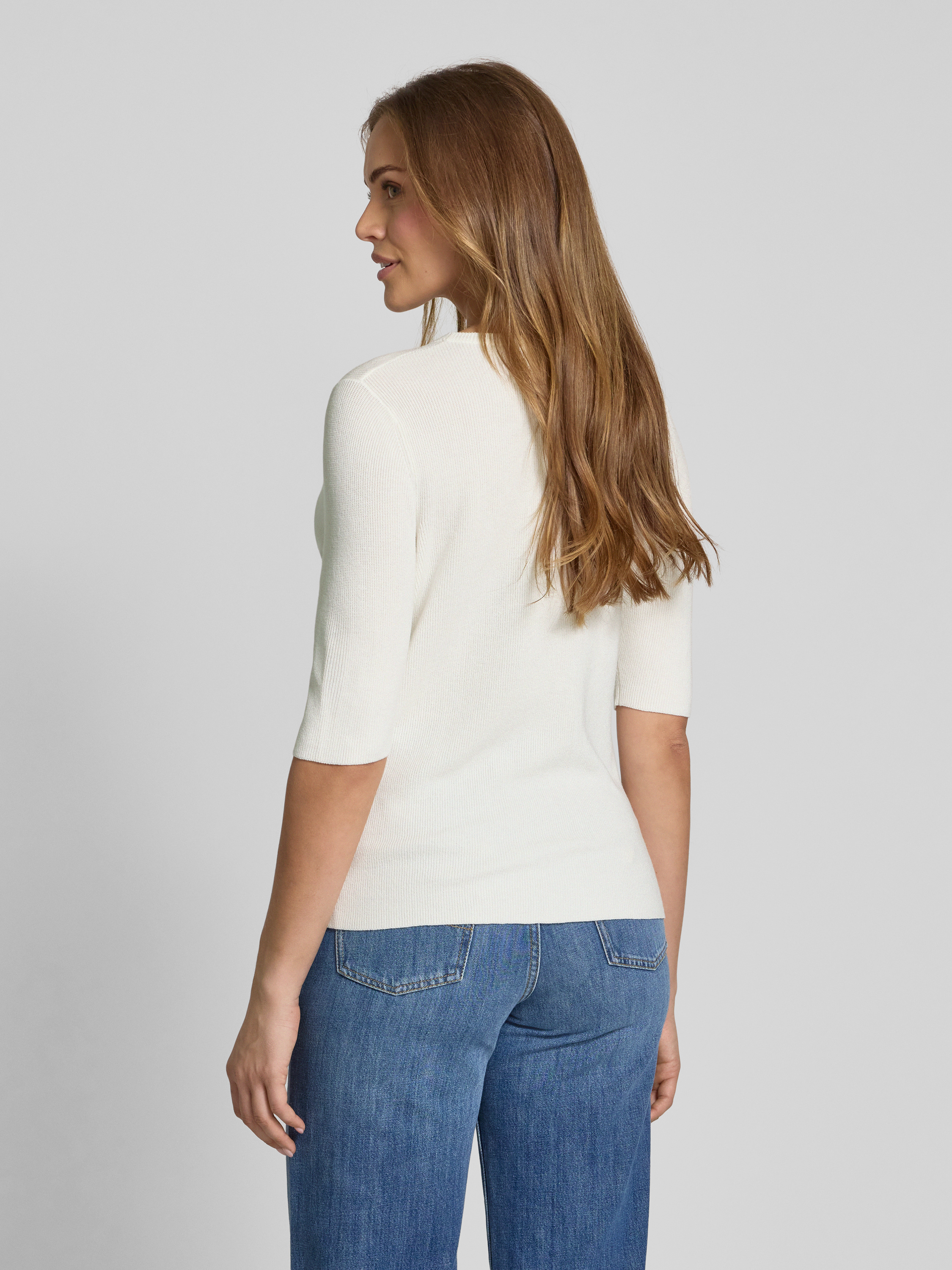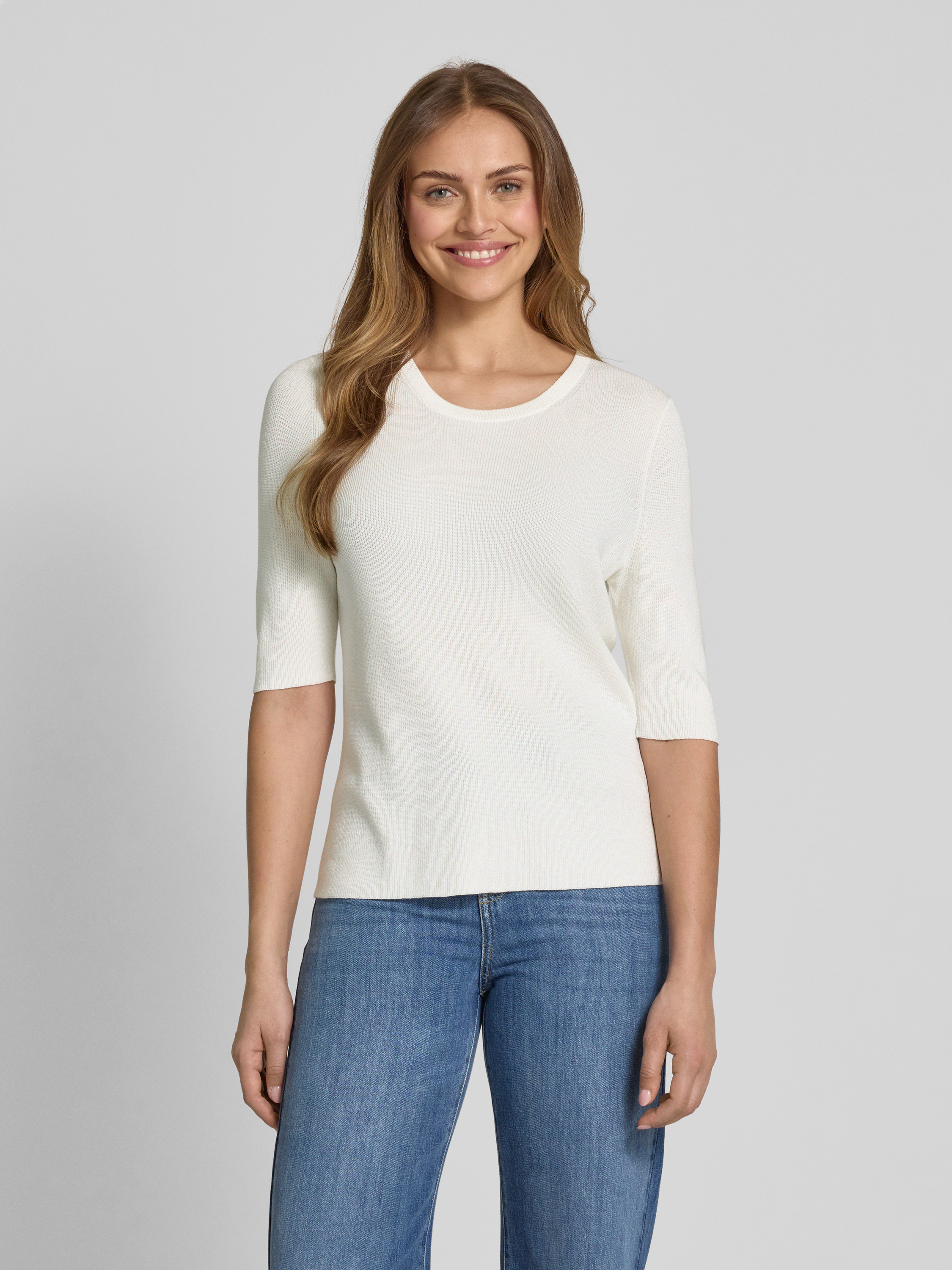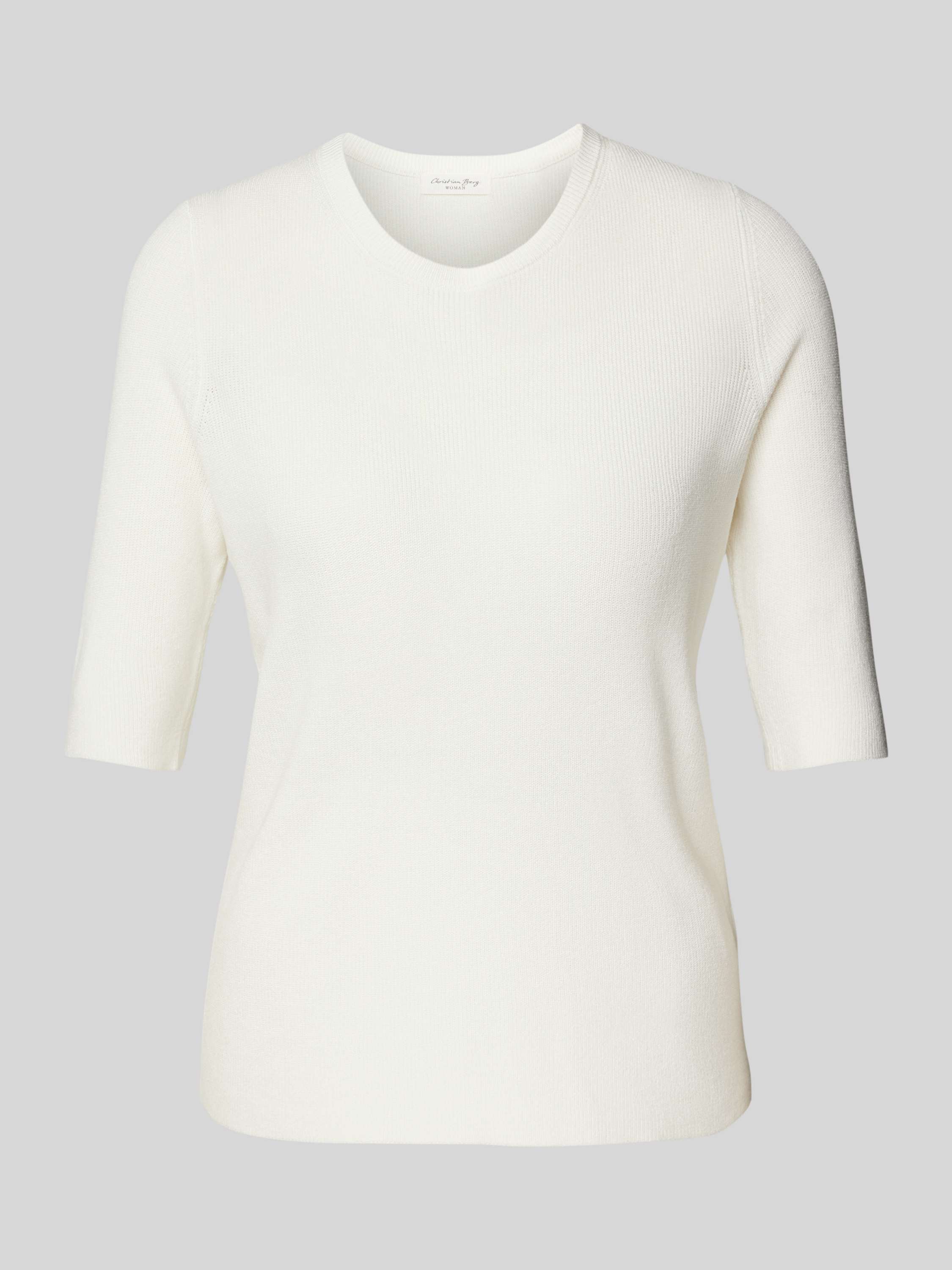 Christian Berg WomanStrickpullover mit geripptem Rundhalsausschnitt in offwhite