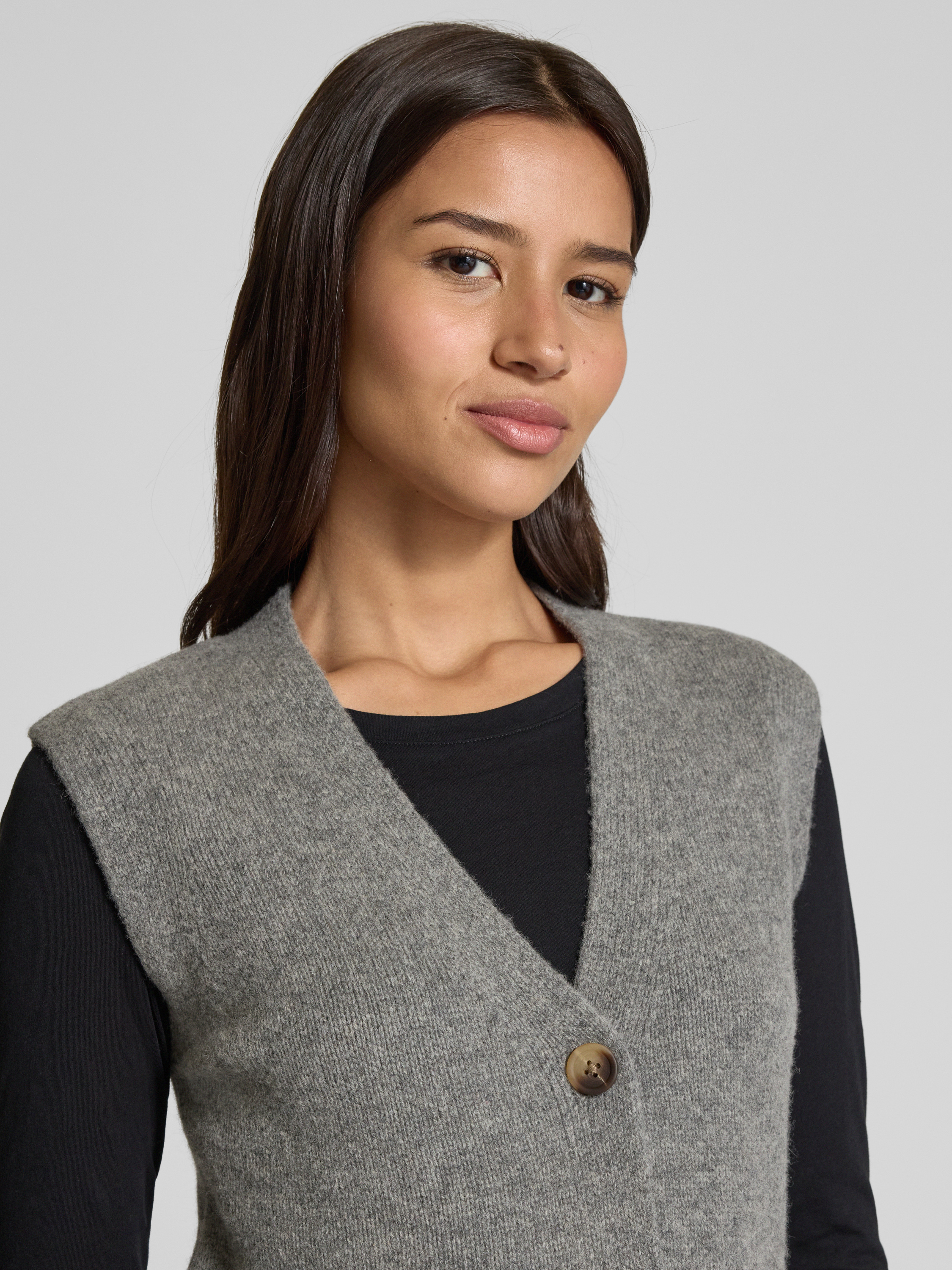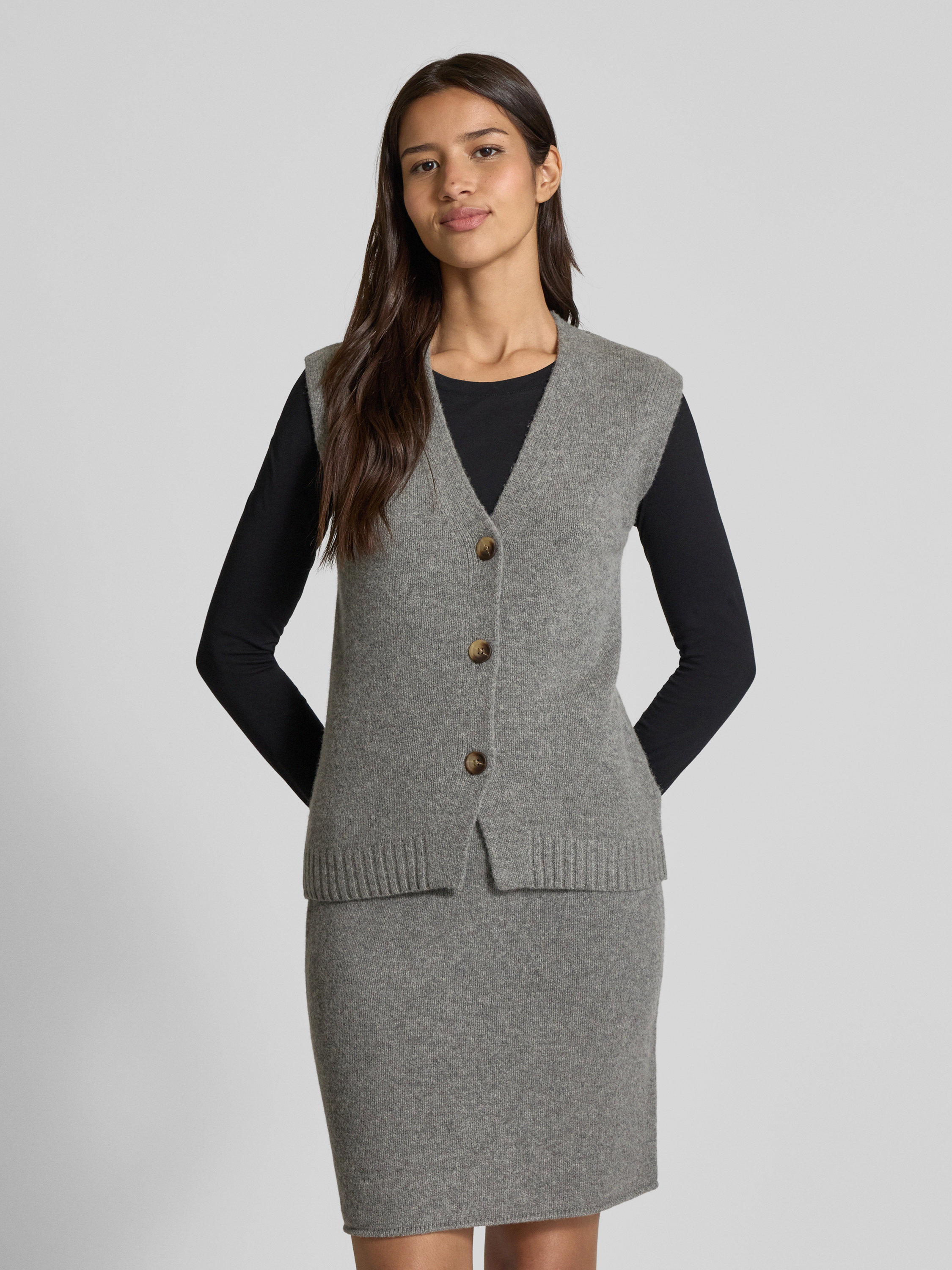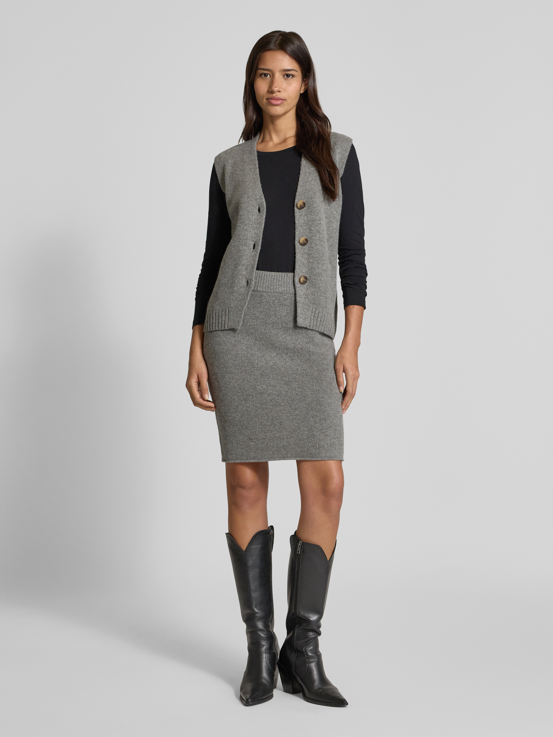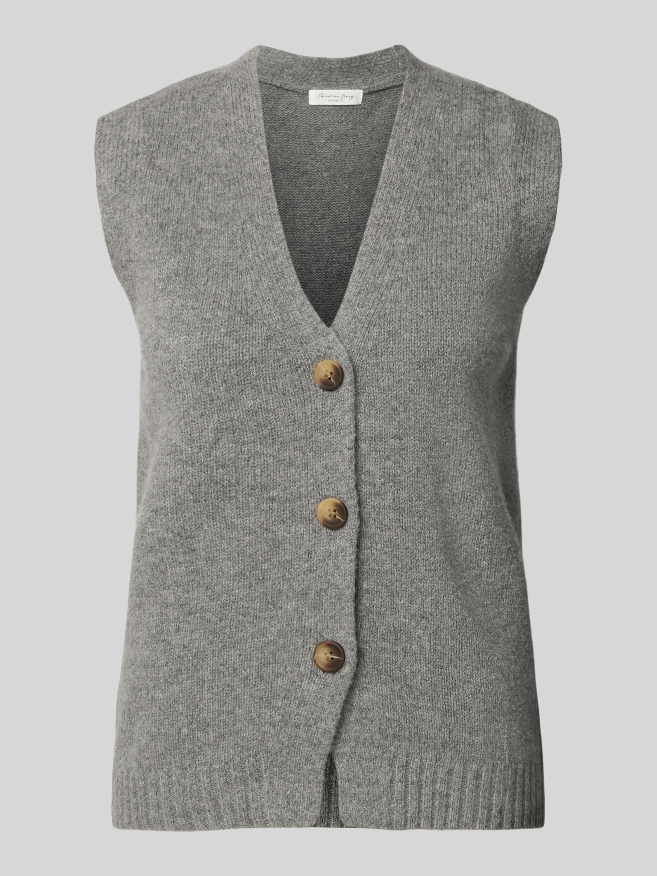 Christian Berg WomanStrickweste aus Wolle mit V-Ausschnitt in mittelgrau melange
