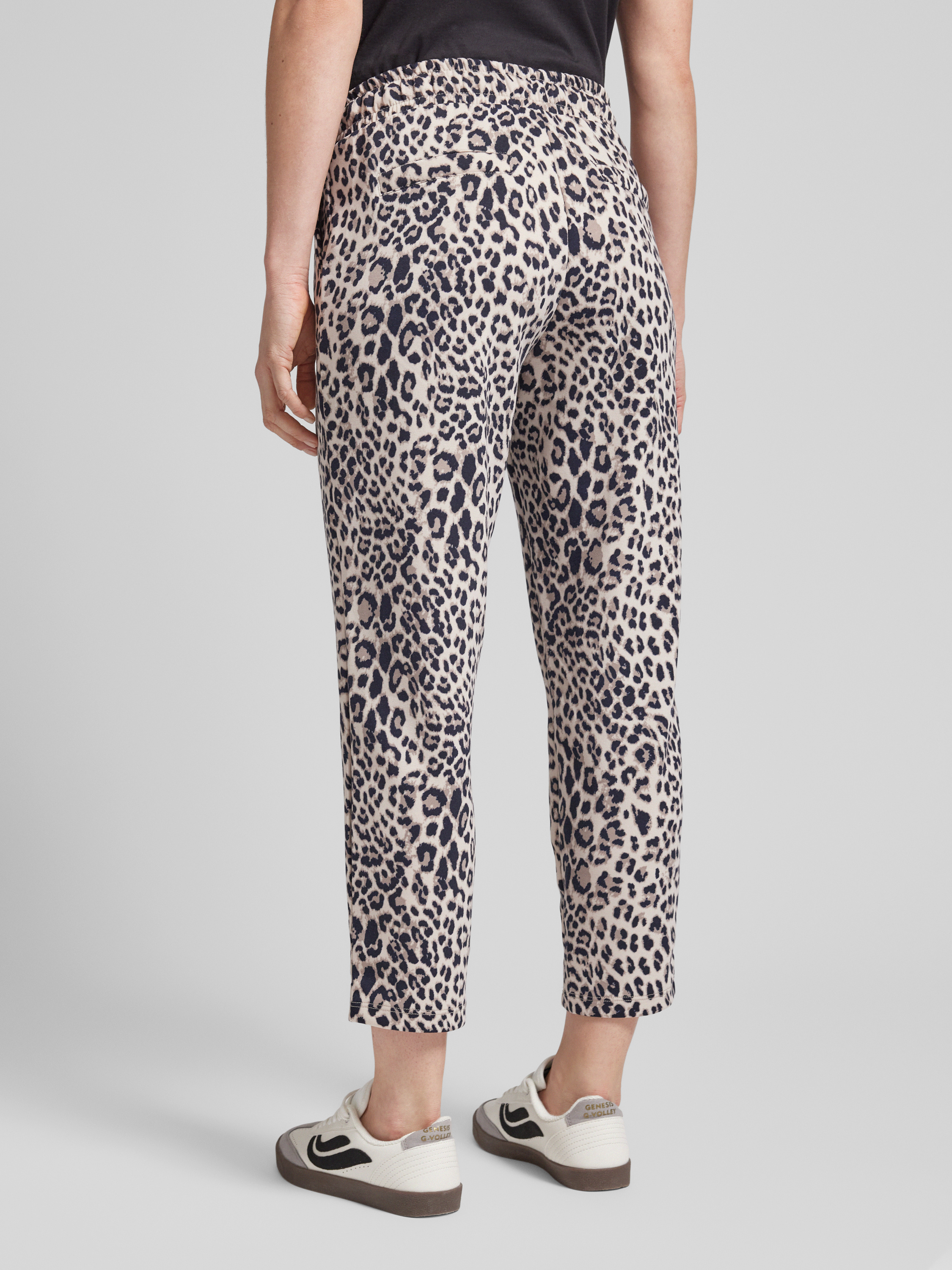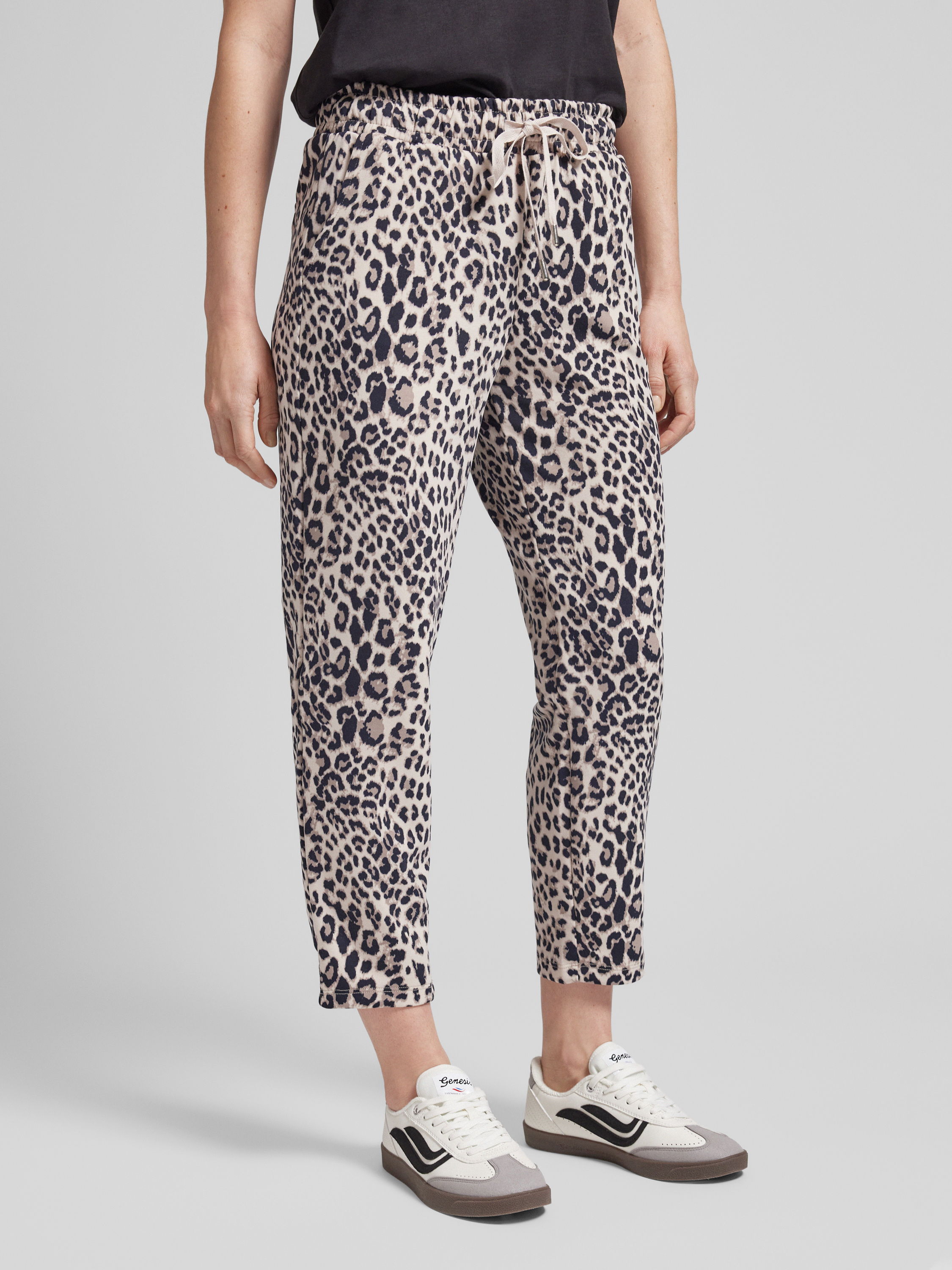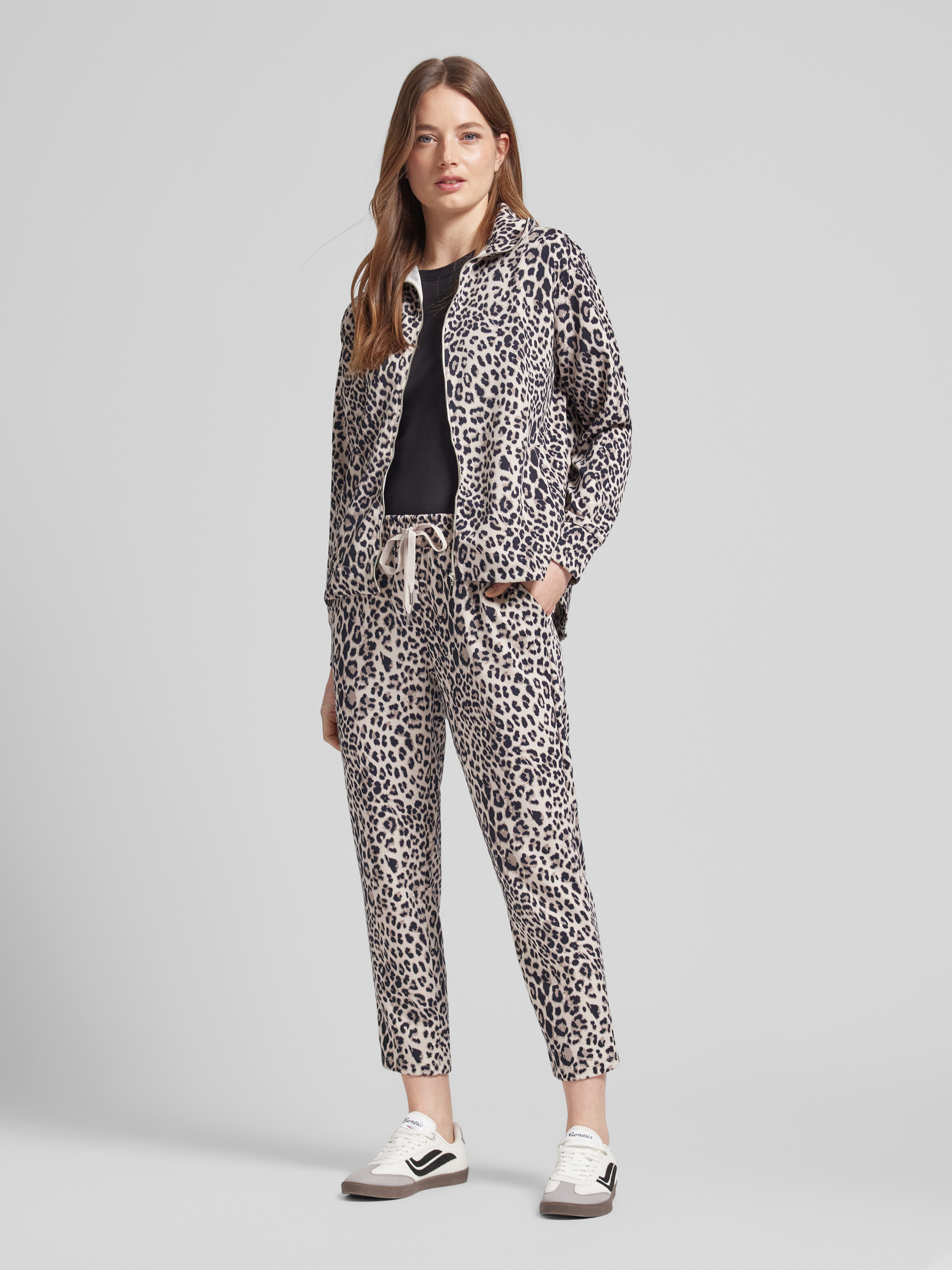 Die Christian Berg Woman Sweatpants mit Animal-Print vereinen Komfort und Stil durch ihren lässigen Loose Fit und den flexiblen Material-Mix mit Stretch-Anteil. Der elastische Bund mit Tunnelzug sorgt für eine angenehme Passform, während praktische Eingriff- und Gesäßtaschen zusätzlichen Komfort bieten. Ideal für entspannte Freizeitaktivitäten.