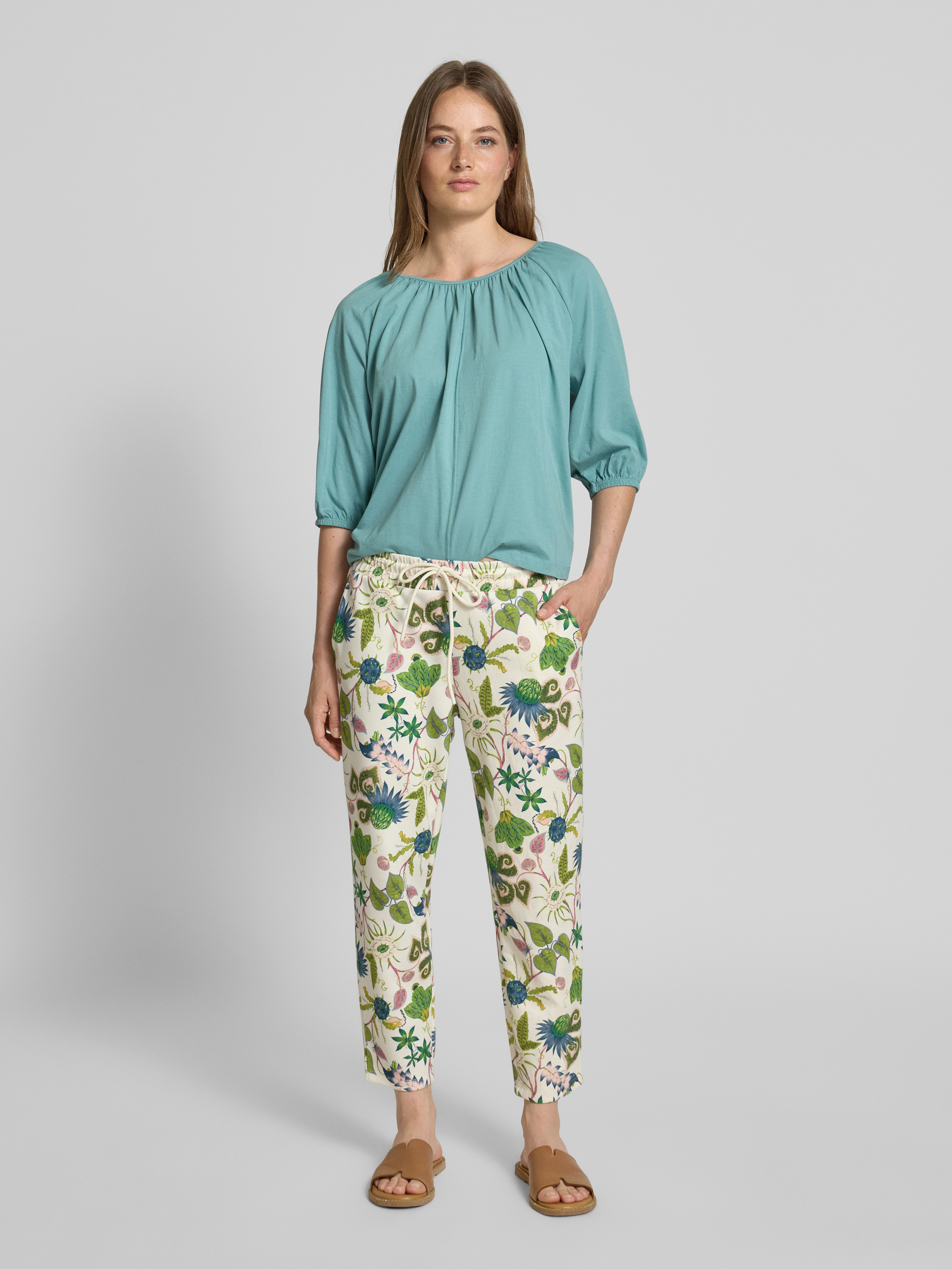 Die Sweatpants von Christian Berg Woman vereinen stilvolle Lässigkeit mit hohem Tragekomfort. Der Viskose-Mix mit Stretch-Anteil sorgt für Bewegungsfreiheit, während die verkürzte Passform und der elastische Bund mit Tunnelzug eine entspannte Silhouette schaffen. Der Allover-Look verleiht den Hosen einen modernen Touch.