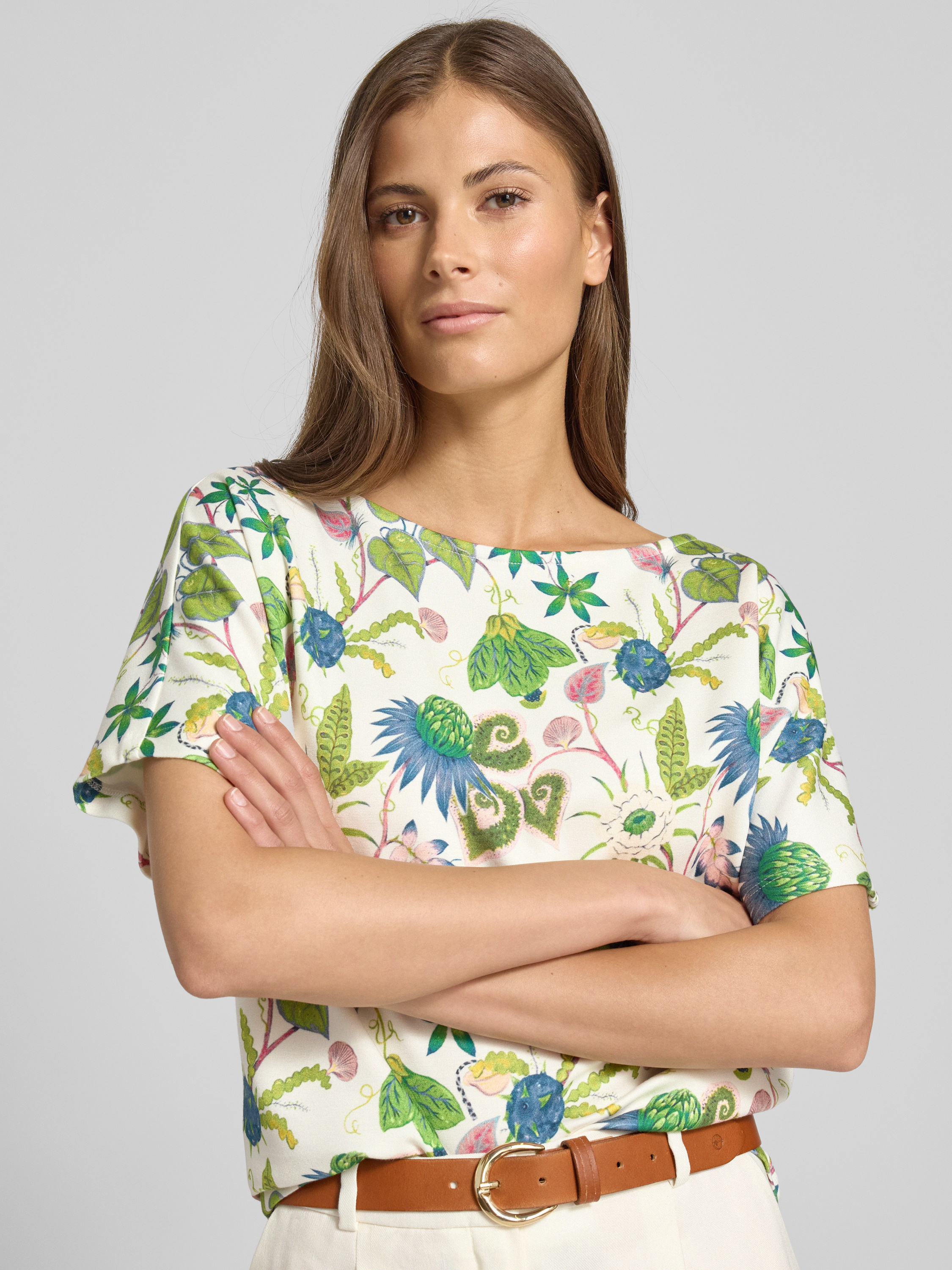 Das Sweatshirt von Christian Berg Woman vereint Komfort und Stil durch einen lässigen Schnitt und einen angenehmen Viskose-Mix mit Stretch-Anteil. Der Rundhalsausschnitt und das kurzärmelige Design machen es vielseitig kombinierbar, ideal für entspannte Tage oder zwanglose Anlässe. Ein Kleidungsstück, das sich mühelos anpasst.