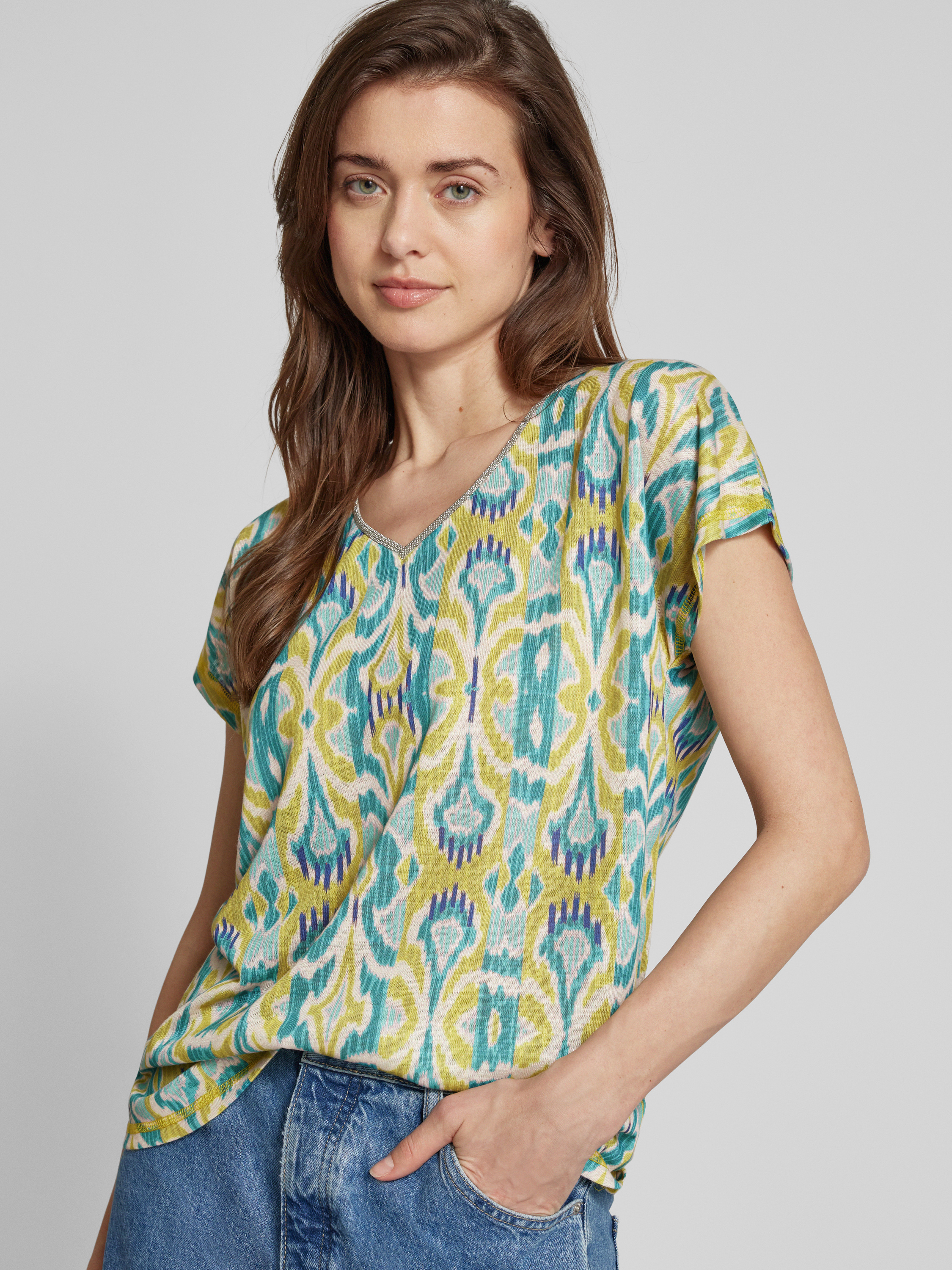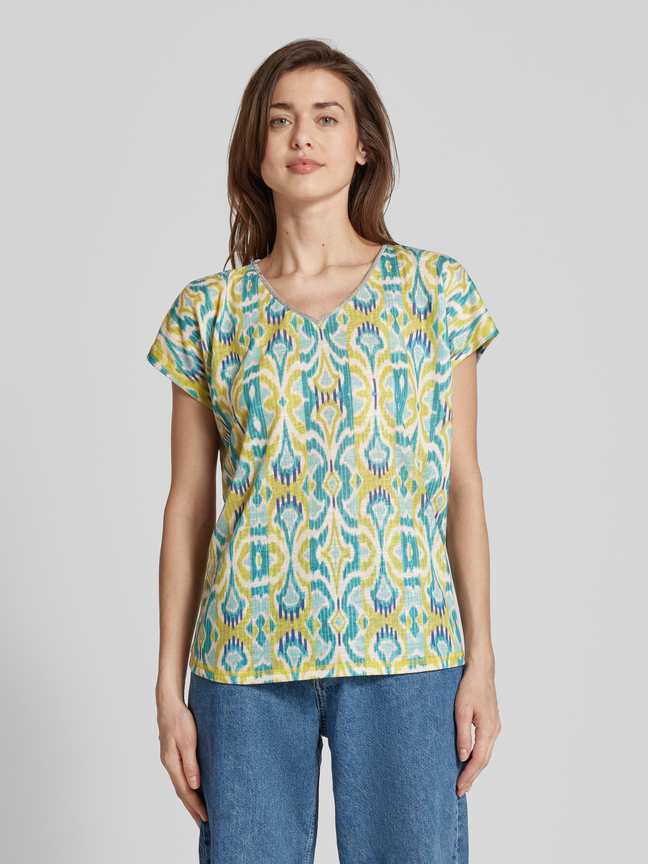 Christian Berg WomanT-Shirt mit Allover-Muster und V-Ausschnitt in apfel