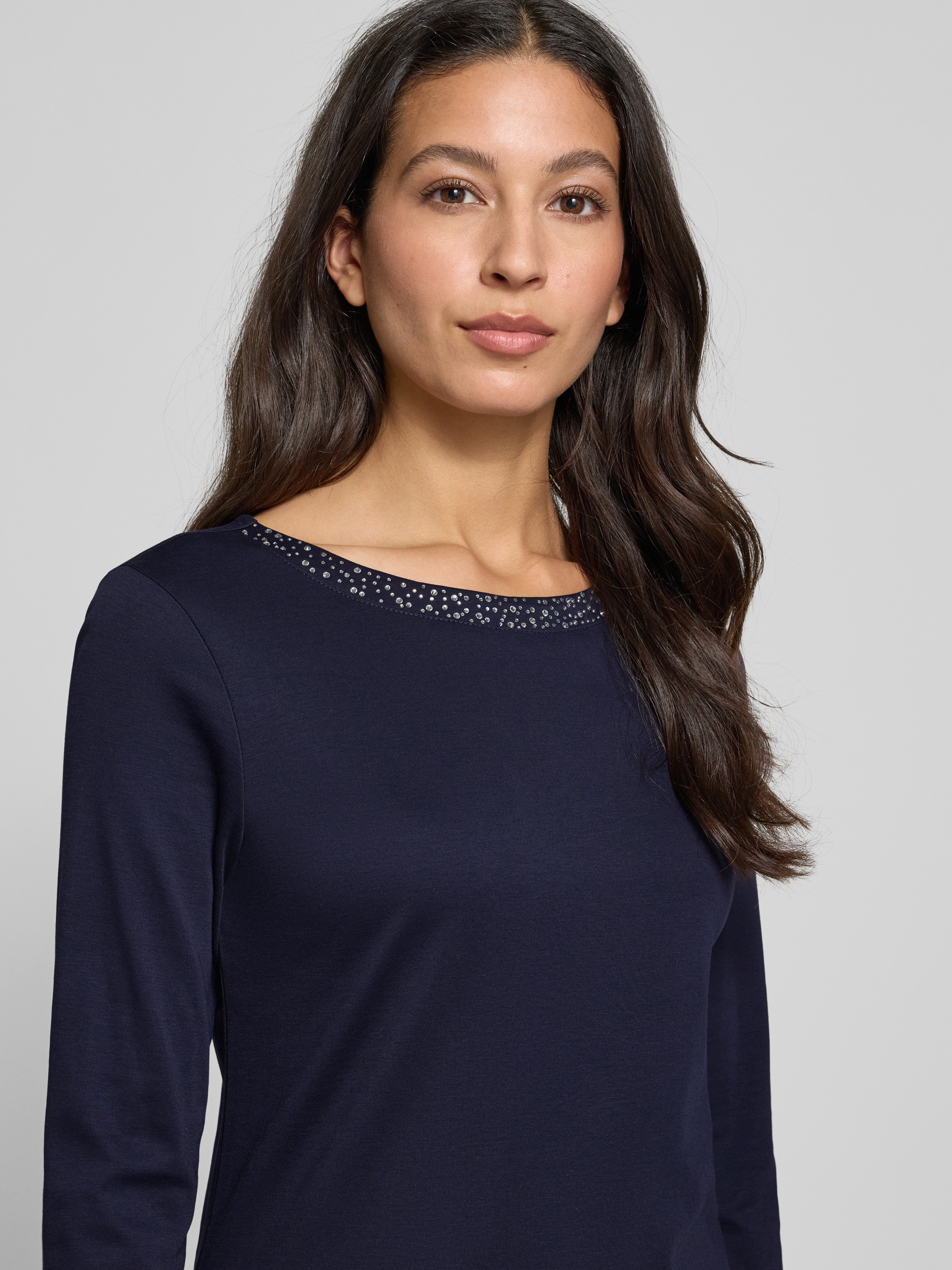 Christian Berg WomanT-Shirt mit Ziersteinbesatz und 3/4-Arm in dunkelblau