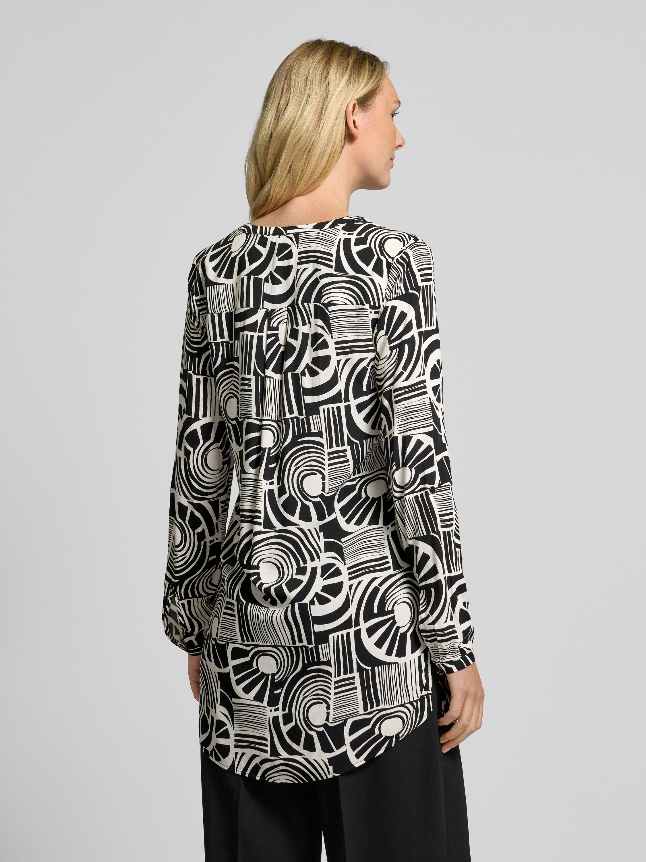 Die Tunika von Christian Berg Woman aus reiner Viskose kombiniert einen geraden Schnitt mit einem klassischen Tunikakragen. Durch die Seitenschlitze wird Bewegungsfreiheit gewährleistet, während das leichte Material für ein angenehmes Tragegefühl sorgt. Diese Tunika eignet sich ideal für legere und stilvolle Outfits.