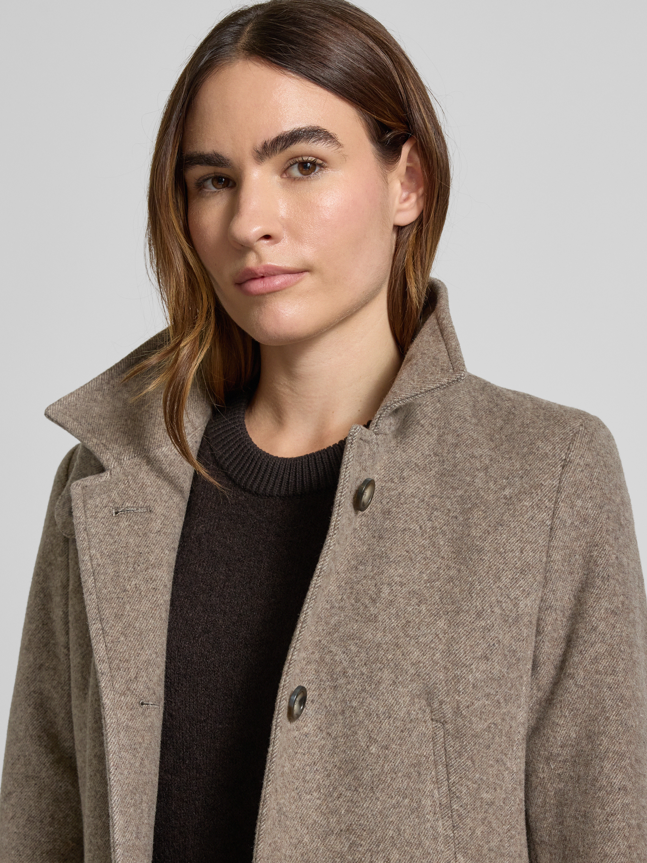 Der Mantel mit Stehkragen von Cinque, Modell 'Astrella', fällt durch seinen taillierten Schnitt angenehm auf und sorgt für eine elegante Silhouette. Der Baumwoll-Mix liegt weich auf der Haut, während Paspeltaschen praktische Details für den Alltag bereithalten. So eignet sich das Modell für verschiedenste Anlässe.