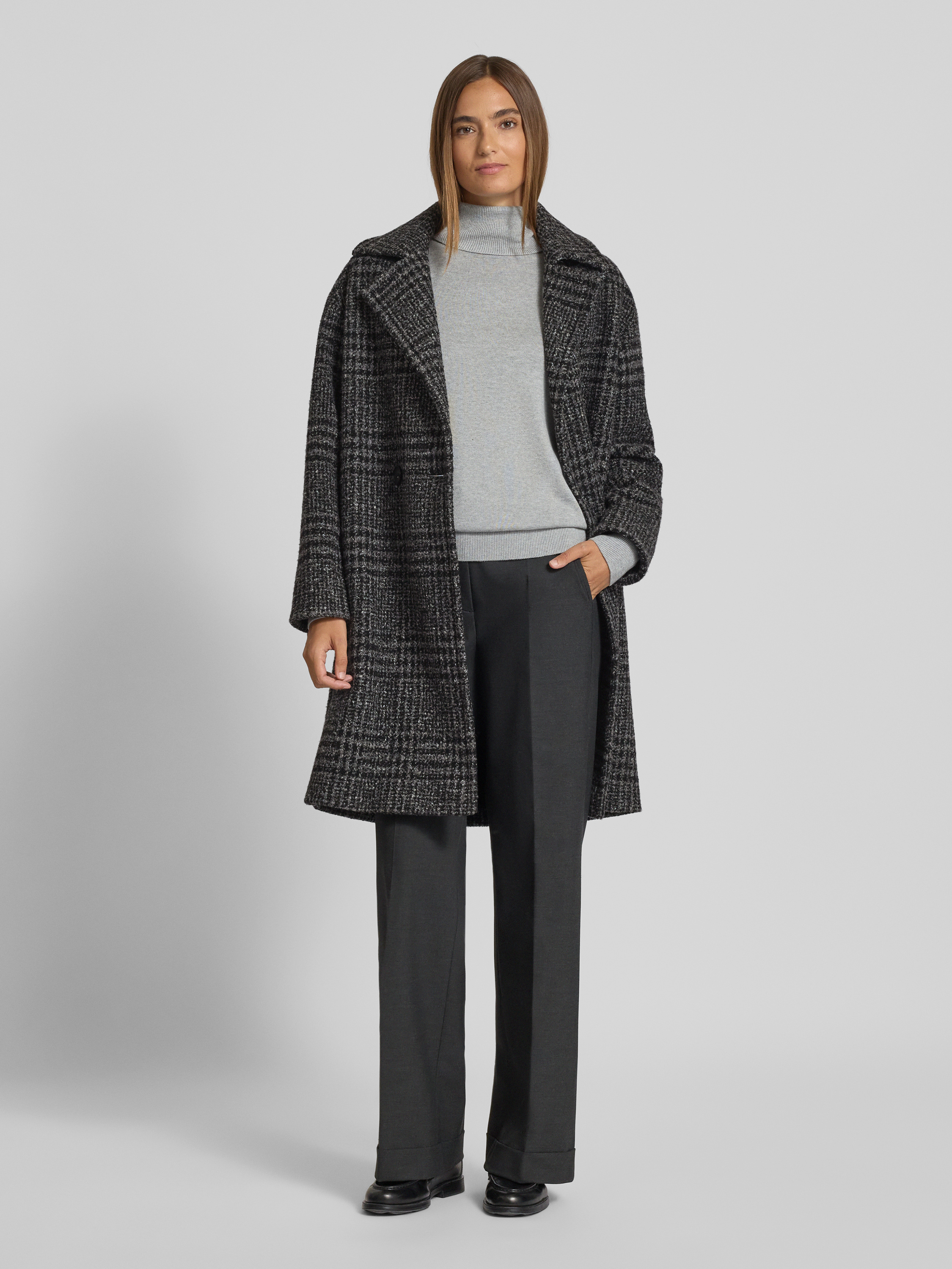 Der Damenmantel von ICONS Cinzia Rocca kombiniert einen klassischen Reverskragen mit einem geraden Schnitt und schlichter Eleganz. Durch den Woll-Anteil fühlt sich das Material angenehm an und hält angenehm warm, während die Passform Bewegungsfreiheit im Alltag ermöglicht. So eignet sich der Mantel mit Woll-Anteil und Reverskragen für vielseitige Anlässe.