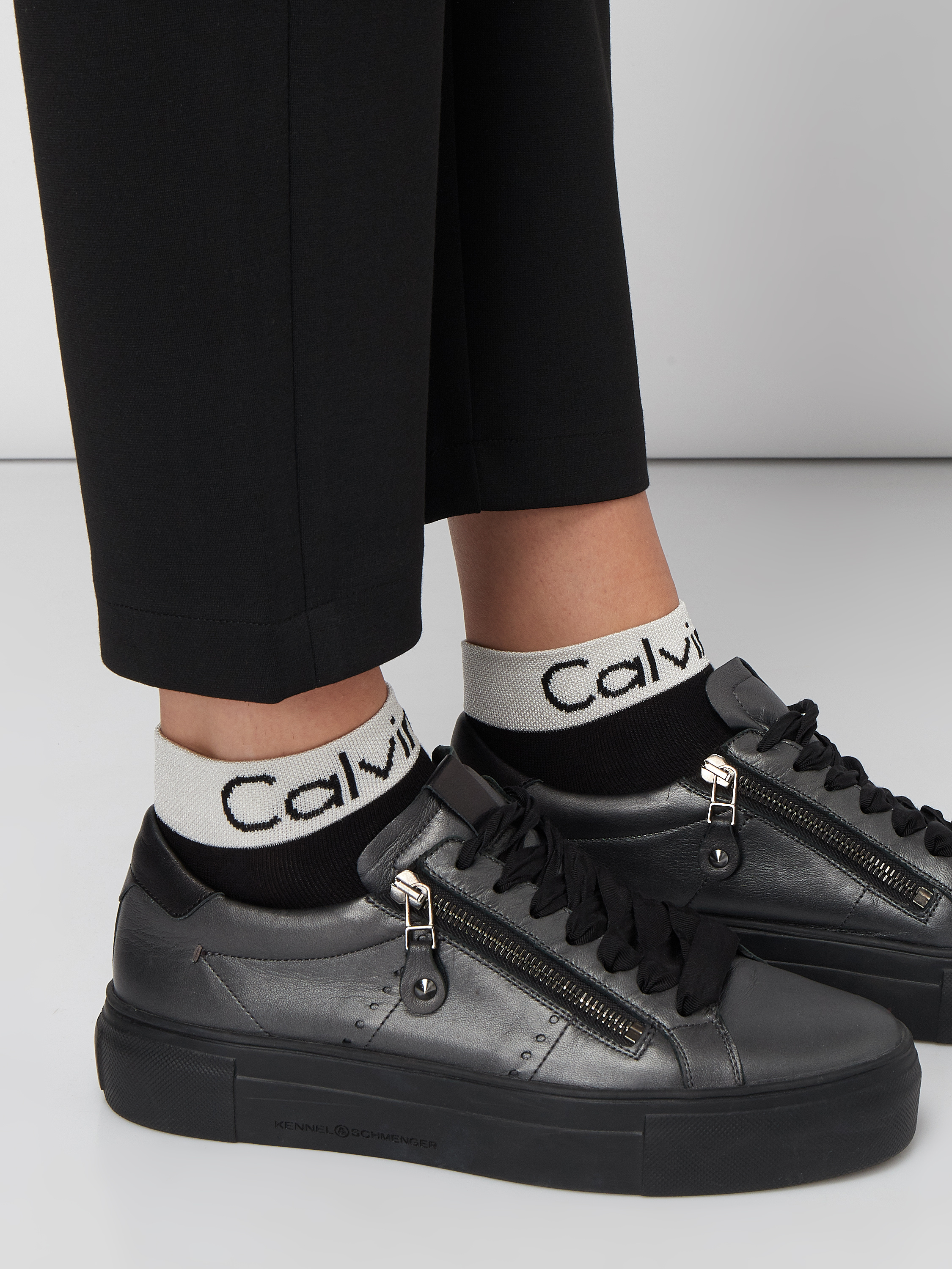 Die Calvin Klein Sneakersocken im 2er-Pack kombinieren eine durchdachte Materialmischung aus Baumwolle und Stretch, um einen bequemen Sitz zu gewährleisten. Der elastische Logo-Bund sorgt für einen sicheren Halt, während die COOLMAX®-Technologie optimalen Feuchtigkeitstransport bietet. Kontraststreifen verleihen diesen Socken eine dezente, stilvolle Note.