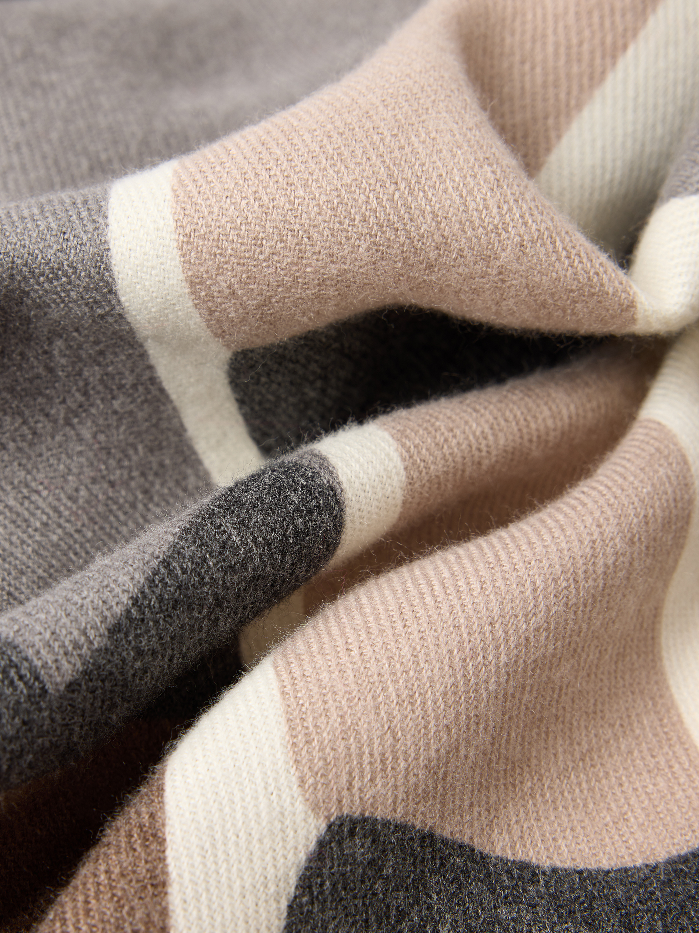 Der Damen Schal von Codello zeichnet sich durch seine rechteckige Form und die markanten Fransen aus, wodurch er vielseitig einsetzbar bleibt. Der Material-Mix mit Viskose-Anteil fühlt sich angenehm weich an und sorgt für ein komfortables Tragegefühl. Mit seiner großzügigen Größe eignet sich dieser Schal, um an kühlen Tagen flexibel kombiniert zu werden.