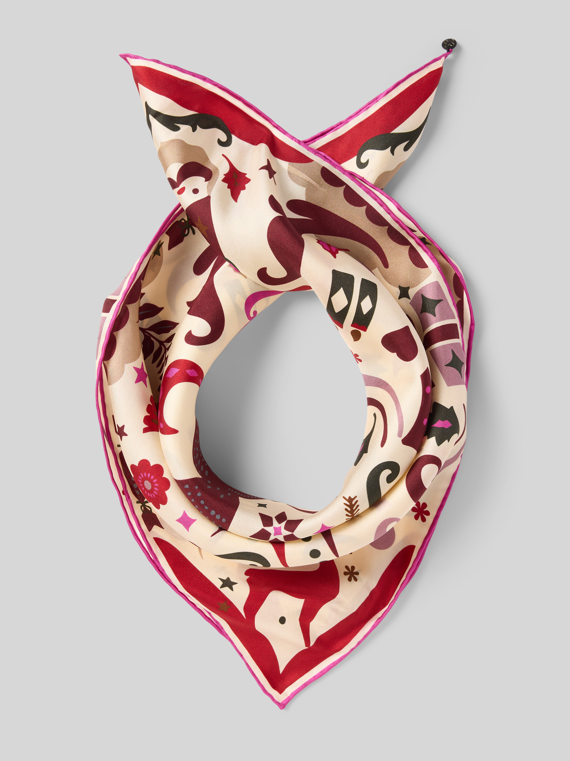 Das Tuch aus reiner Seide von Codello legt sich mit seiner dreieckigen Form angenehm leicht um den Hals und bringt eine dezente Eleganz in den Alltag. Die glatte Oberfläche fühlt sich sanft auf der Haut an, während das Modell NICKI verschiedene Tragevarianten ermöglicht. Durch das natürliche Material entsteht ein angenehmes Tragegefühl.