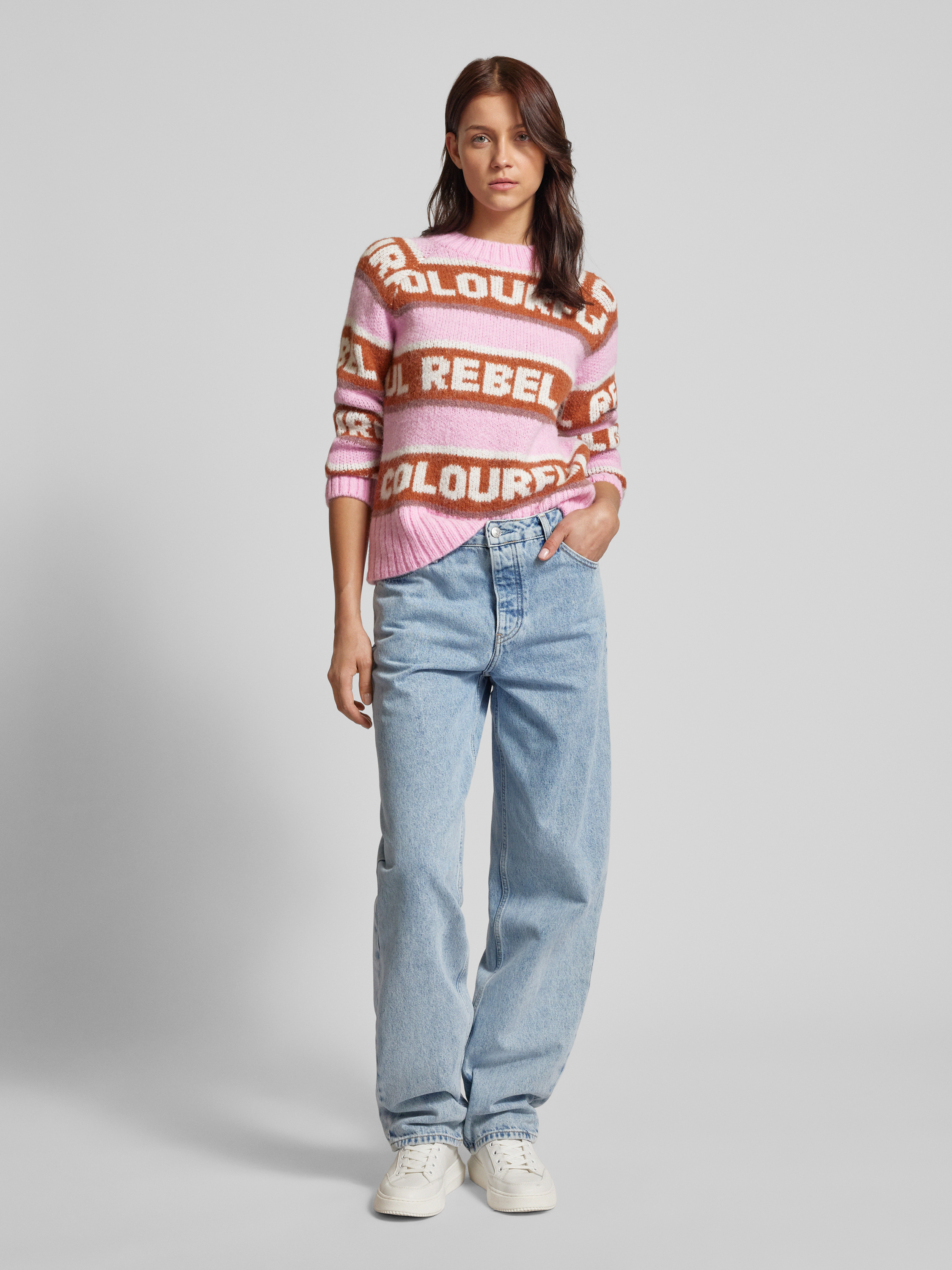 Der Strickpullover von Colourful Rebel im Modell 'Ximenia' überzeugt durch seinen angenehmen Regular Fit, der sich bequem in den Alltag integrieren lässt. Der Rundhalsausschnitt und das markante Logo-Muster verleihen dem Kleidungsstück eine stilvolle Note. Ideal für diejenigen, die Wert auf Komfort und Design legen.